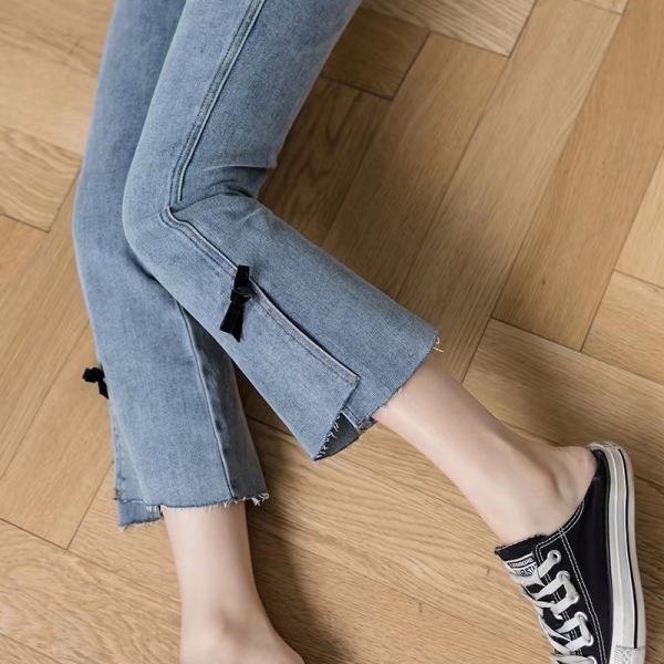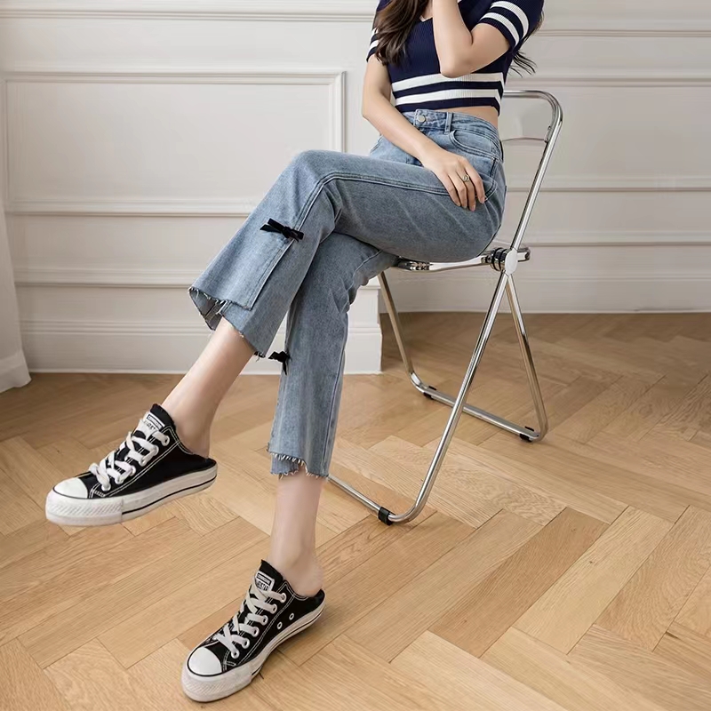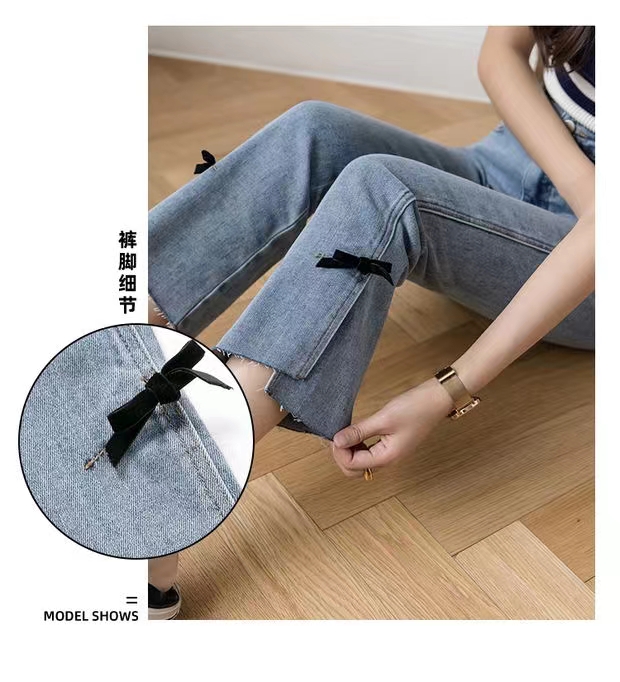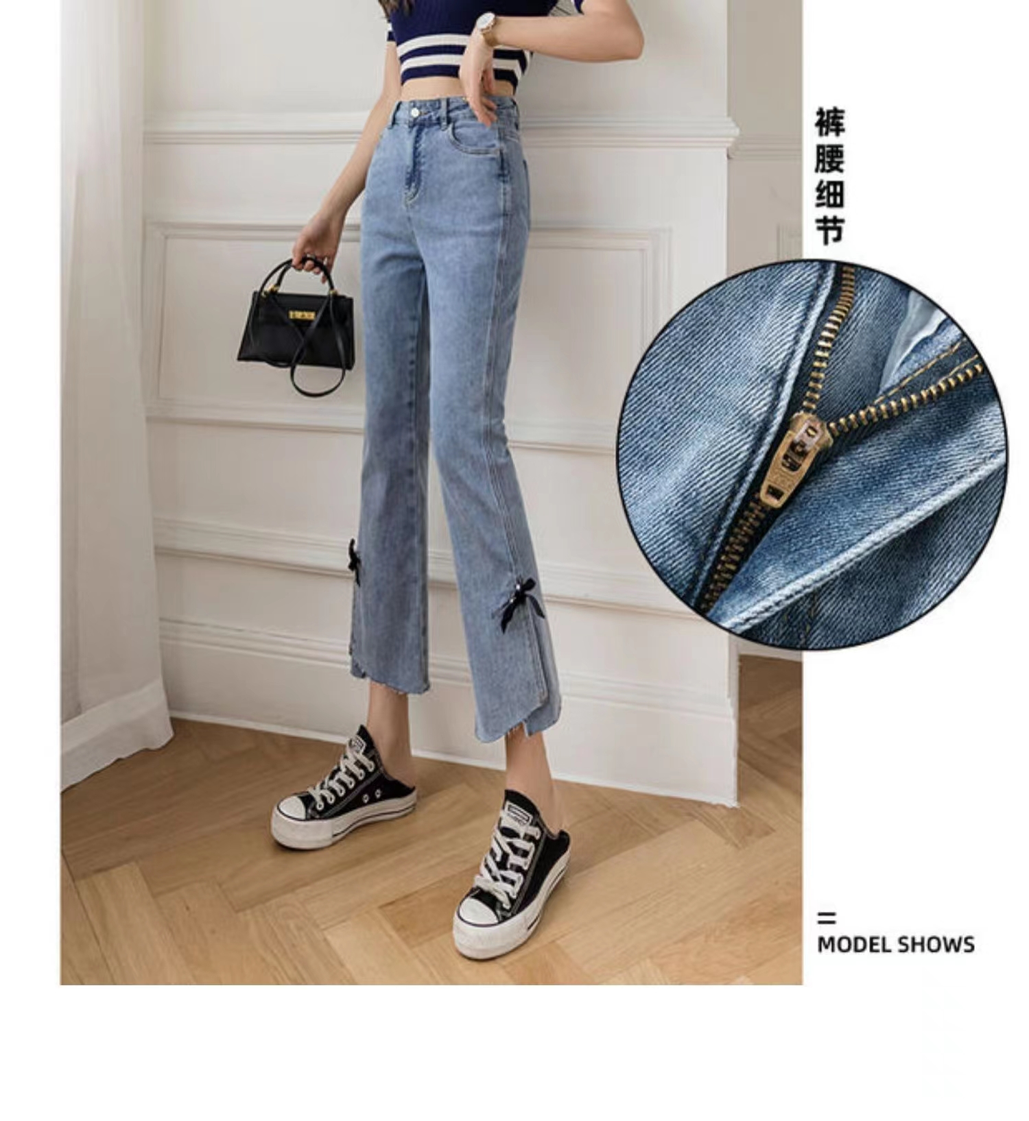 RY1530#微喇牛仔裤女夏季薄款2023年新款高腰显瘦大码九分裤喇叭直筒裤子