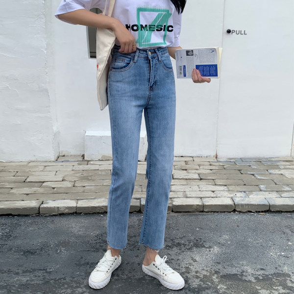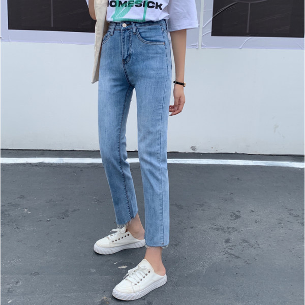 RY1538#浅色牛仔裤女2023新款宽松高腰显瘦九分烟管修身直筒裤子