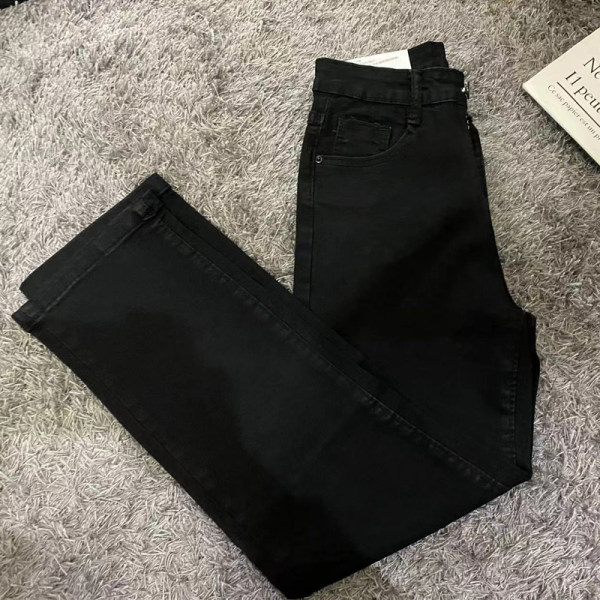 RY1542#牛仔裤女新款高腰烟管显瘦宽松黑色直筒裤子