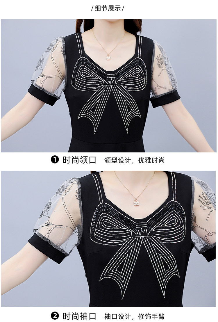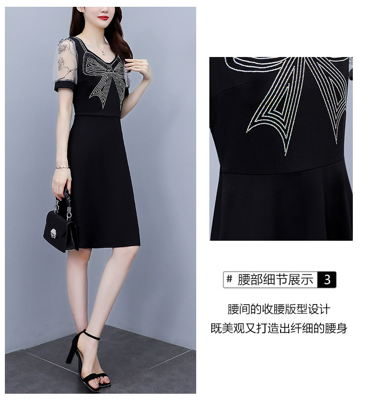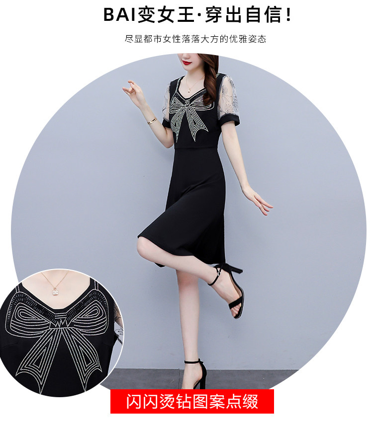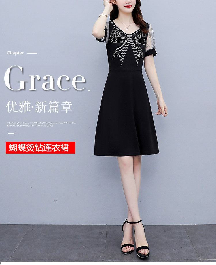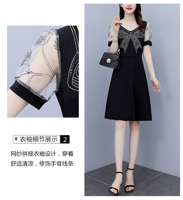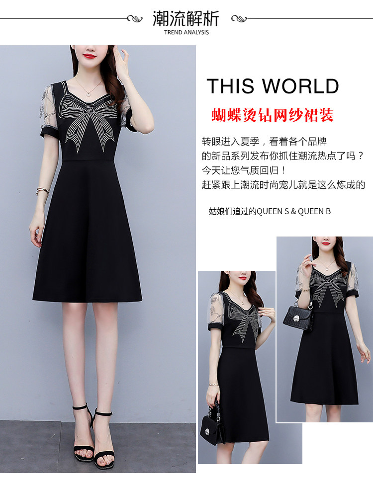 RM7598#大码 2023夏新款收腰显瘦流行网纱时尚蝴蝶烫钻连衣裙