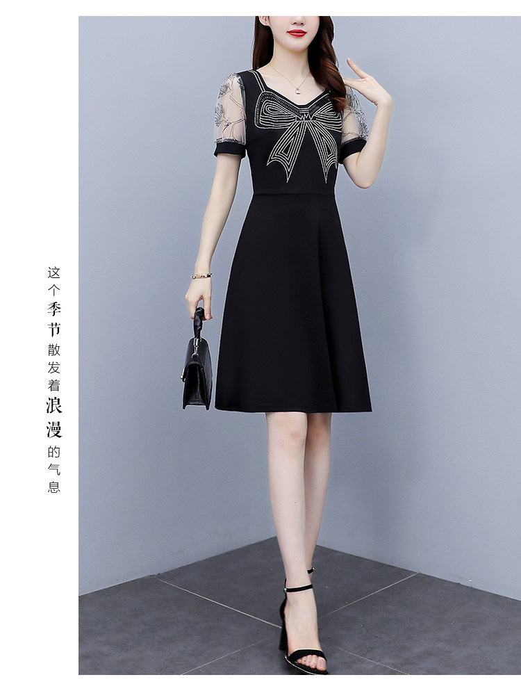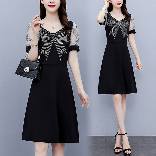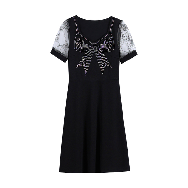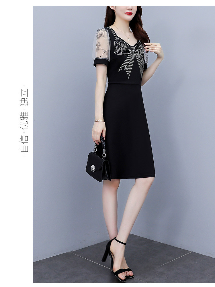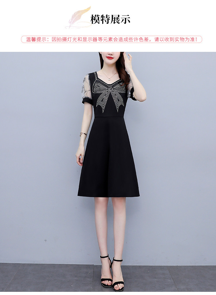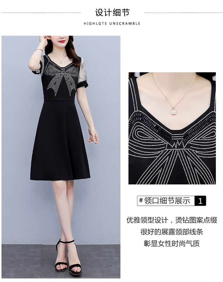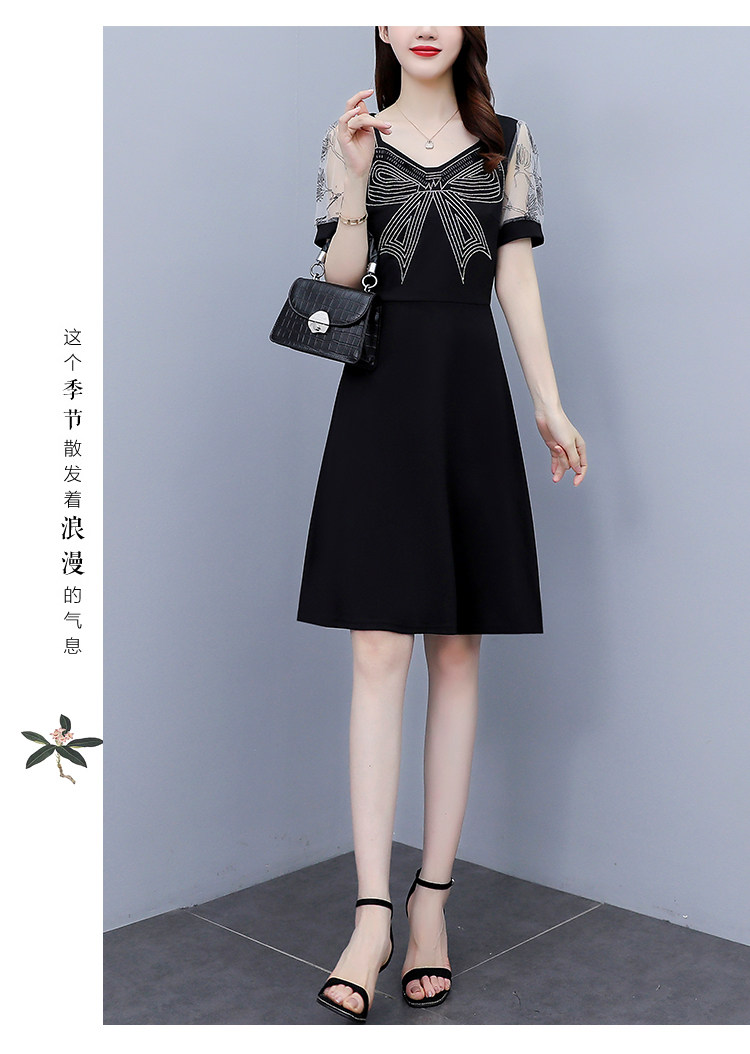 RM7598#大码 2023夏新款收腰显瘦流行网纱时尚蝴蝶烫钻连衣裙