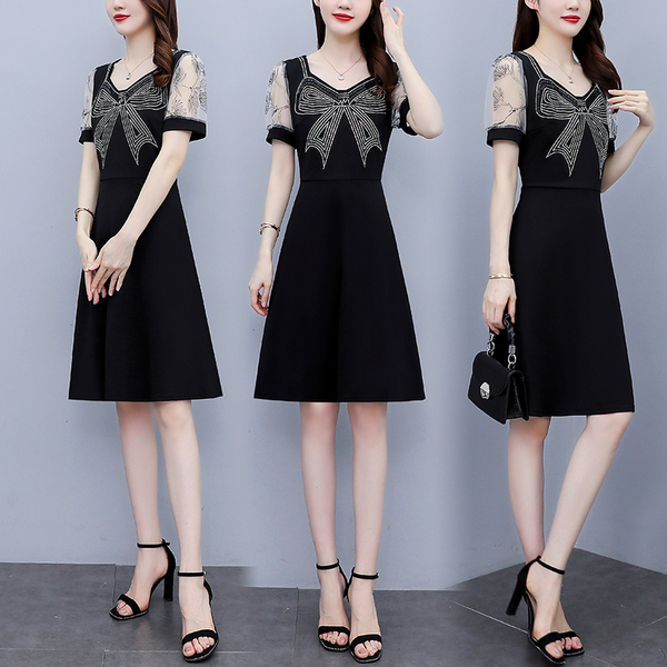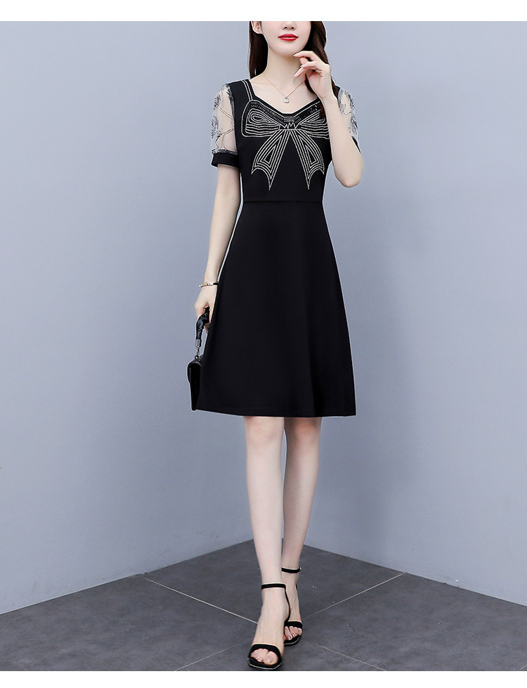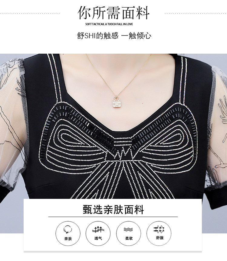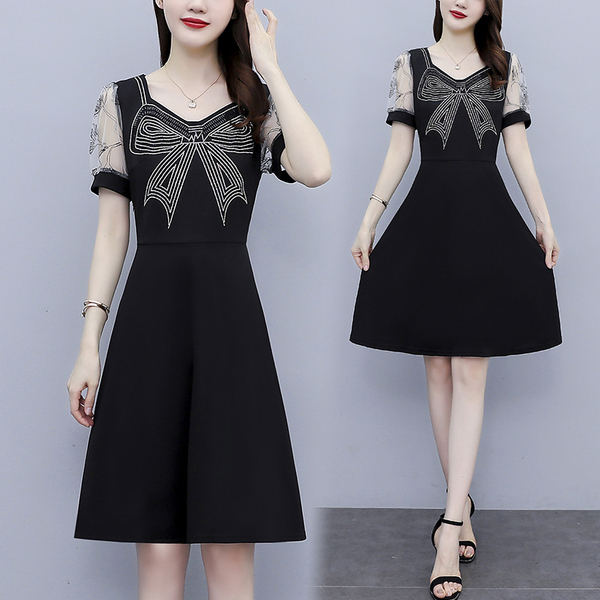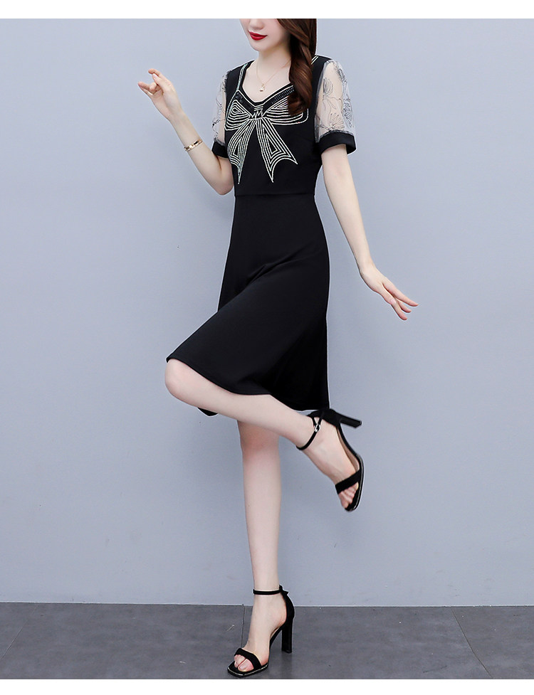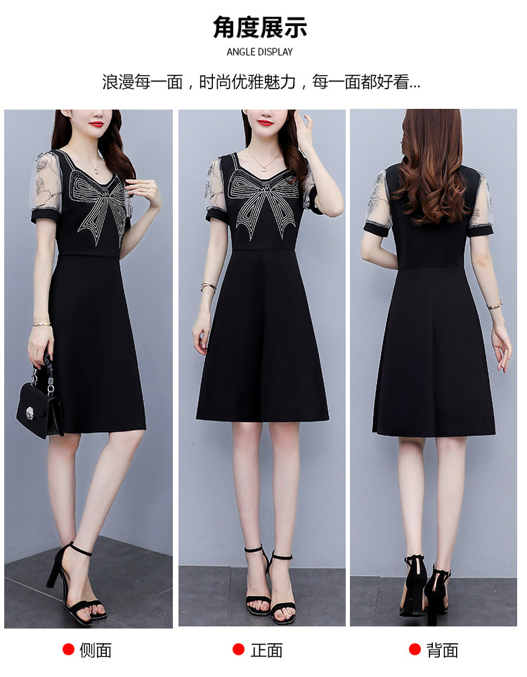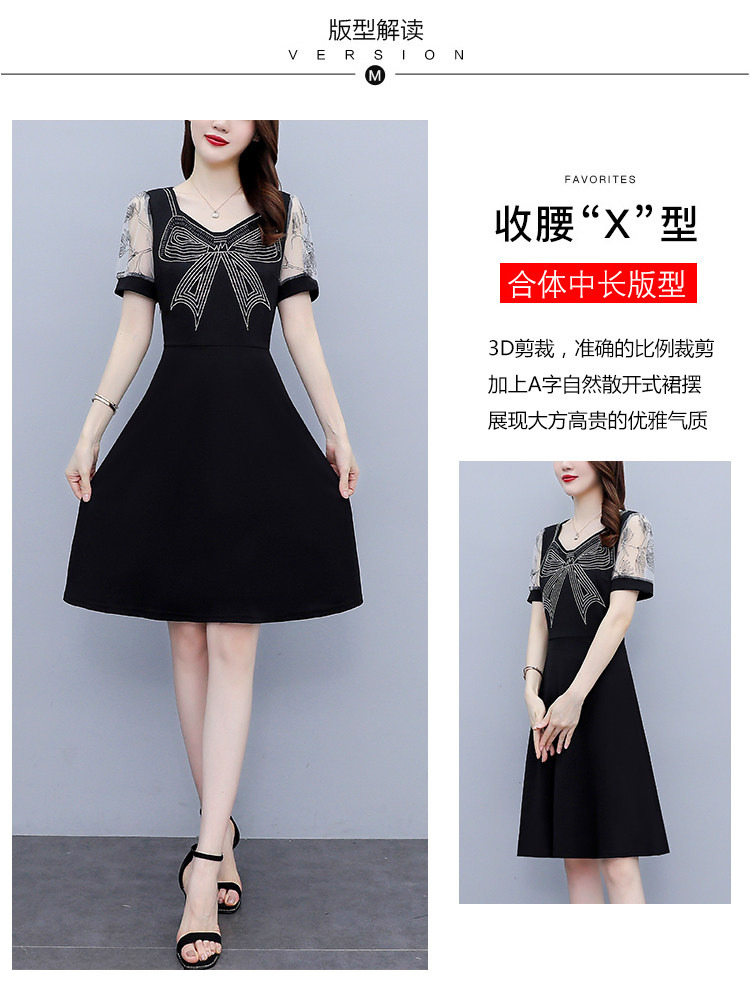 RM7598#大码 2023夏新款收腰显瘦流行网纱时尚蝴蝶烫钻连衣裙