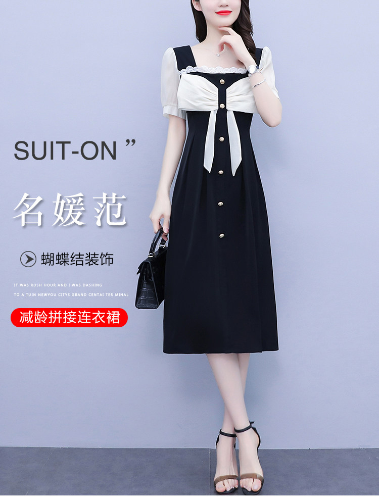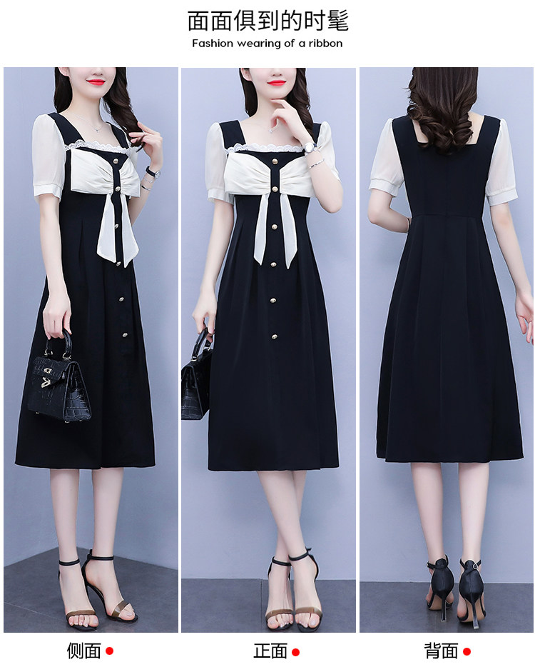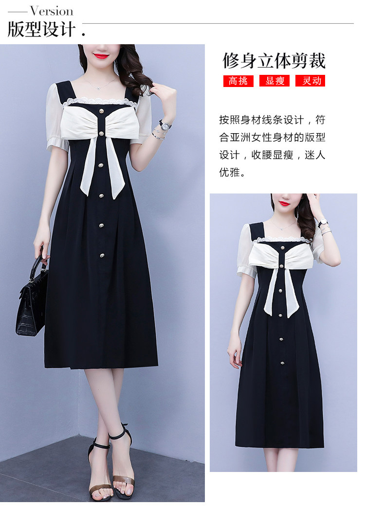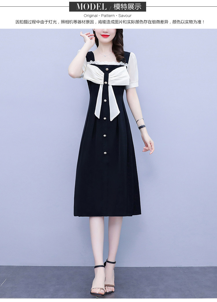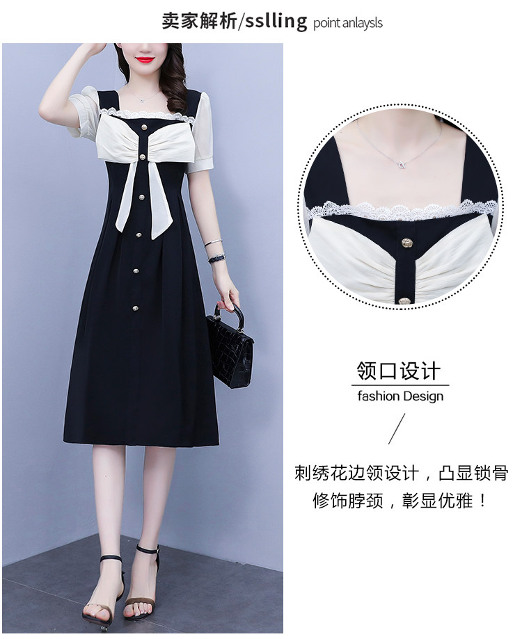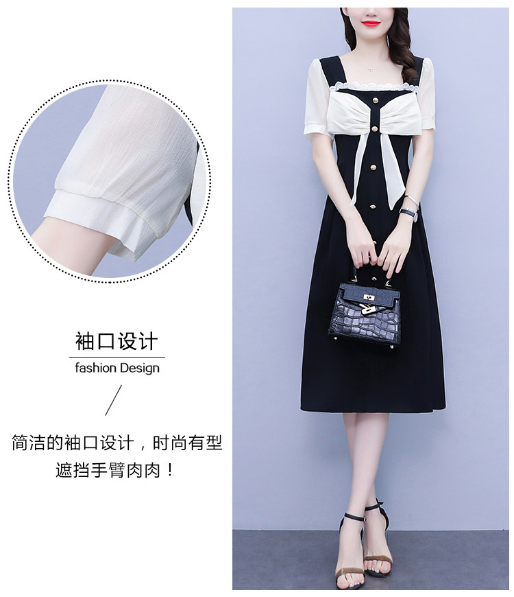 RM7610#大码女装2023夏季新款胖妹妹方领通勤蝴蝶结时尚中长款连衣裙