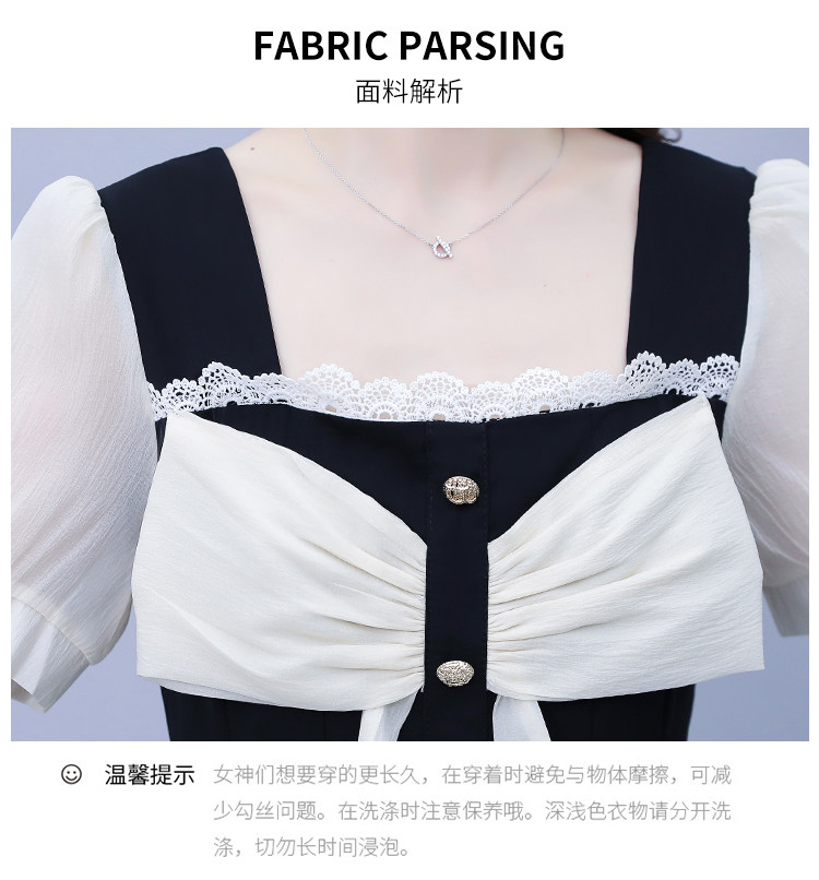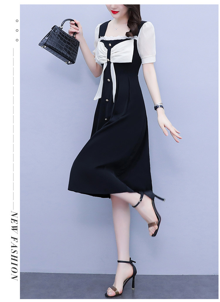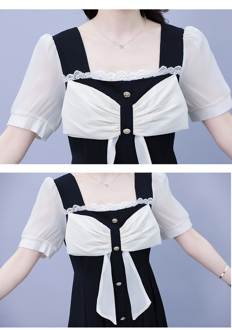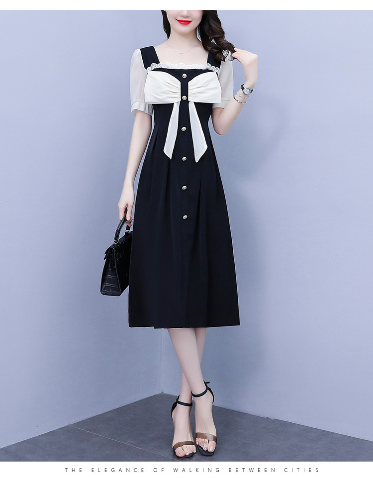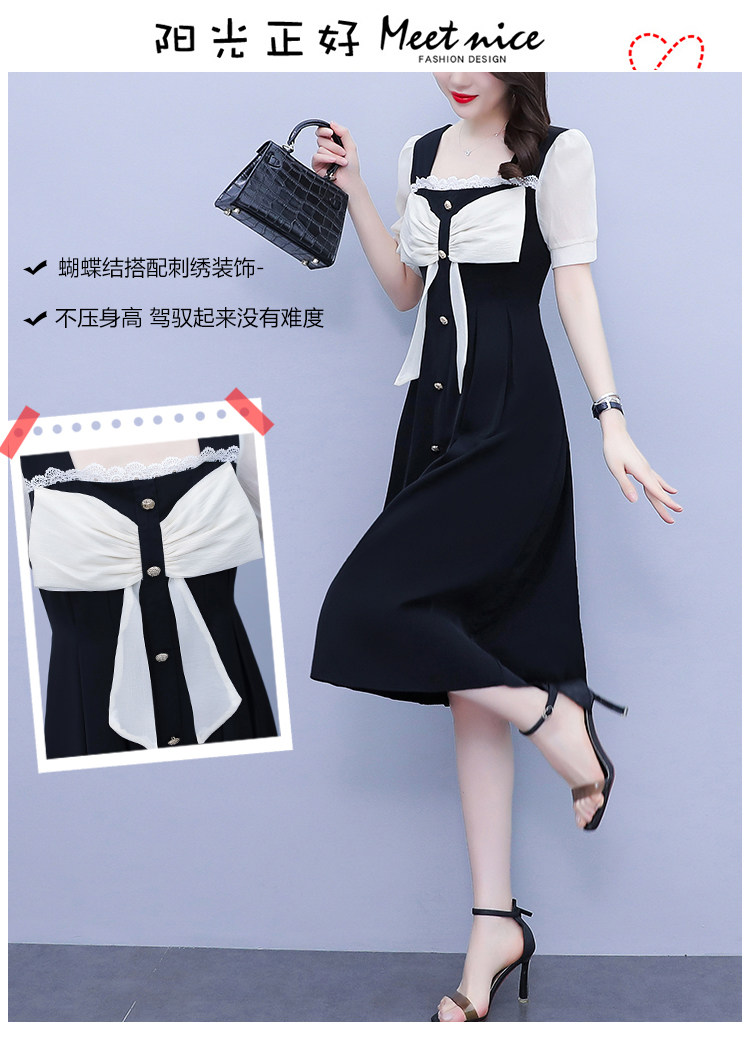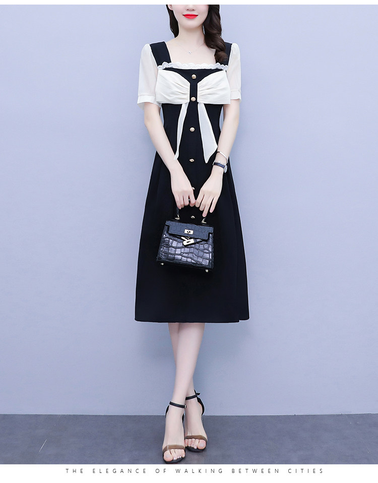 RM7610#大码女装2023夏季新款胖妹妹方领通勤蝴蝶结时尚中长款连衣裙