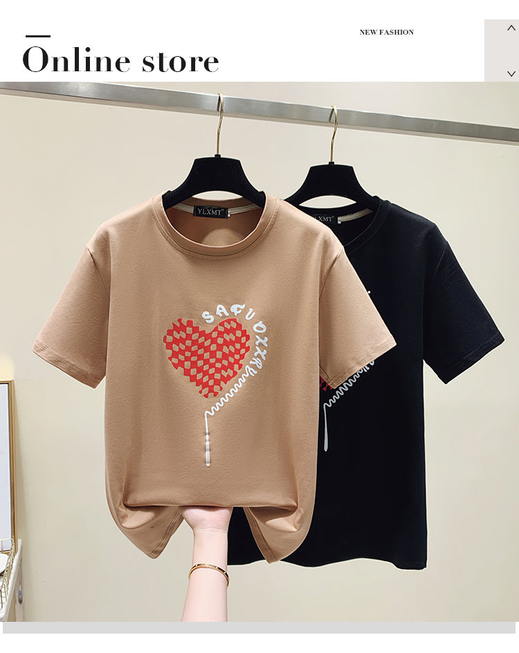 RM7656#大码女装胖mm圆领套头卡通印花休闲宽松纯棉2023夏季新款短袖T恤