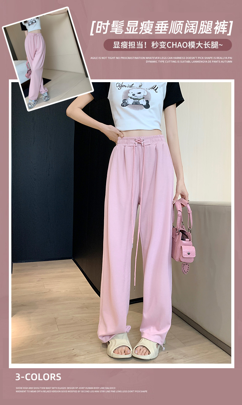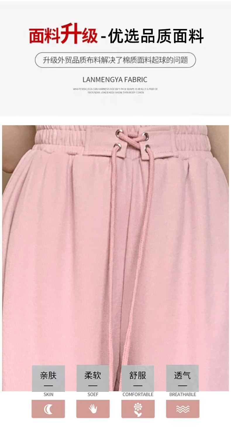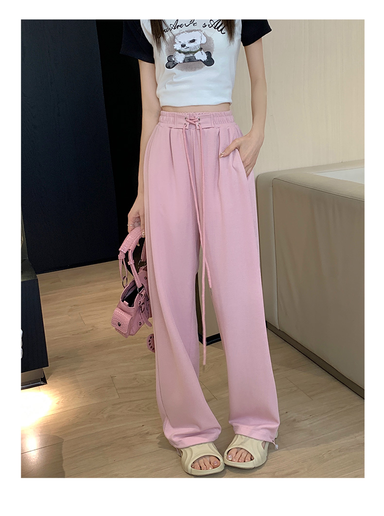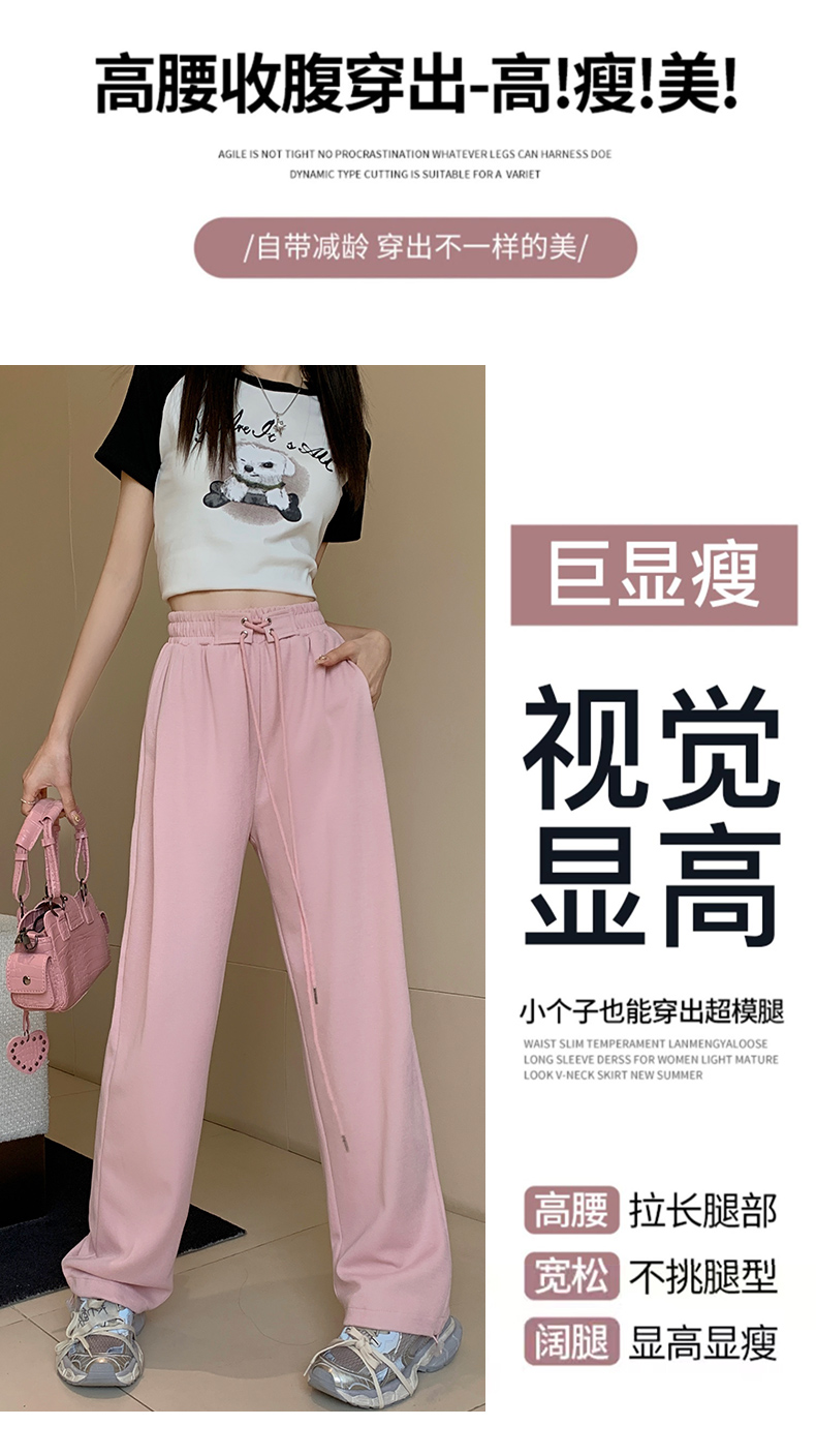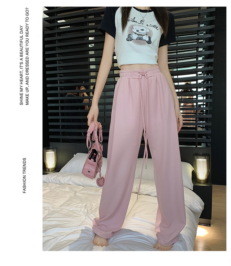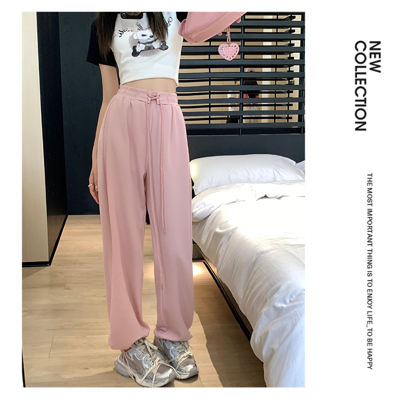 RM7763#减龄辣妹粉色垂感宽松运动裤女春夏季抽绳高腰束脚拖地长裤