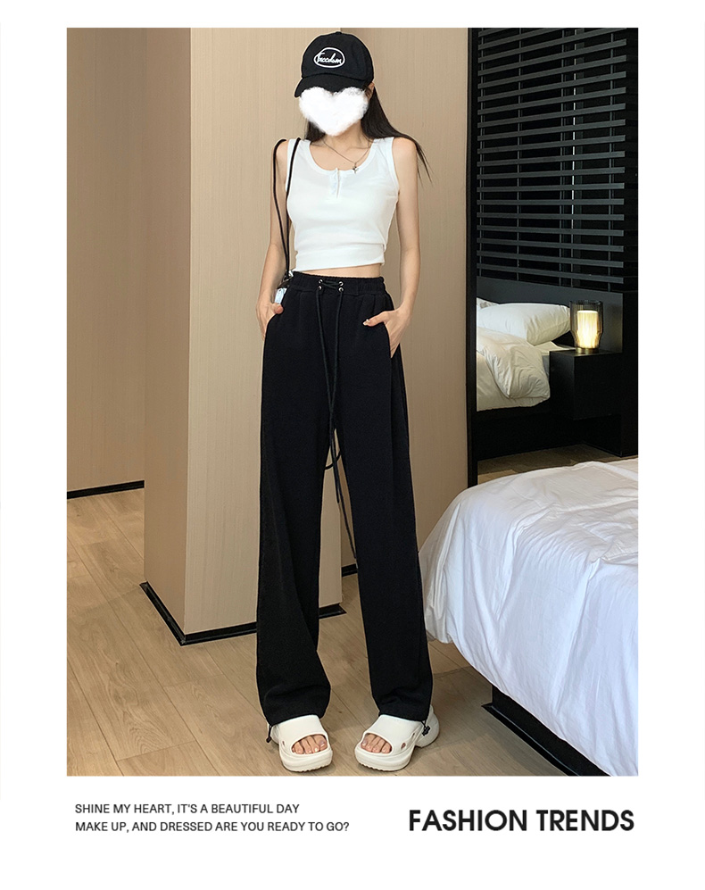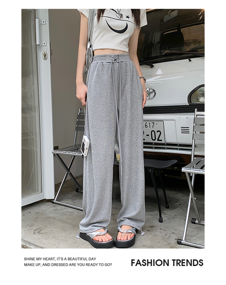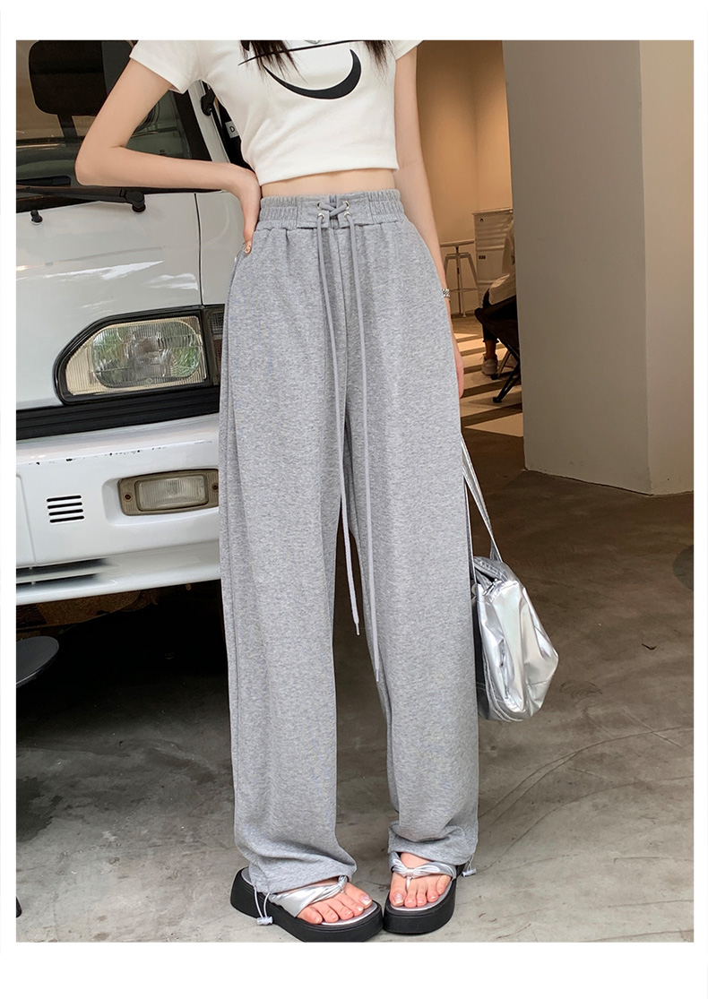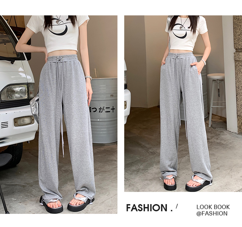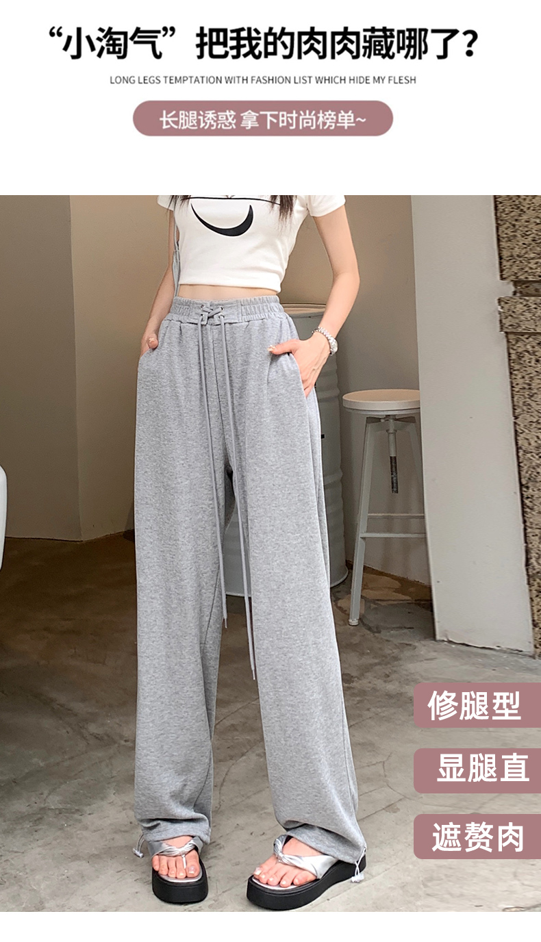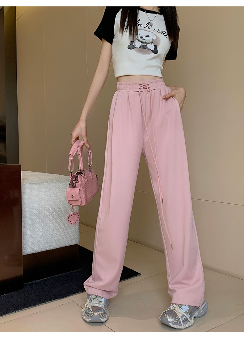 RM7763#减龄辣妹粉色垂感宽松运动裤女春夏季抽绳高腰束脚拖地长裤