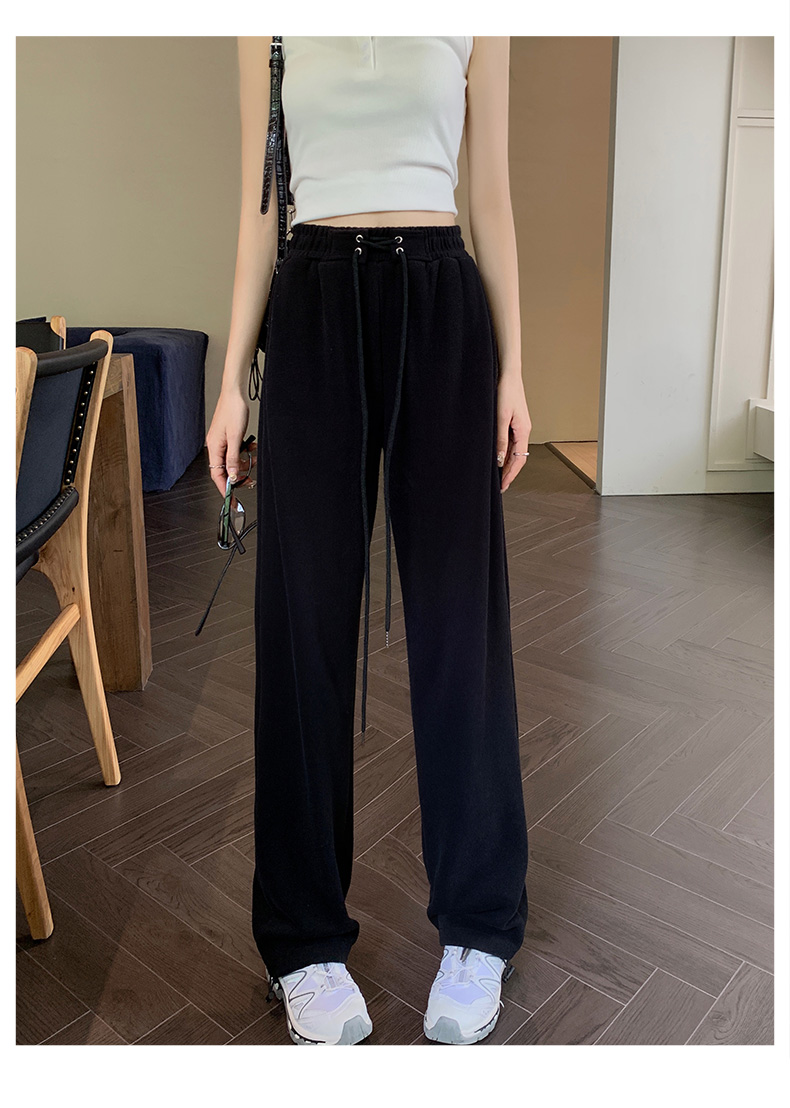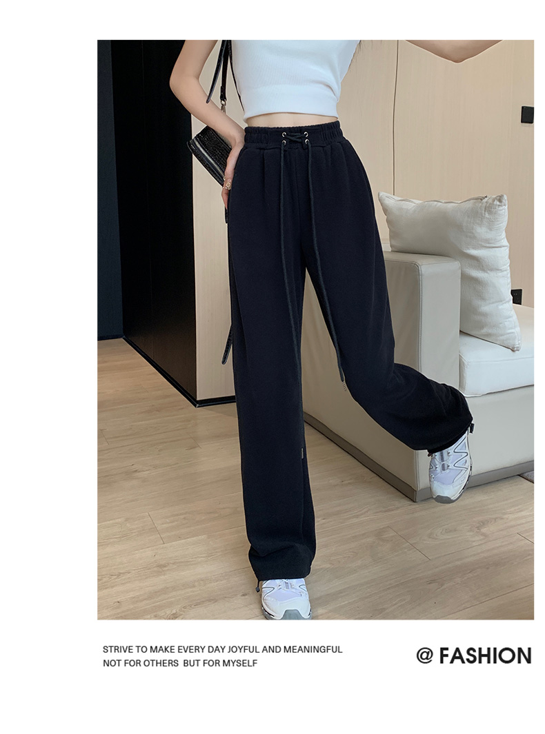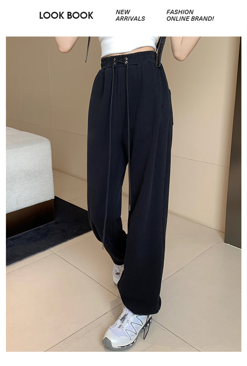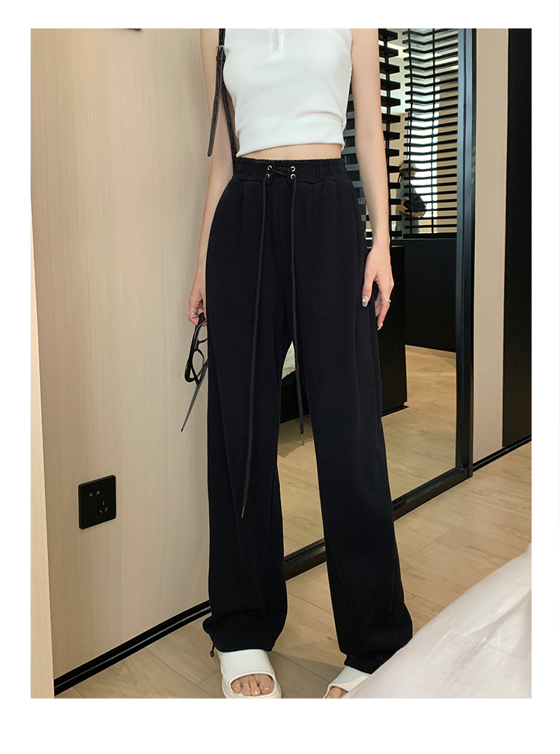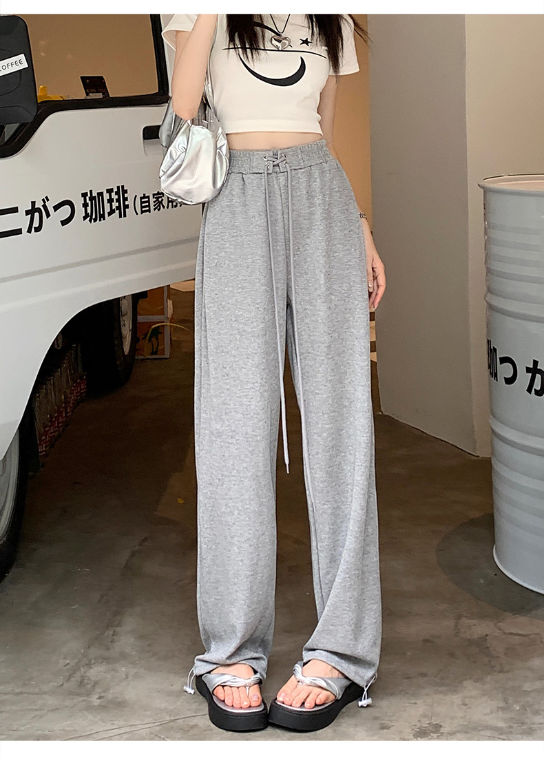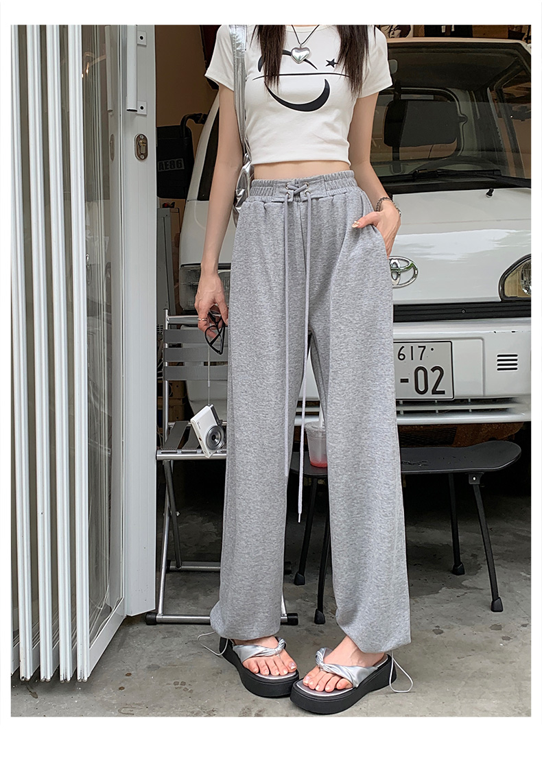 RM7763#减龄辣妹粉色垂感宽松运动裤女春夏季抽绳高腰束脚拖地长裤