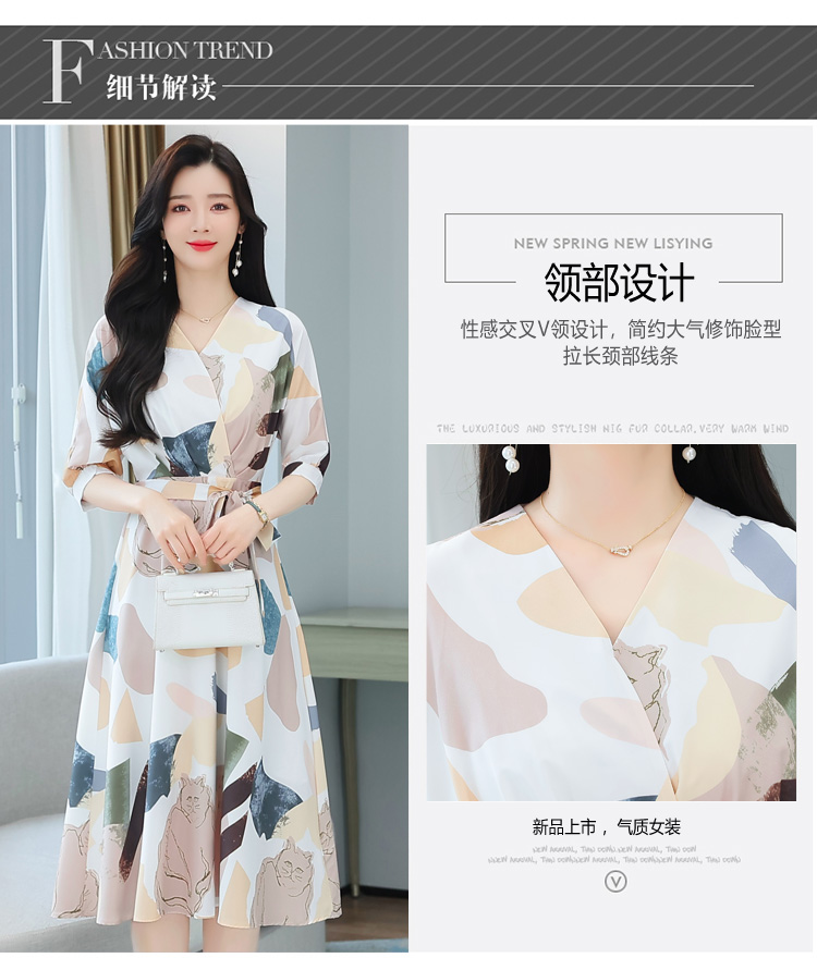 RM7818#设计感法式小众雪纺连衣裙春季高端名媛收腰V领度假裙妈妈裙