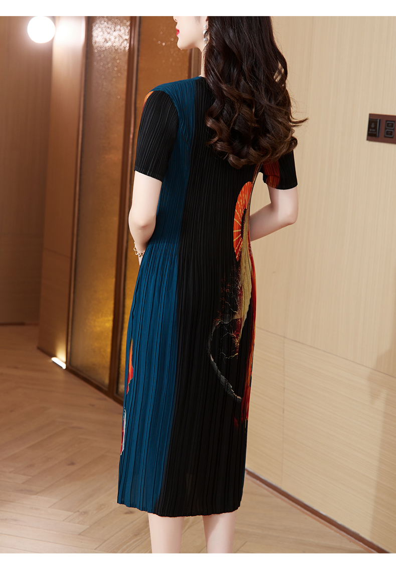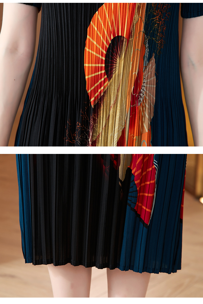 RM7829#大码连衣裙女2023夏季新款遮肚洋气胖MM时尚气质印花长裙