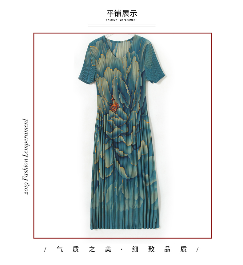 RM7830#大码连衣裙女2023夏季新款遮肚洋气胖MM时尚气质印花长裙