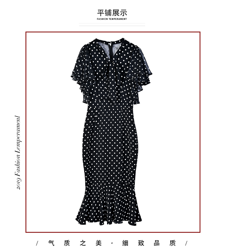 RM7848#波点短袖连衣裙2023夏季新款高级名媛气质收腰显瘦开叉鱼尾裙