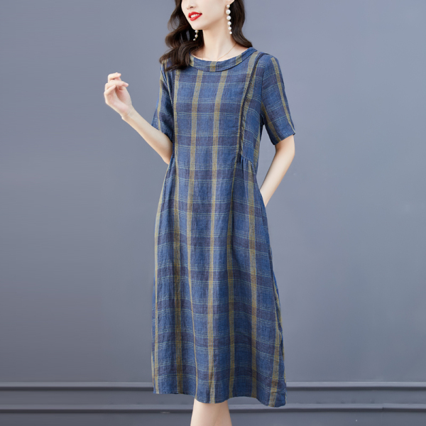 RM7855#高端气质格子连衣裙高级感女夏季2022年新款大码妈妈宽松裙子
