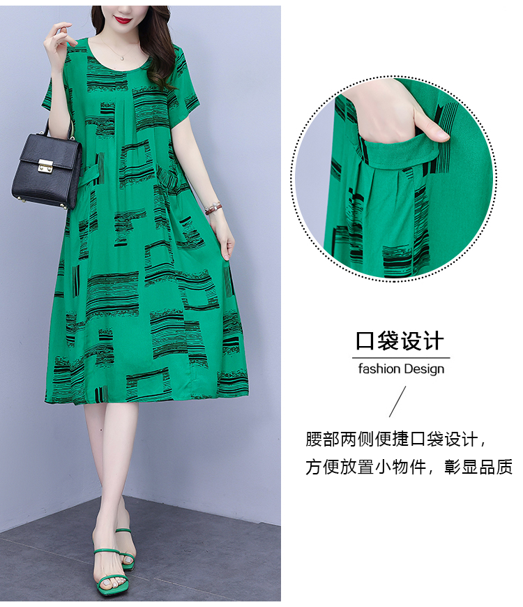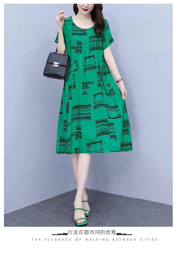 RM7891#夏装新款时尚洋气休闲显瘦大码女装A字裙胖MM气质连衣裙