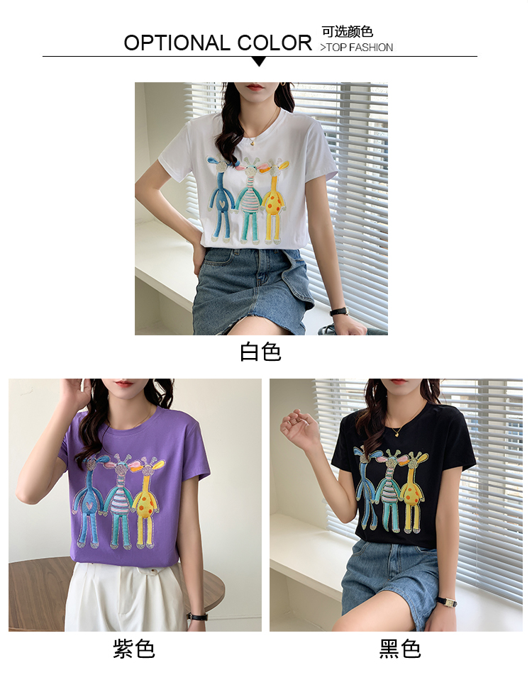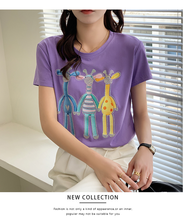 RM15390#夏季新款潮牌中长款重工烫钻短袖t恤女欧货大版欧洲站镶钻