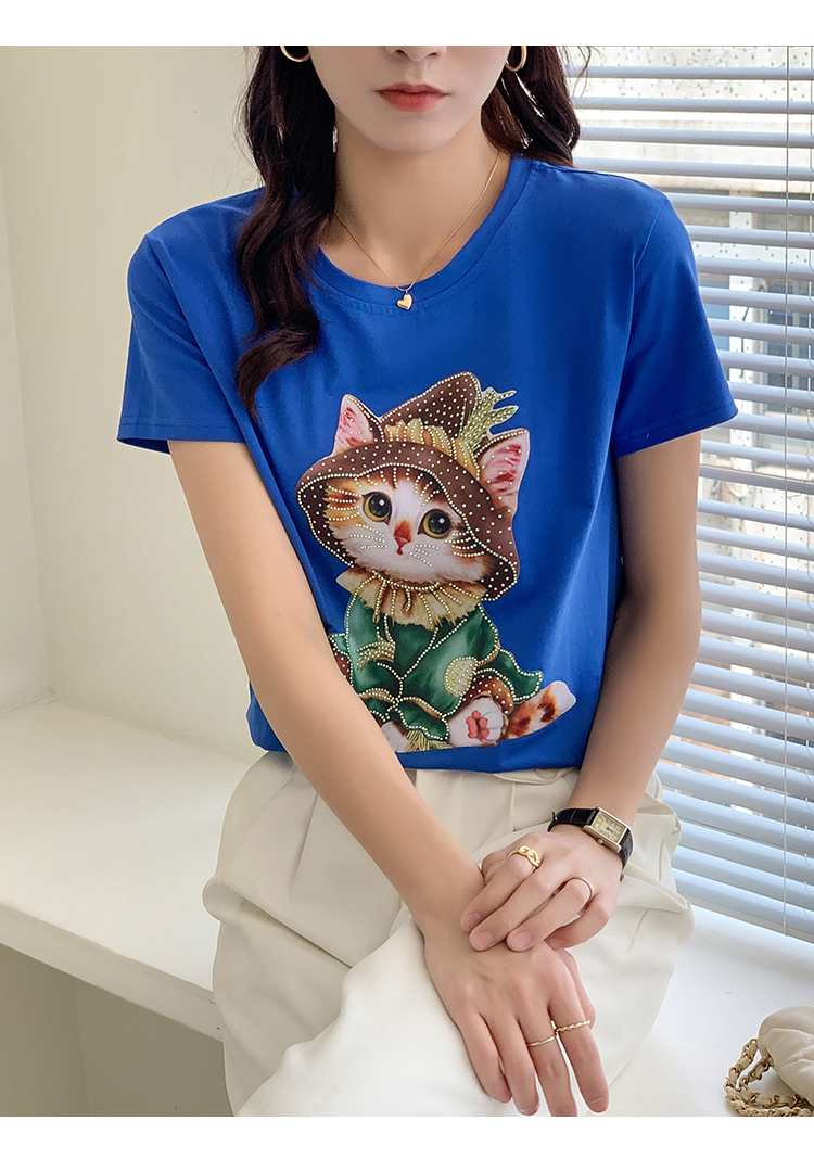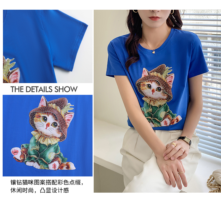 RM7931#宽松克莱因蓝短袖小众T恤小个子2023年夏季女装新款半袖港风上衣