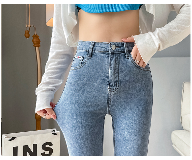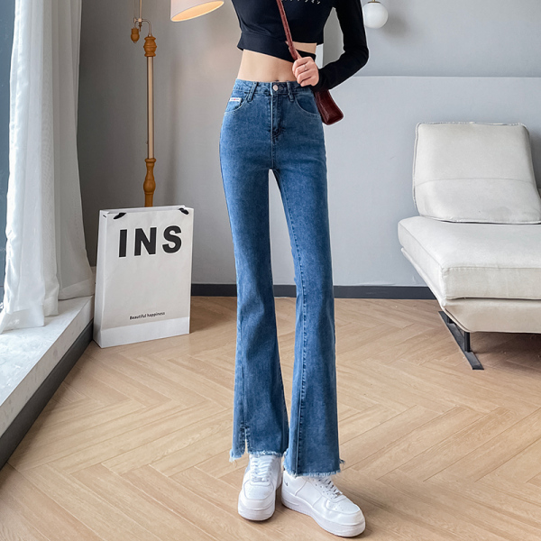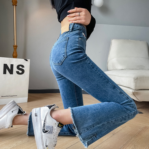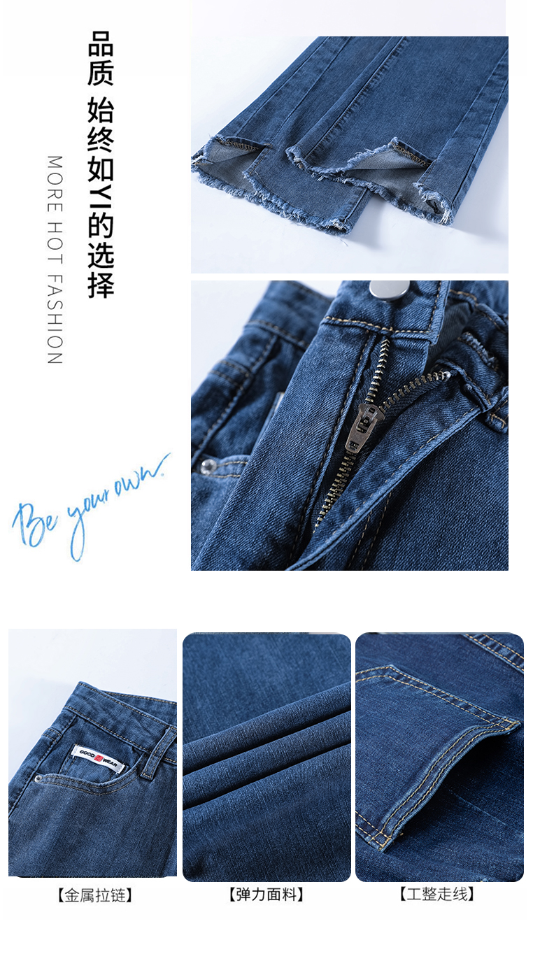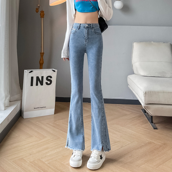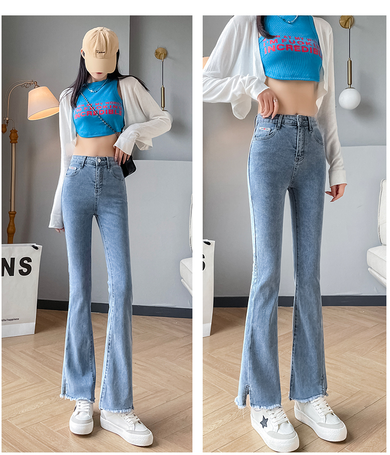 RM7963#微喇牛仔裤女春秋季2023新款高腰弹力九分小个子喇叭开叉毛边裤子