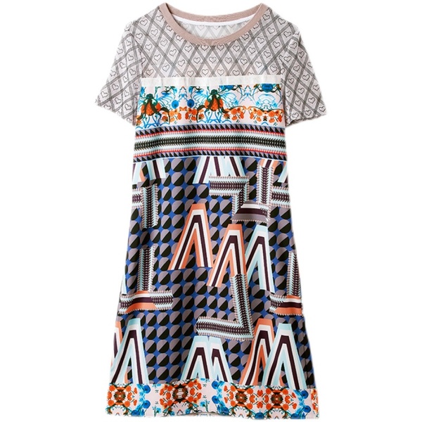 RM8095#夏季时尚气质名媛网纱拼接薄款裙子显瘦印花连衣裙女