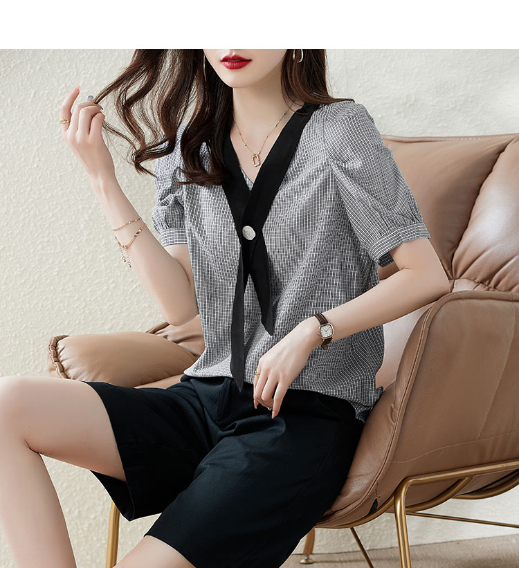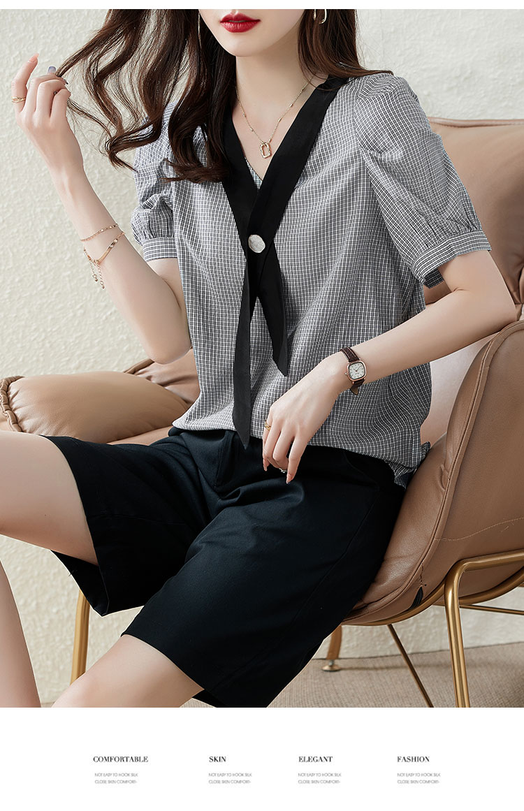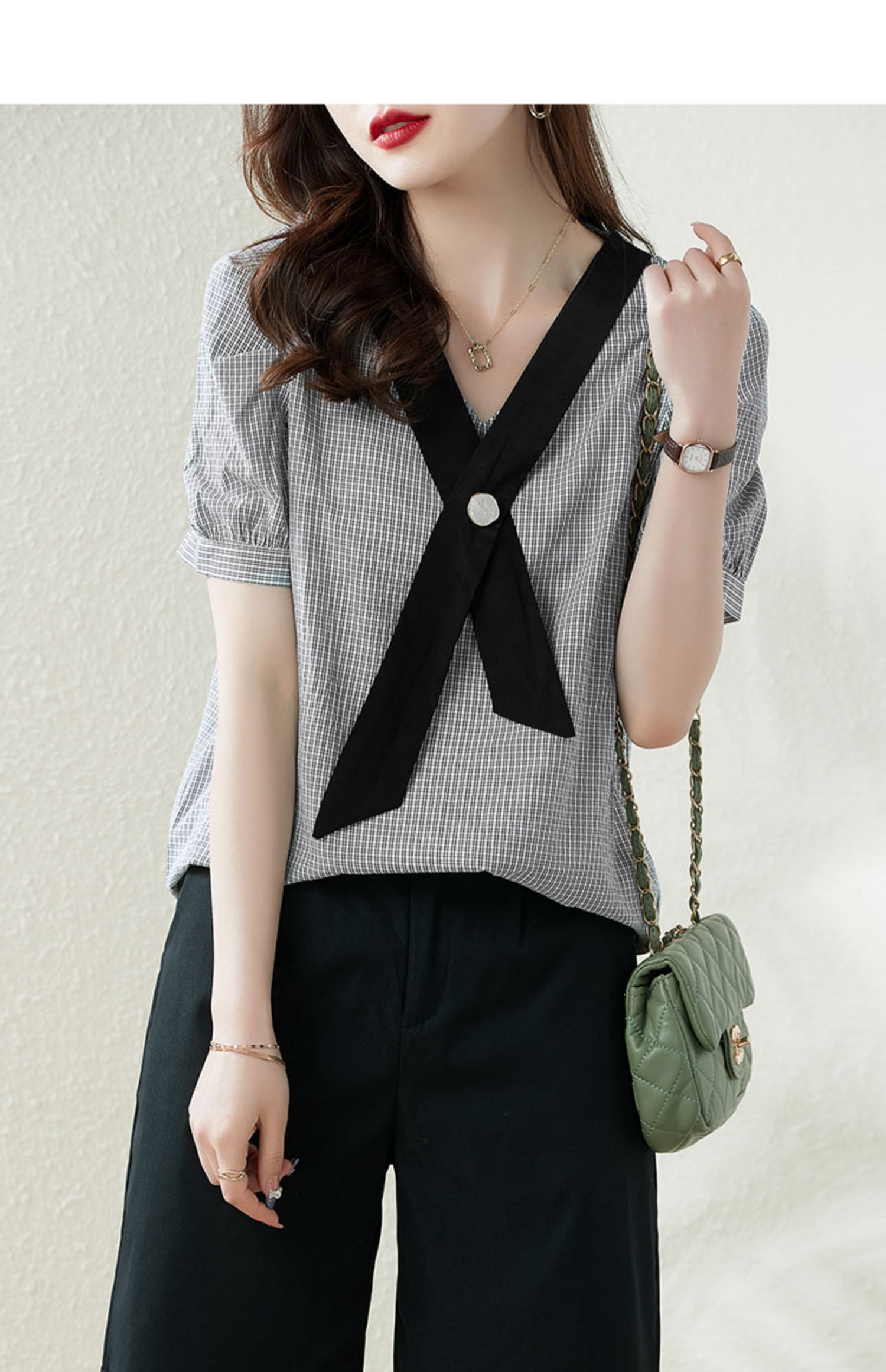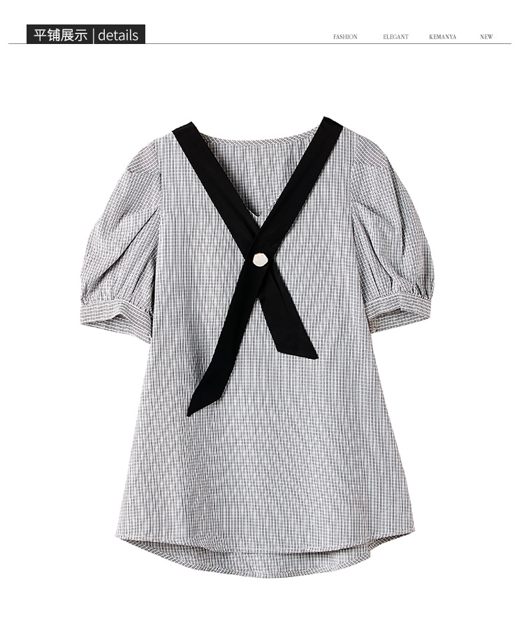 RM8098#夏装新品时尚休闲宽松韩版领口系飘带T恤