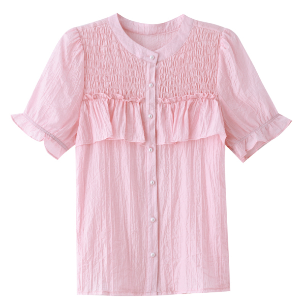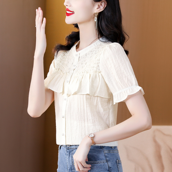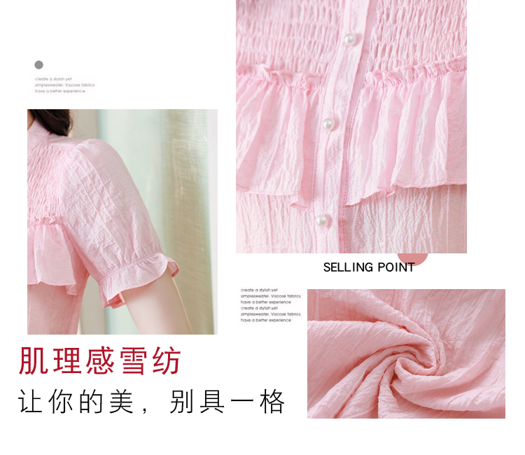 RM8148#夏装新款短袖立领雪纺衬衫女上衣洋气小衫宽松显瘦潮