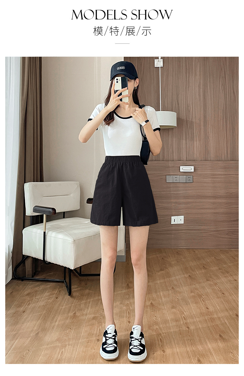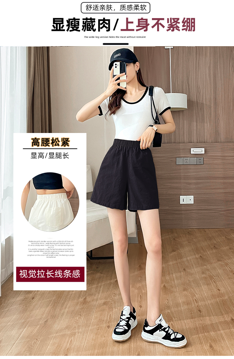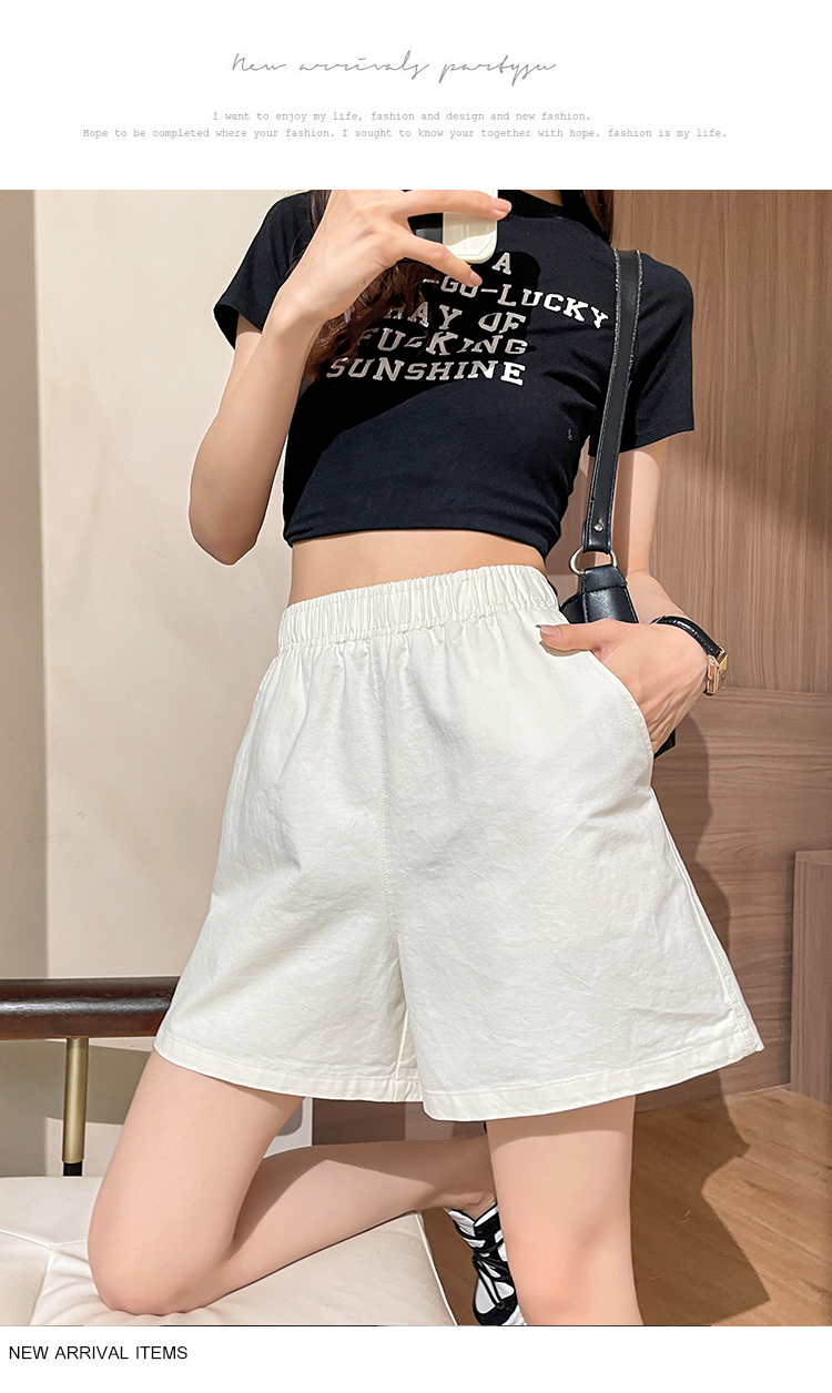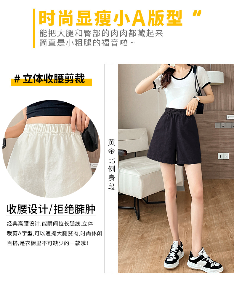 RM8260#松紧高腰阔腿五分裤日系风百搭宽松显瘦休闲短裤女夏季薄款
