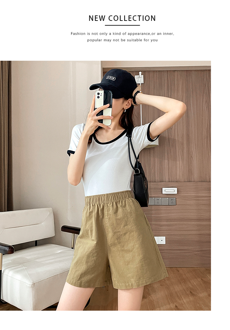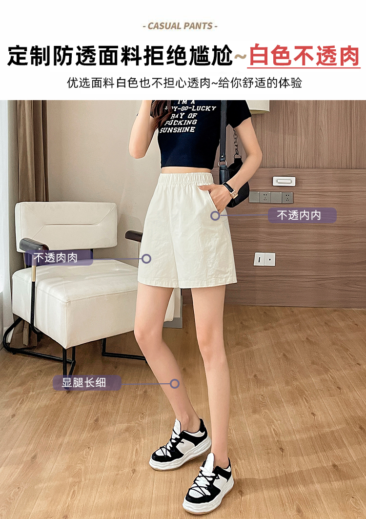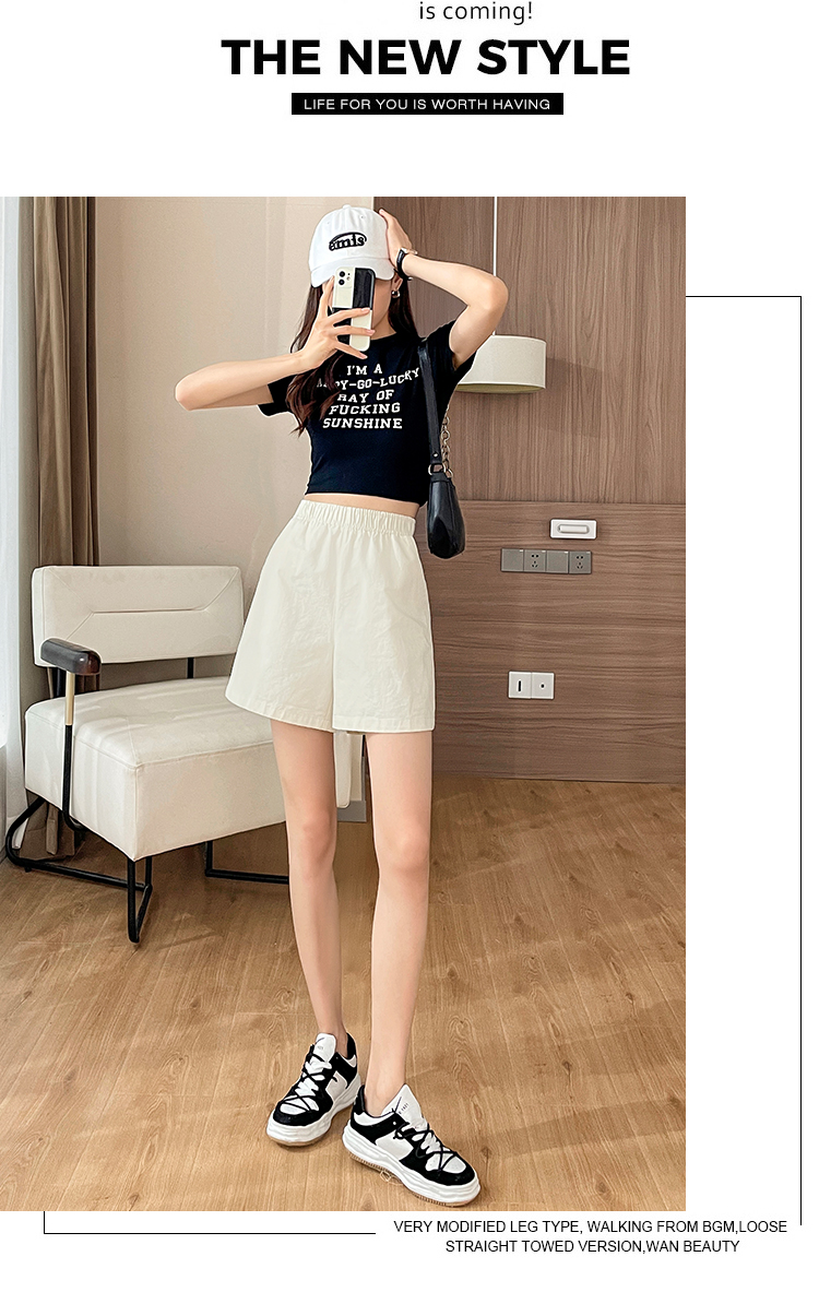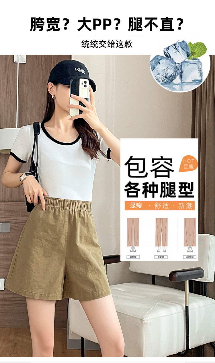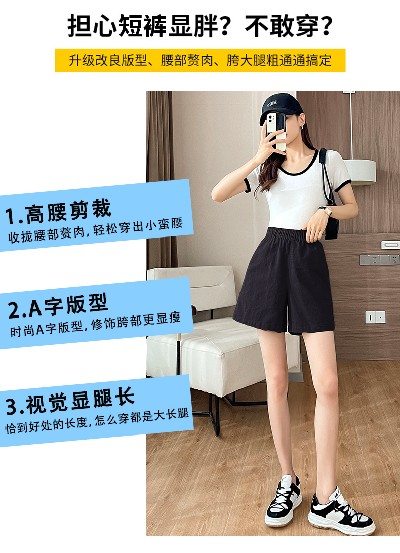 RM8260#松紧高腰阔腿五分裤日系风百搭宽松显瘦休闲短裤女夏季薄款