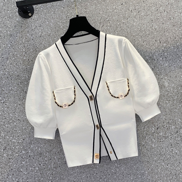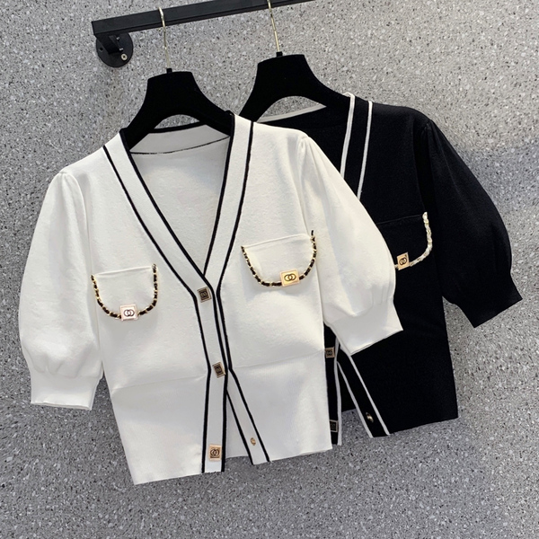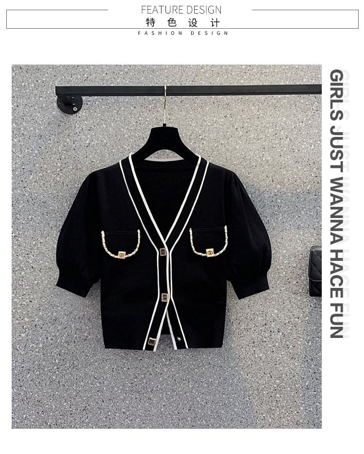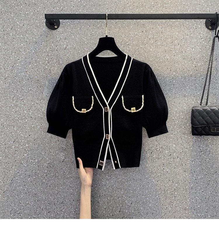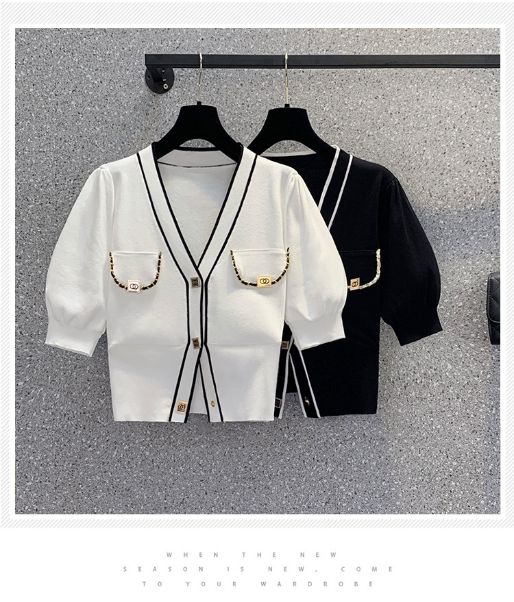 RM8424#大码女装2022夏季新款显瘦洋气短袖胖妹妹针织洋气上衣T恤