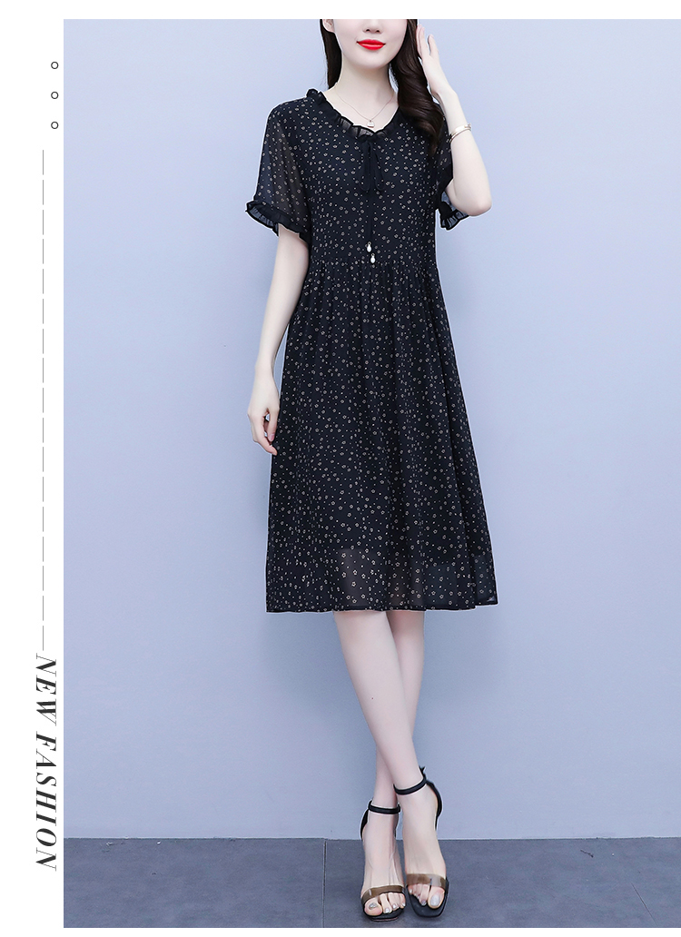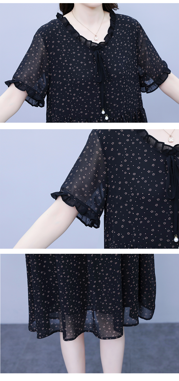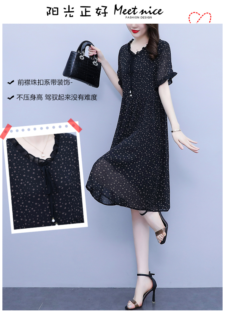 RM8448#夏新款胖mm200斤气质优雅遮肚显瘦雪纺印花连衣裙女