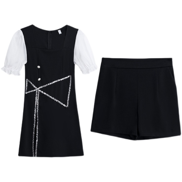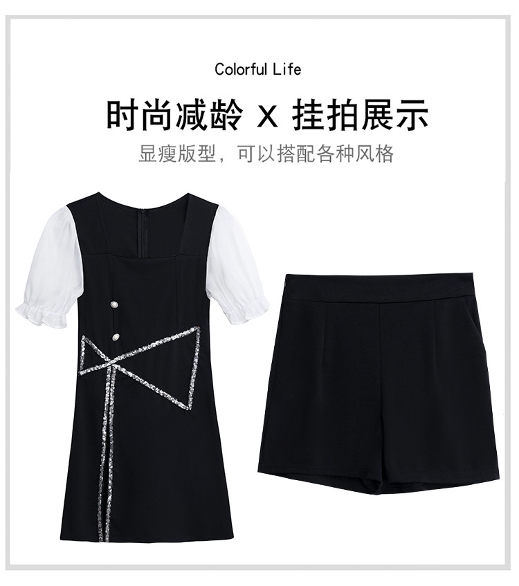 RM8455#夏季新款大码女装胖MM时尚气质修身上衣+短裤两件套套装