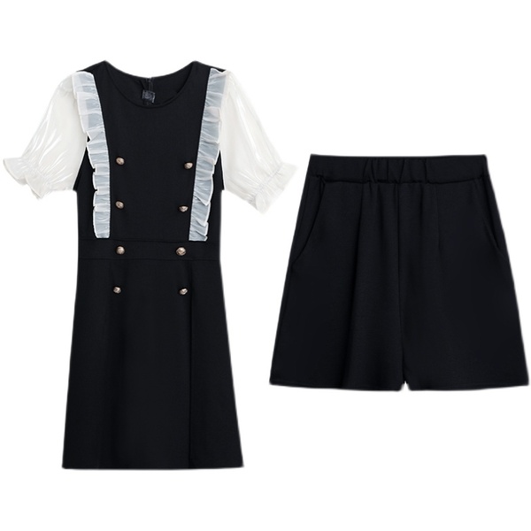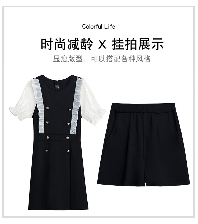RM8456#夏季新款大码女装靓MM时尚气质修身上衣+短裤两件套套装