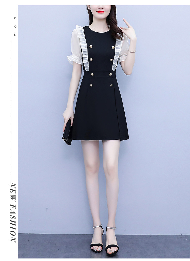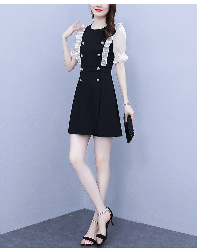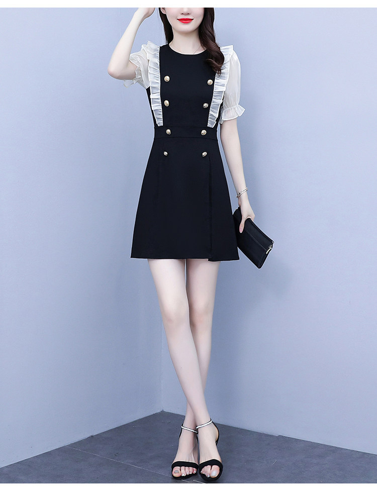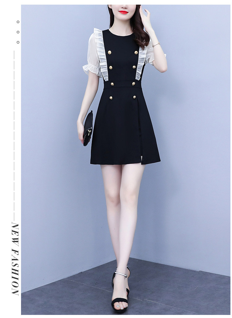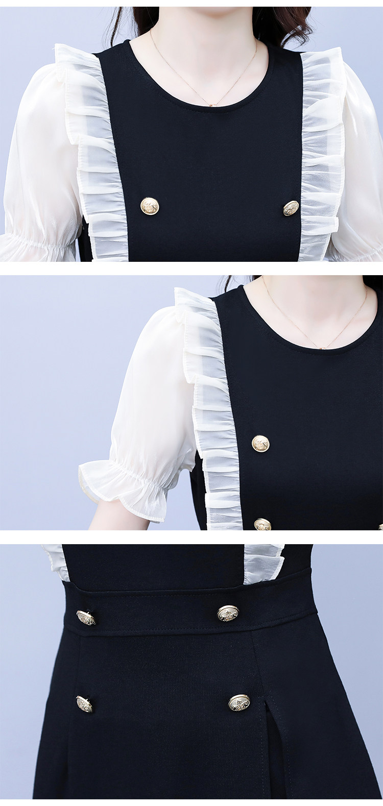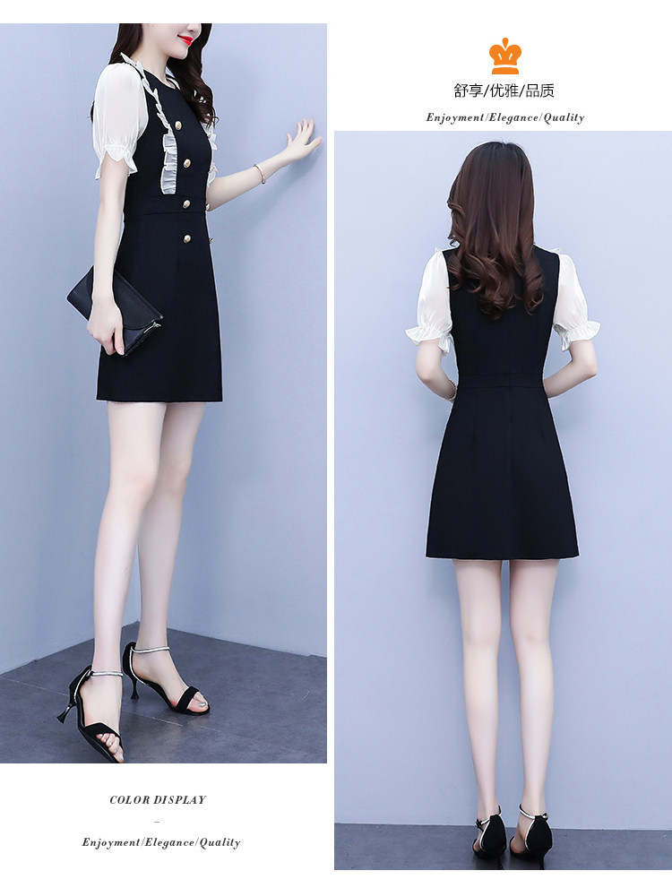 PF16493# 撞色露肩T恤+长裤女2024夏季短款修身显瘦小衫假两件拼...