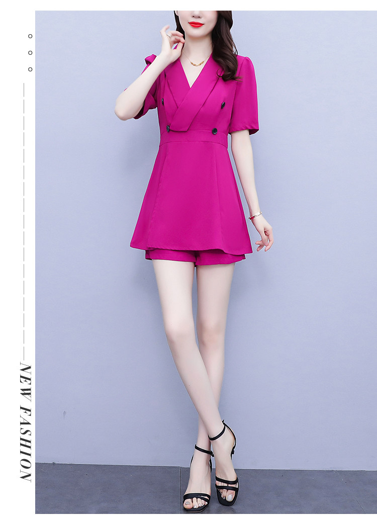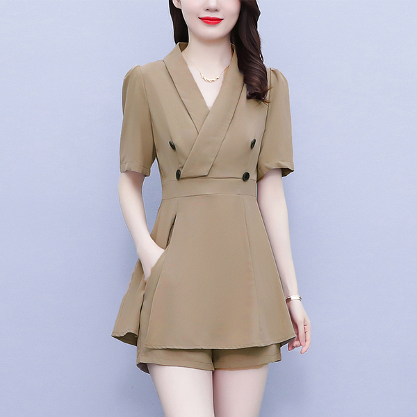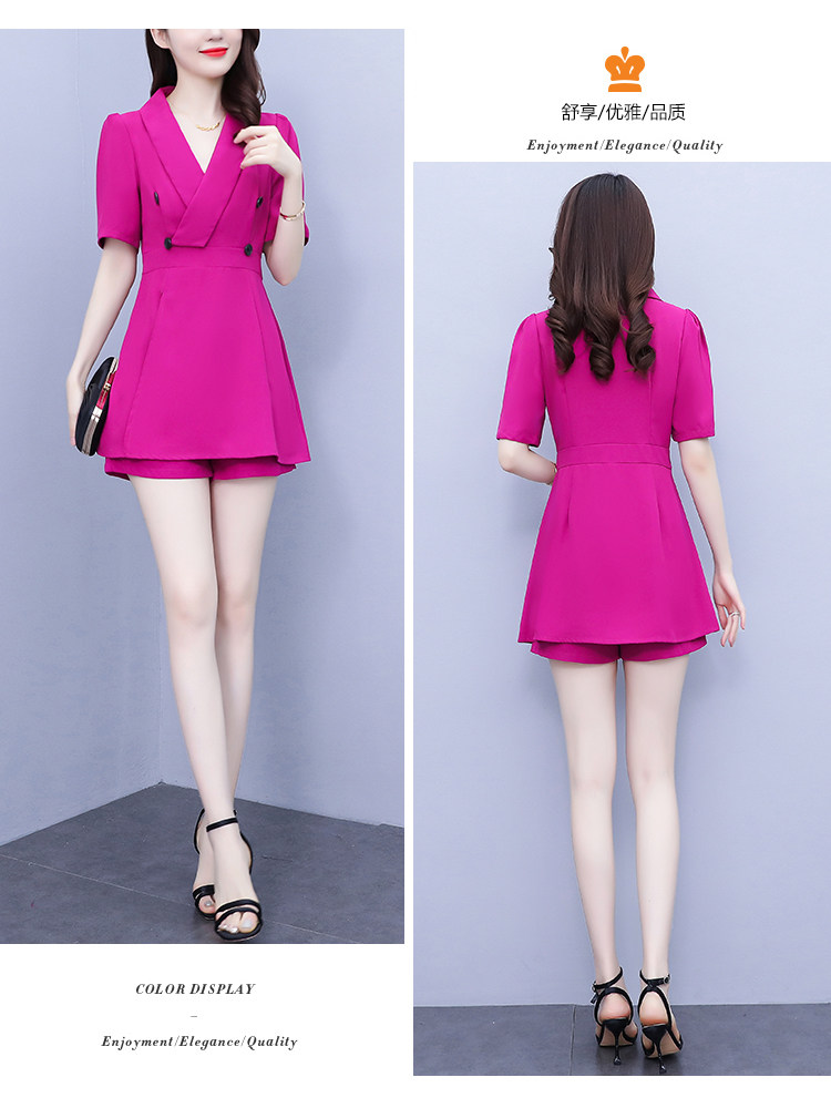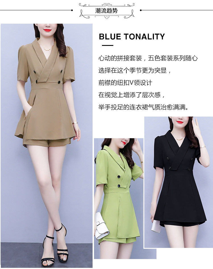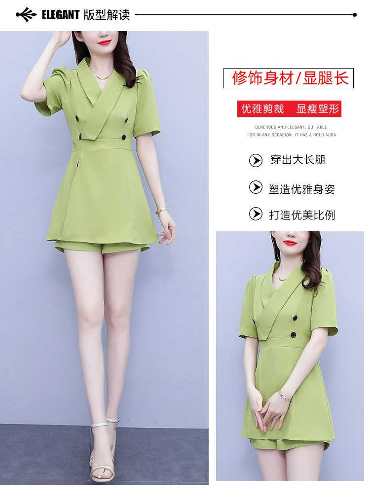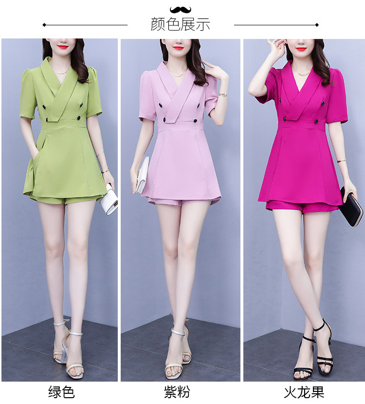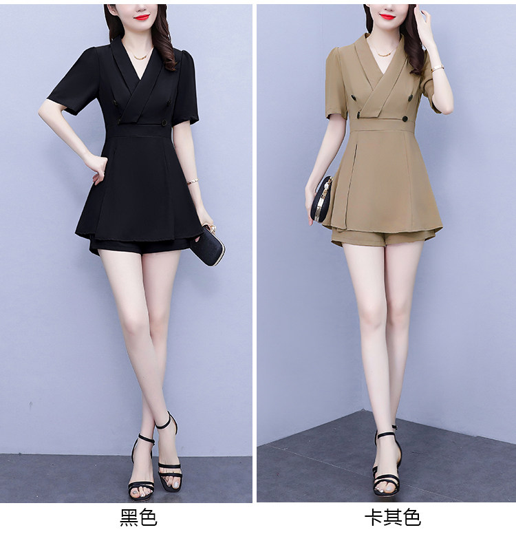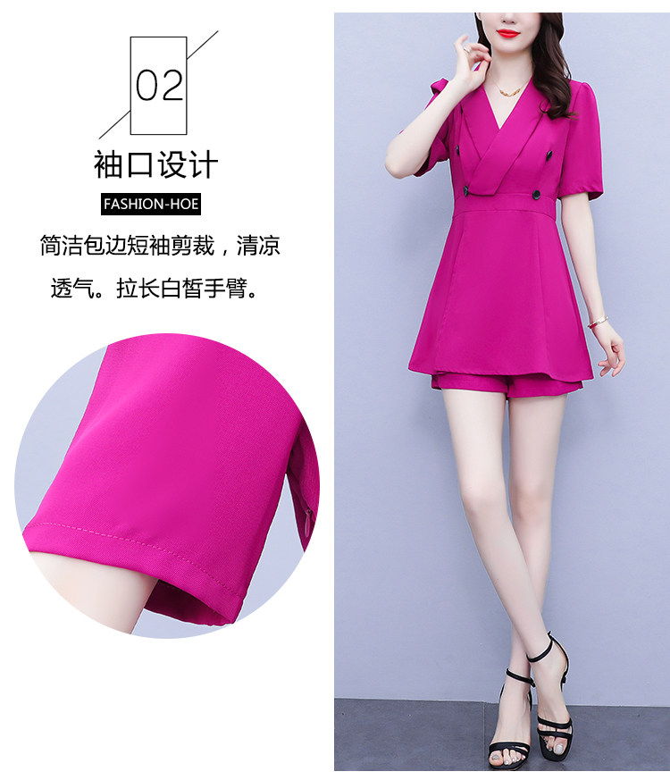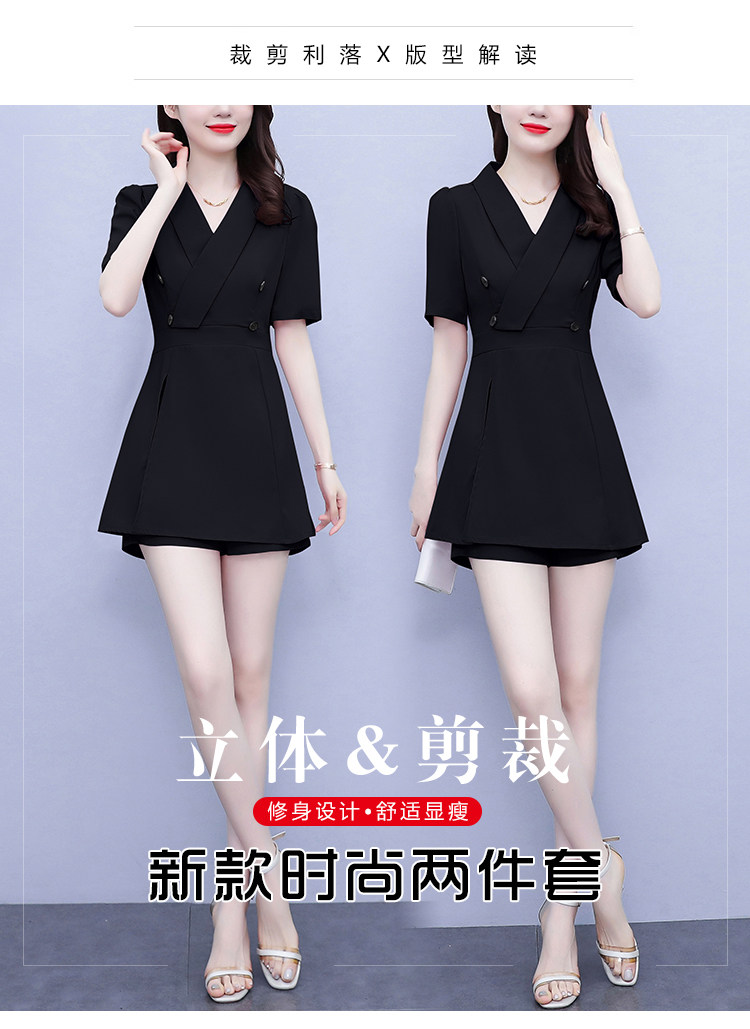 RM8457#夏季大码胖mm短袖a字裙+短裤两件套套装