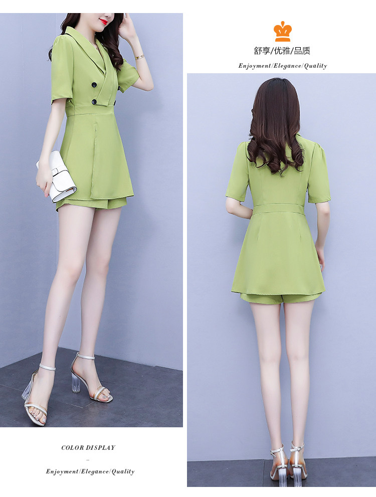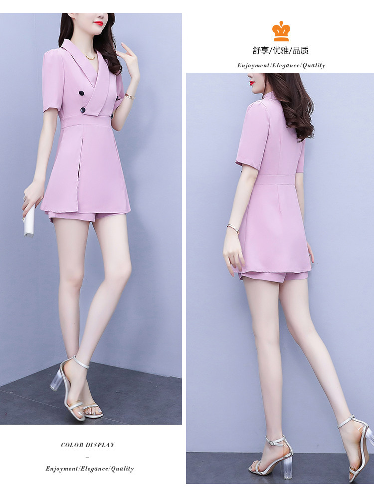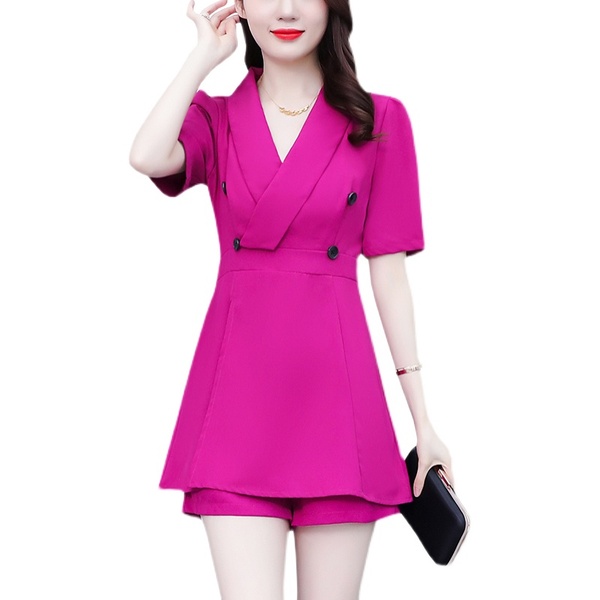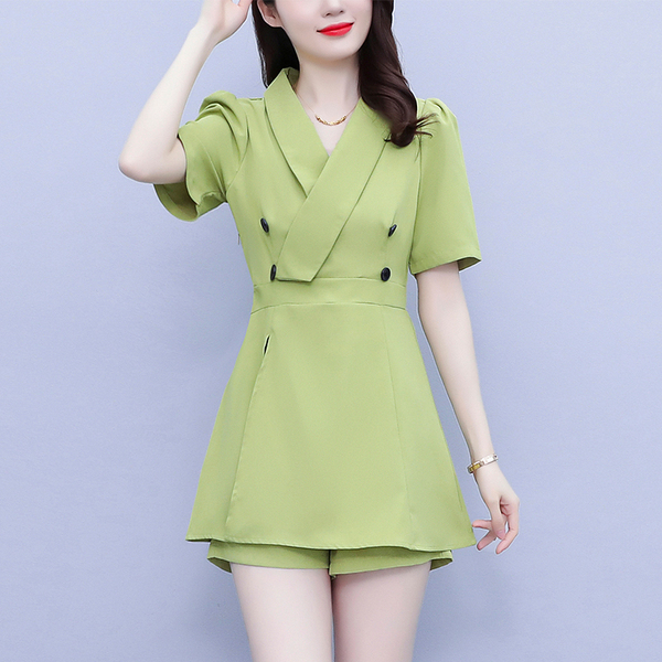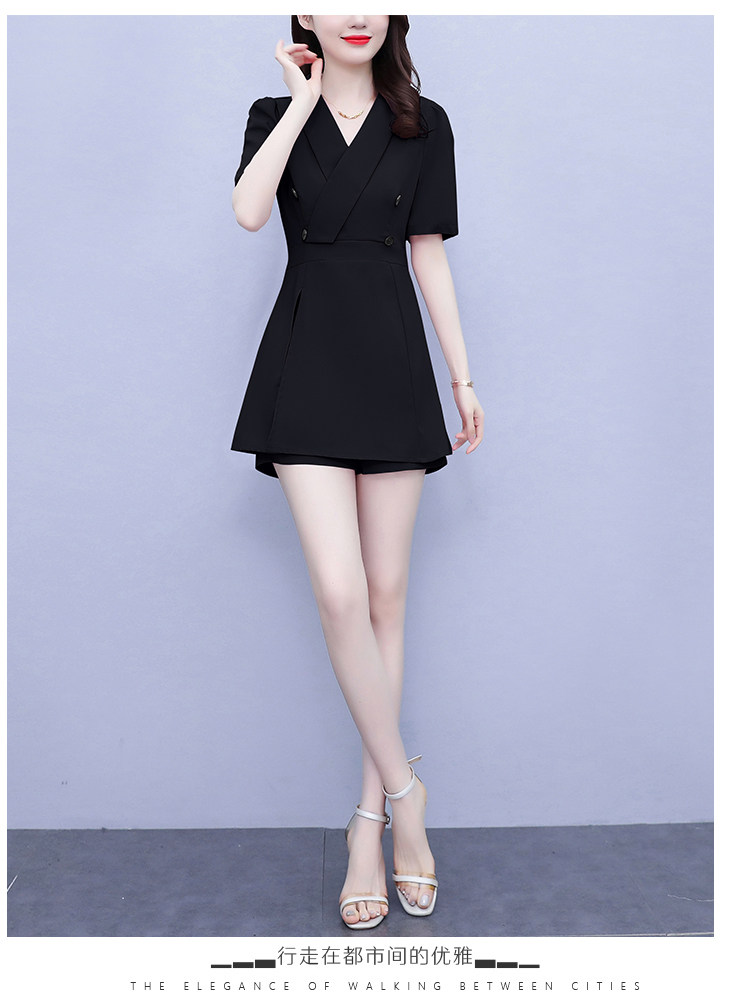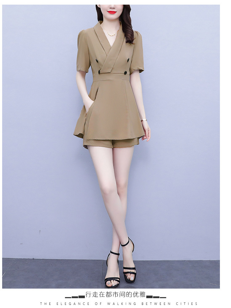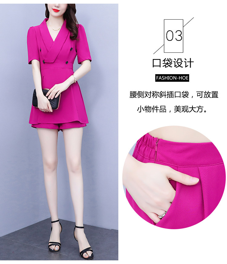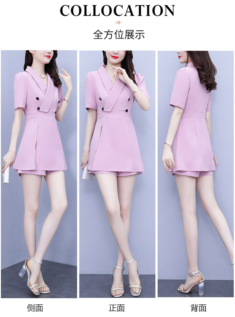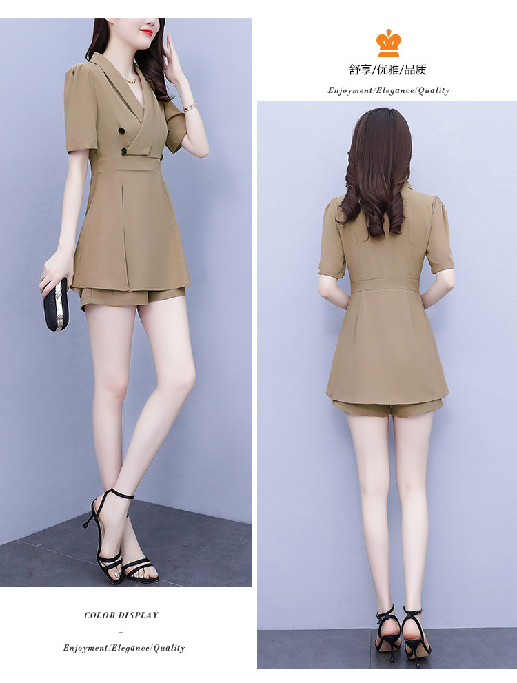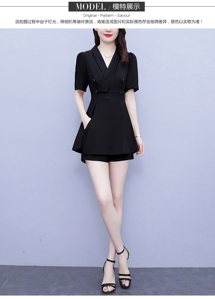 RM8457#夏季大码胖mm短袖a字裙+短裤两件套套装