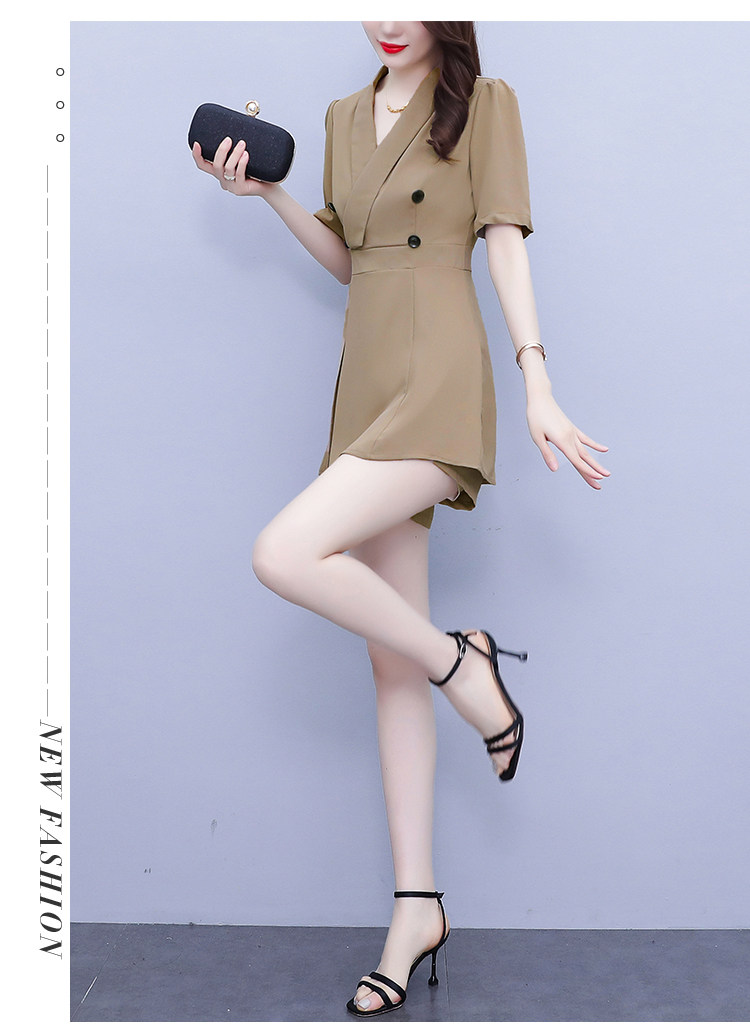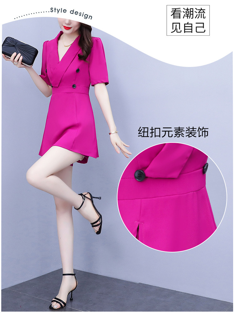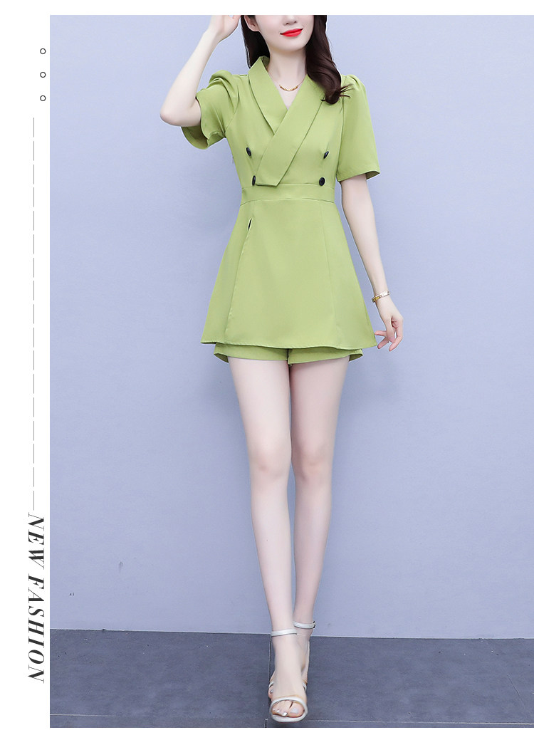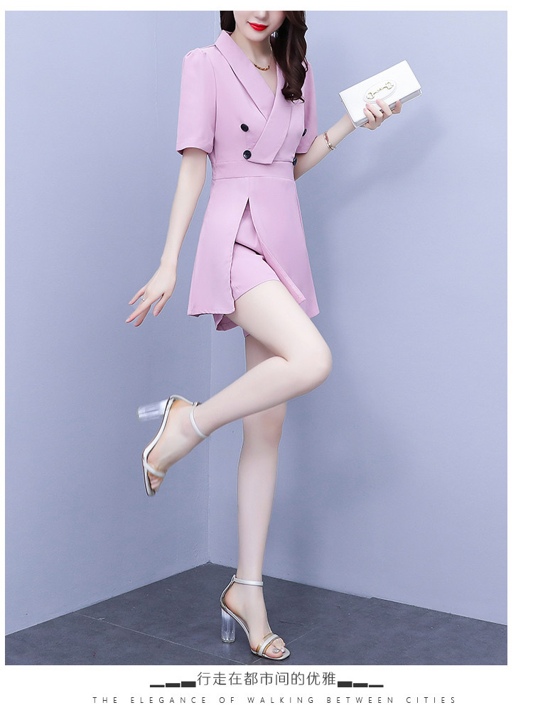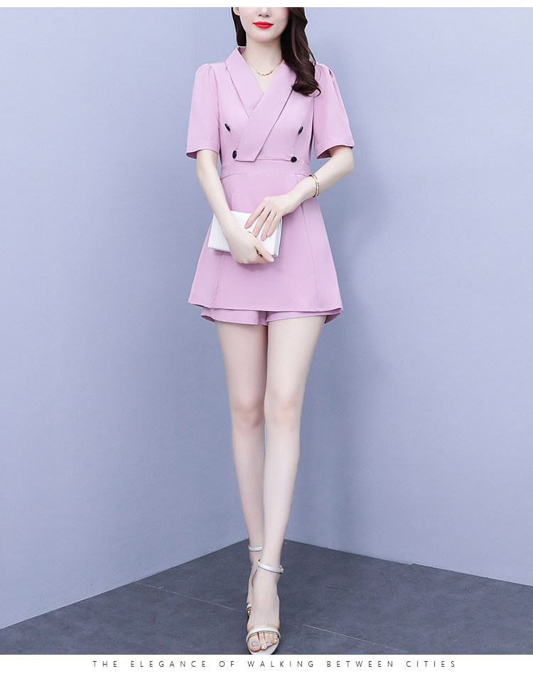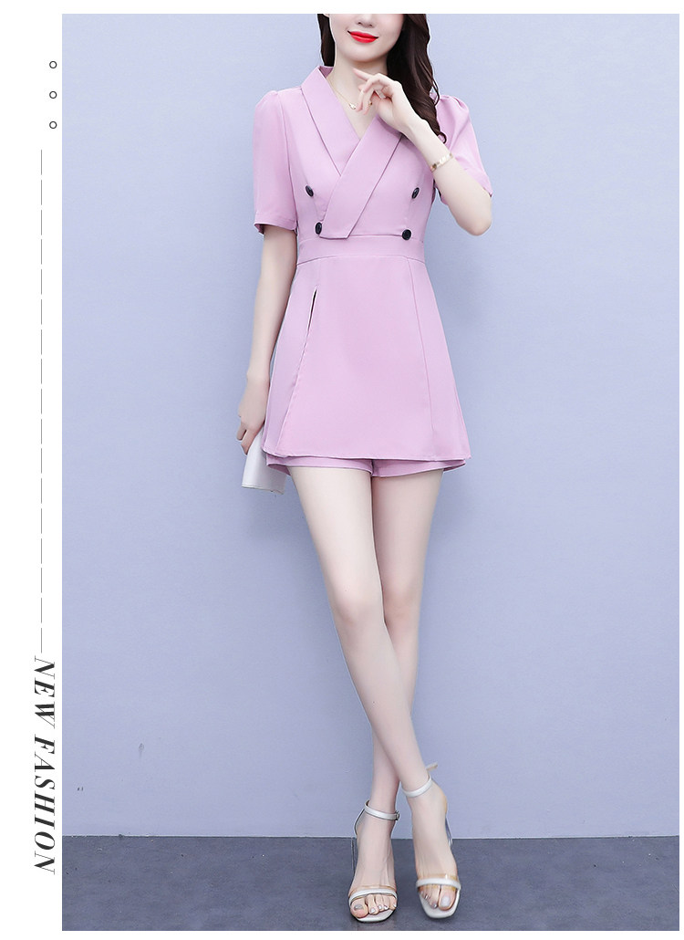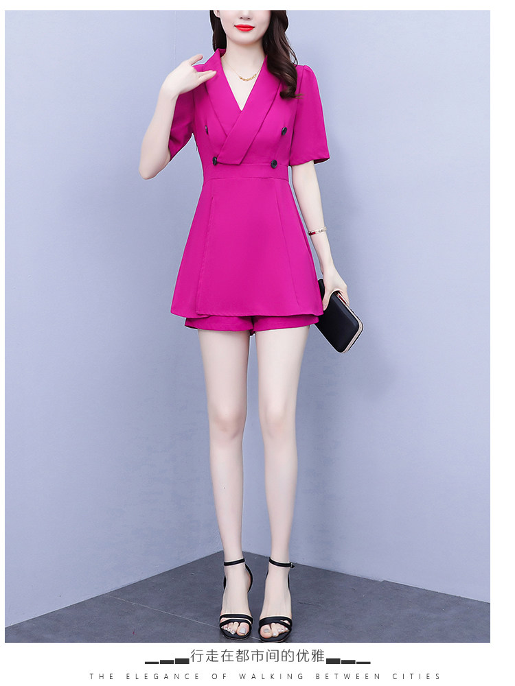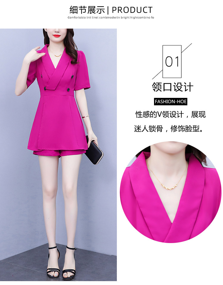 RM8457#夏季大码胖mm短袖a字裙+短裤两件套套装