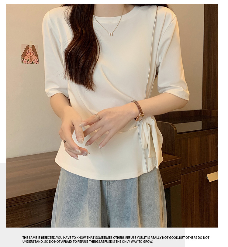 RM8479#设计感别致短袖t恤女高级感夏季黑色显瘦短款上衣潮ins