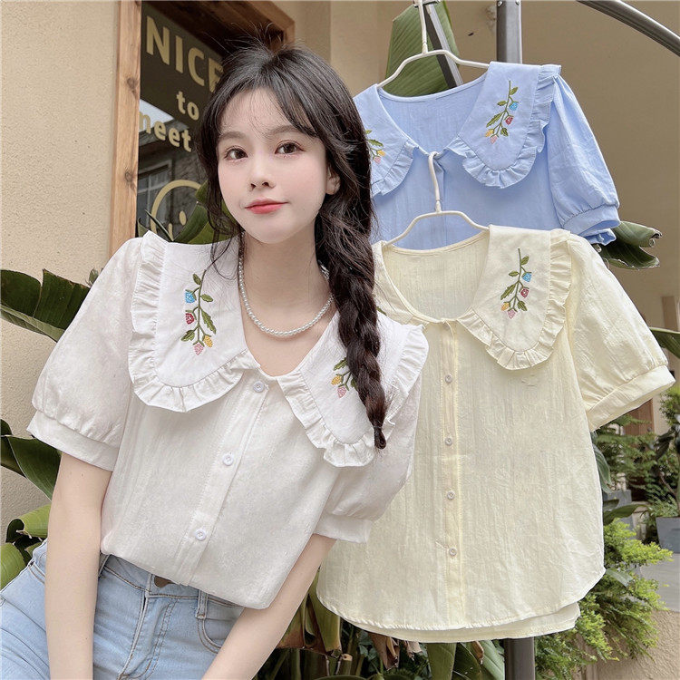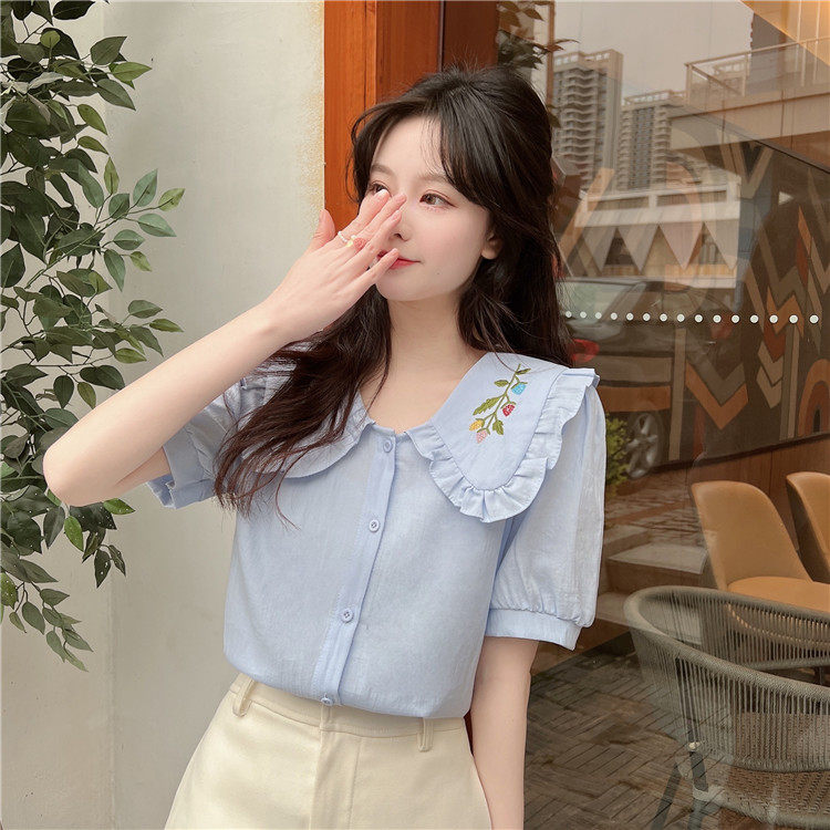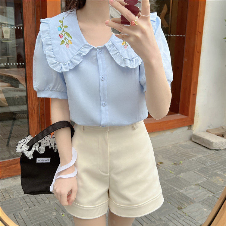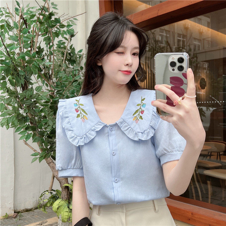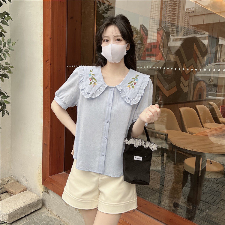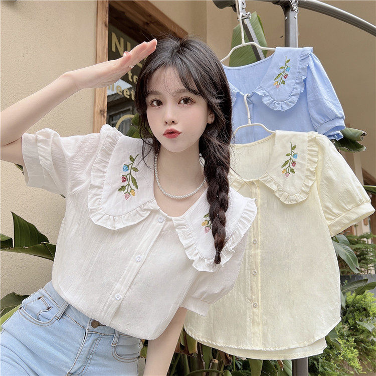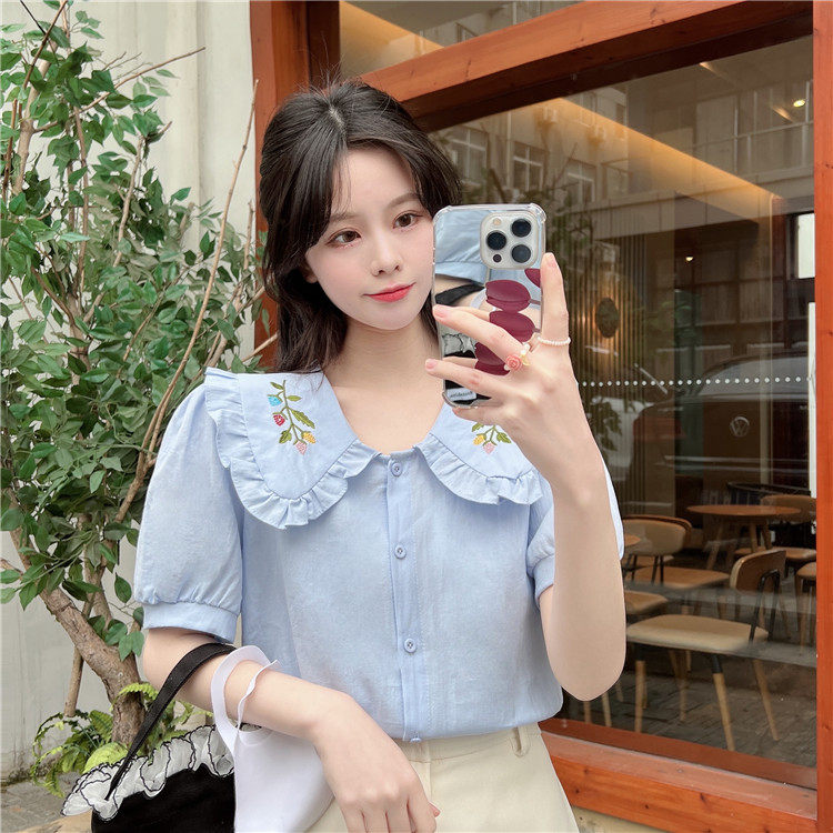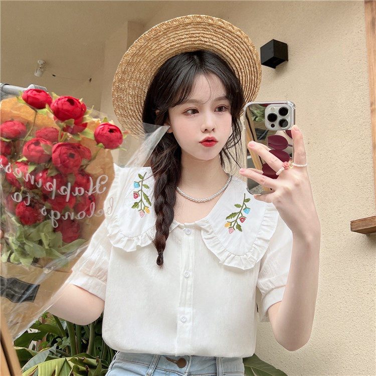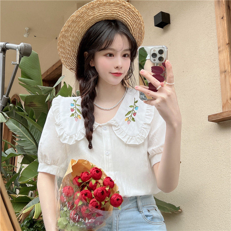 RM8563#夏装新款娃娃领短袖衬衫女设计感小众上衣女