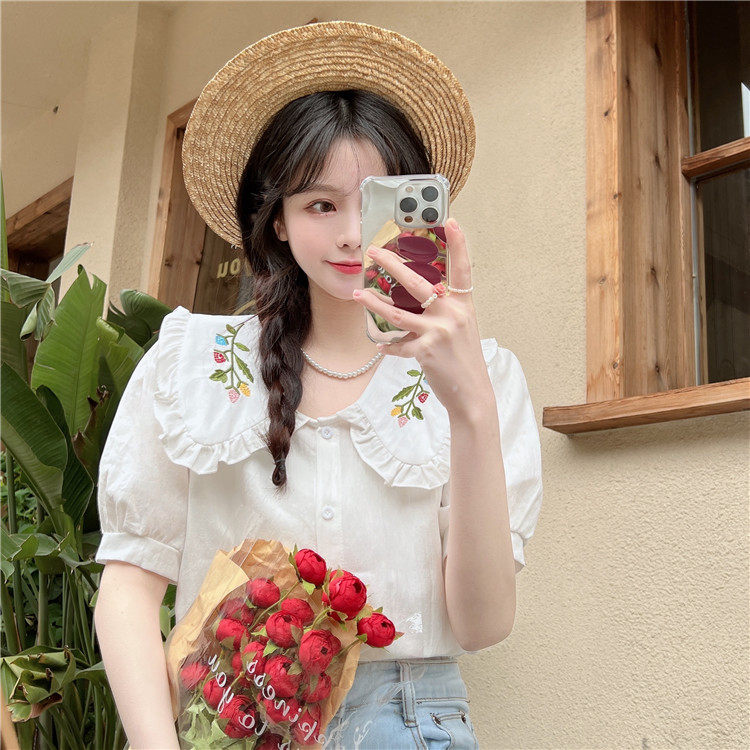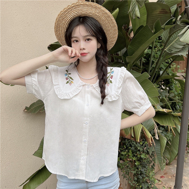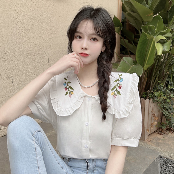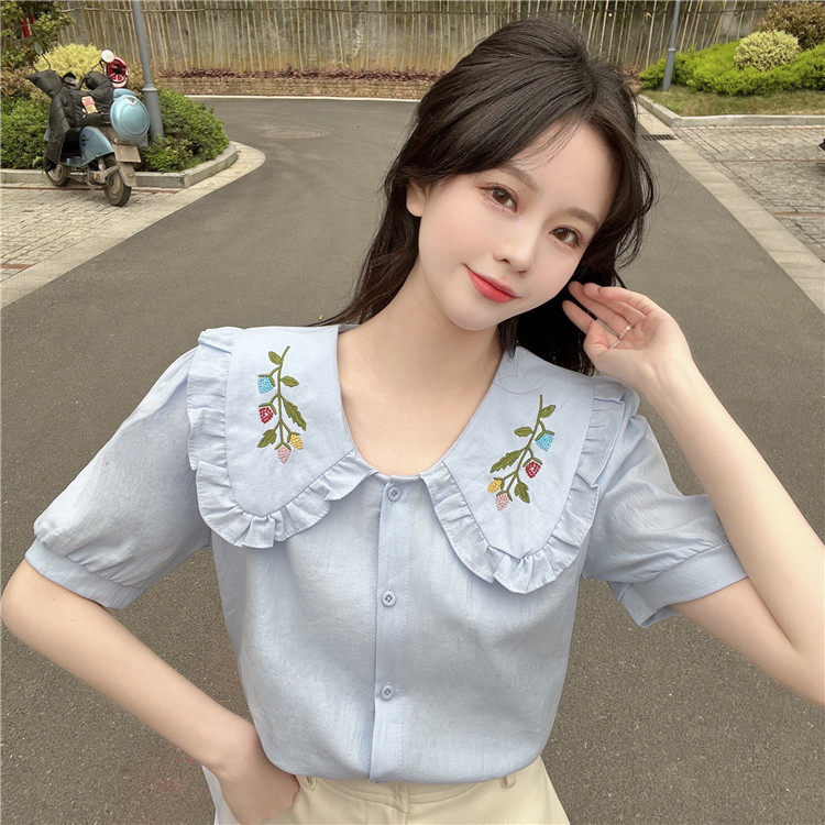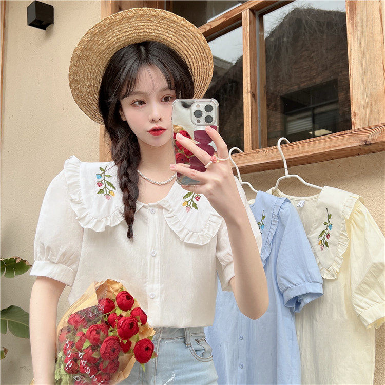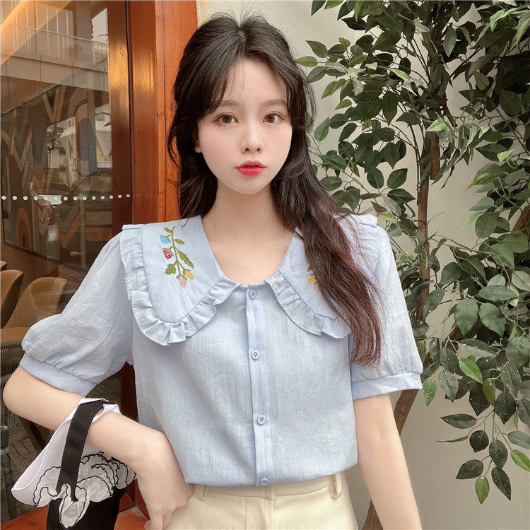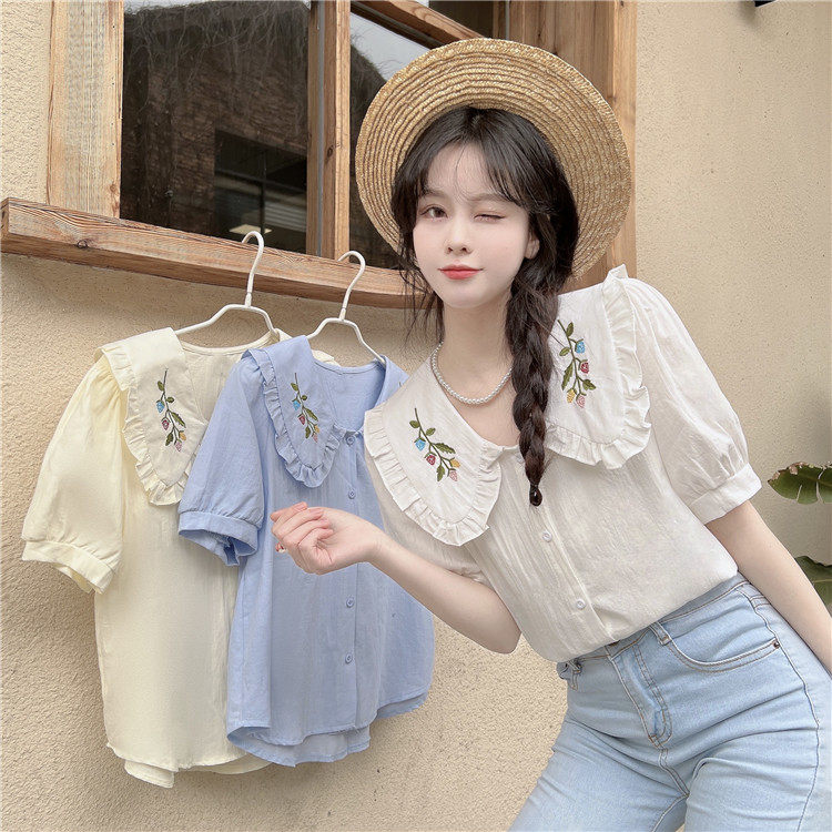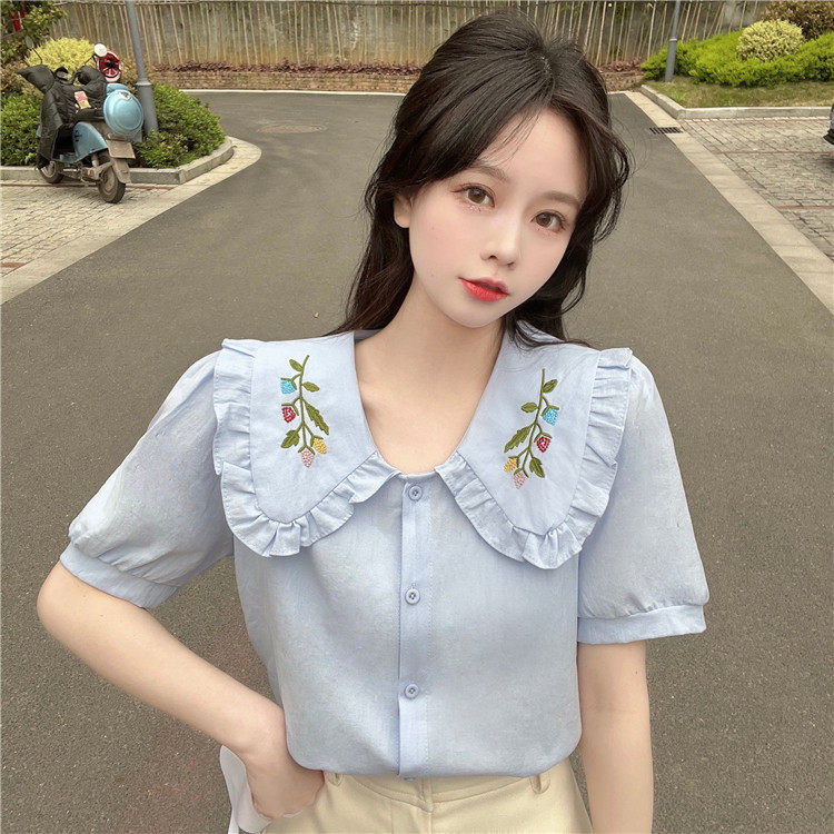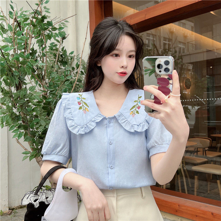 RM8563#夏装新款娃娃领短袖衬衫女设计感小众上衣女