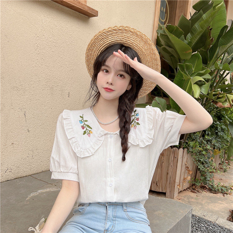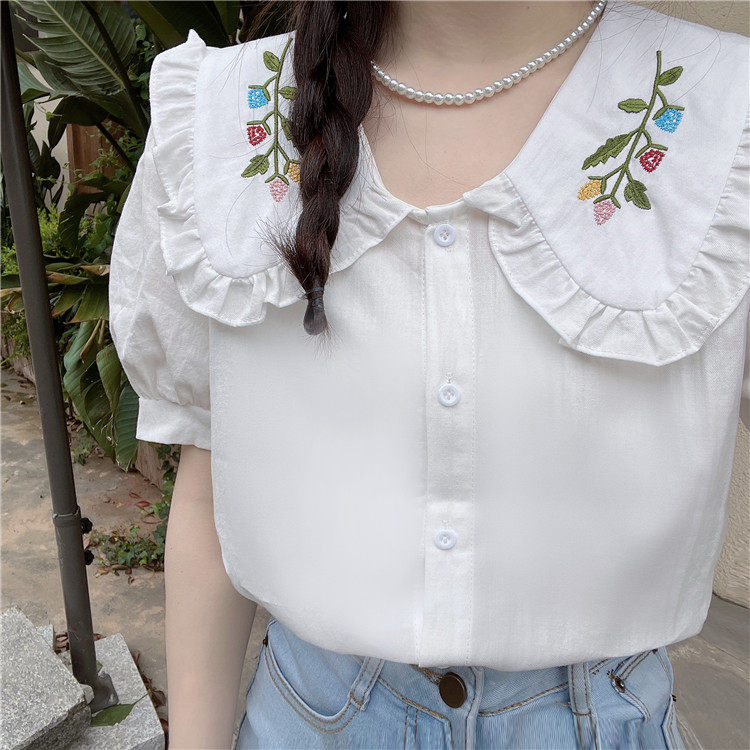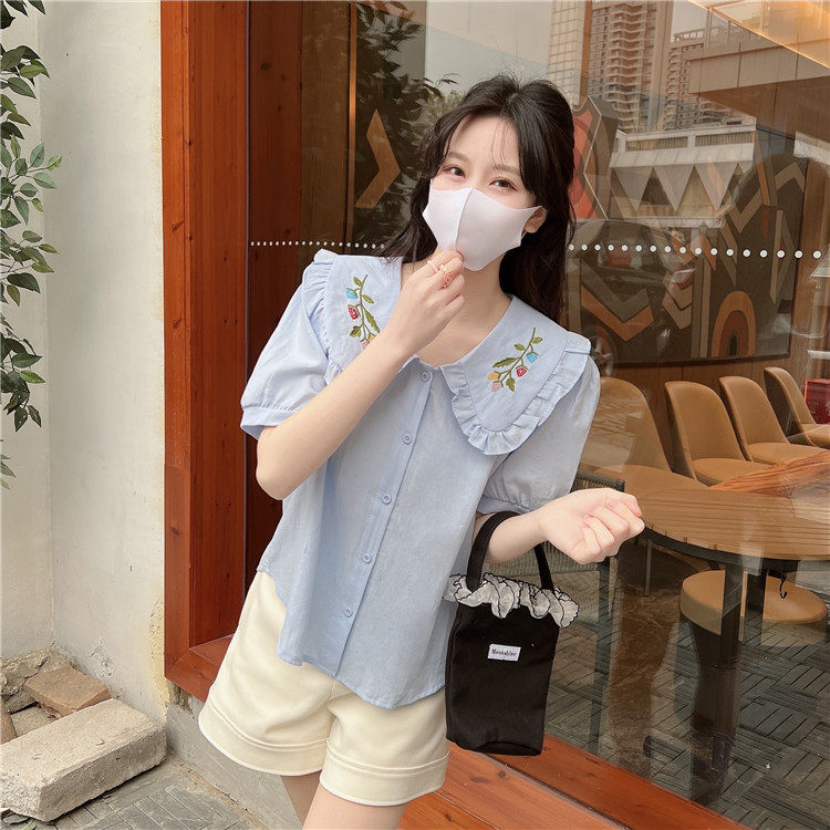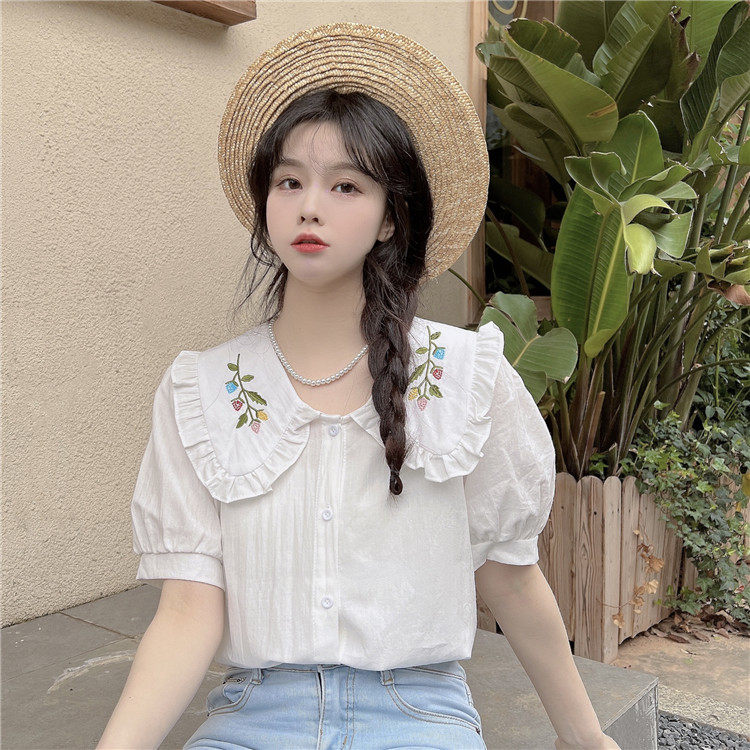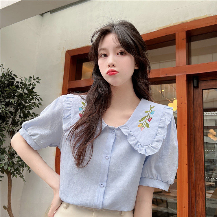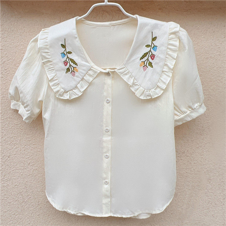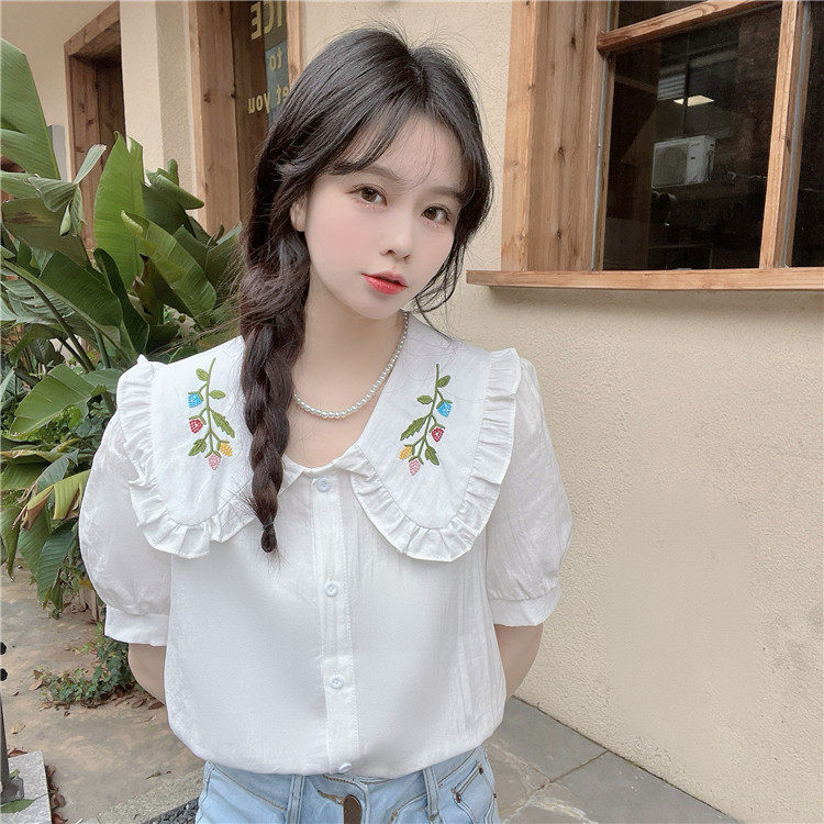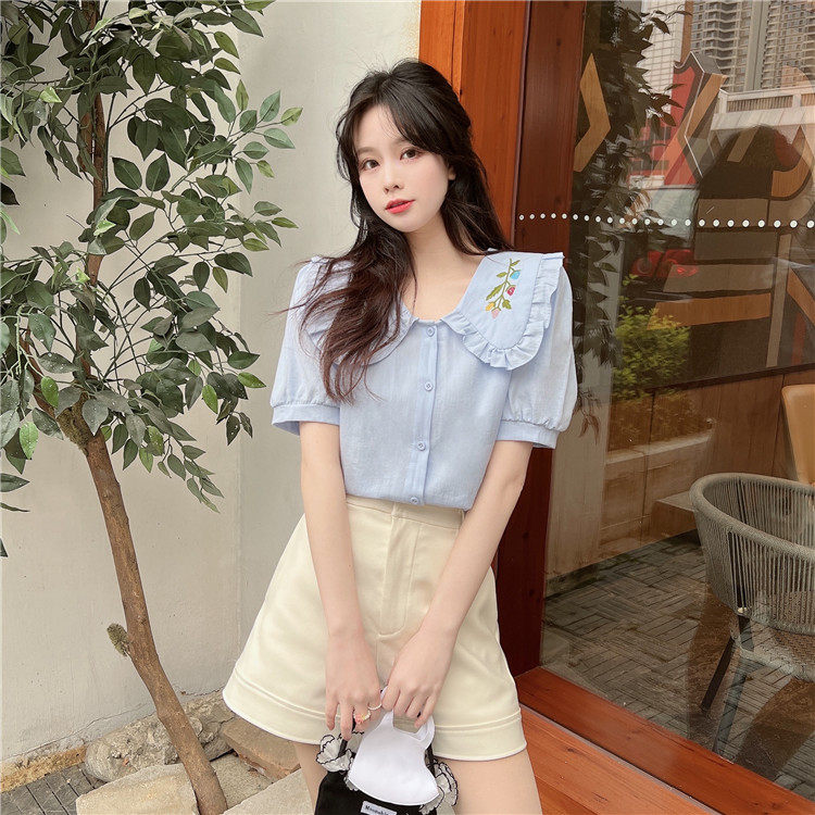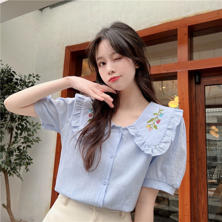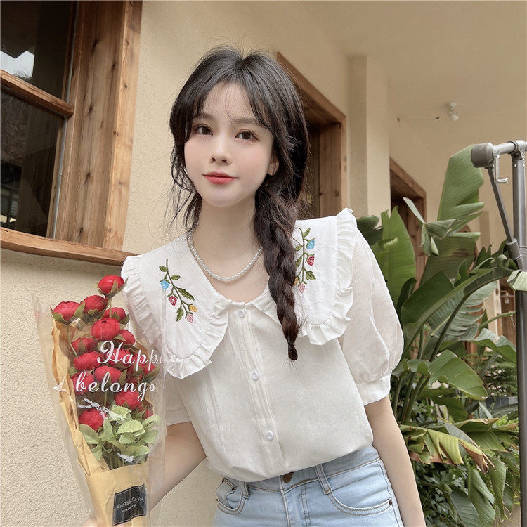 RM8563#夏装新款娃娃领短袖衬衫女设计感小众上衣女