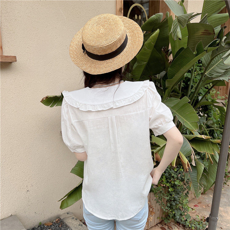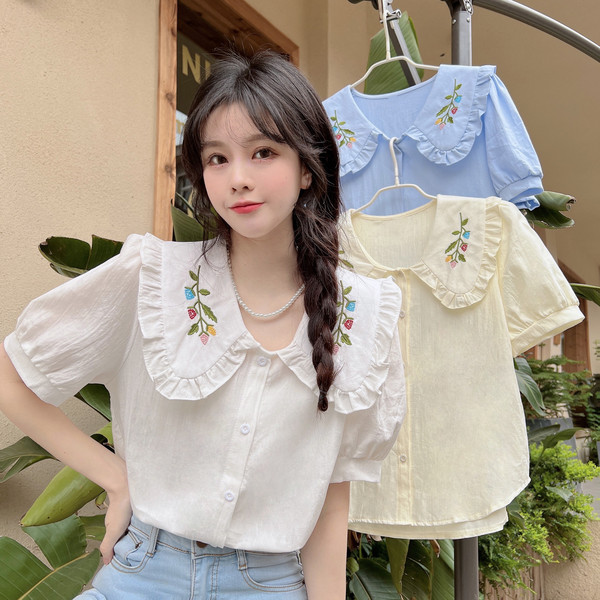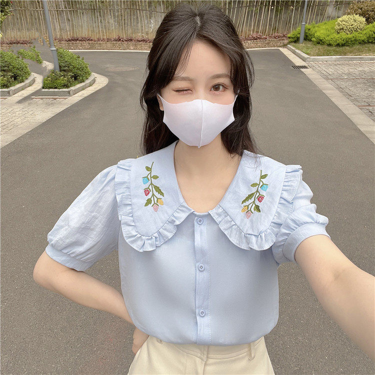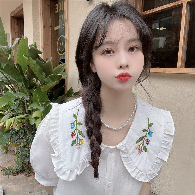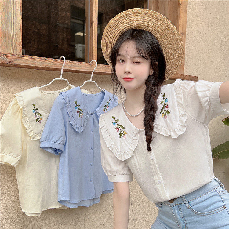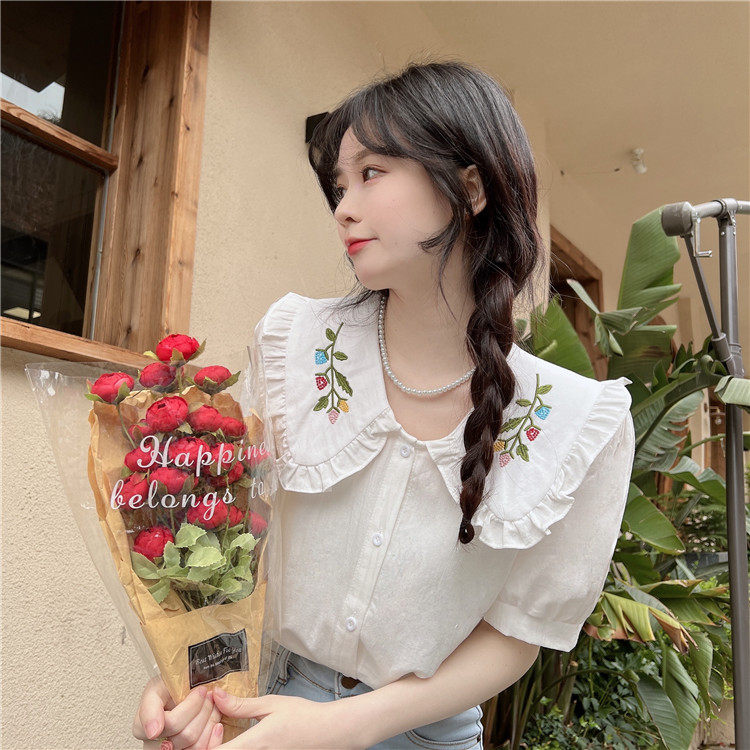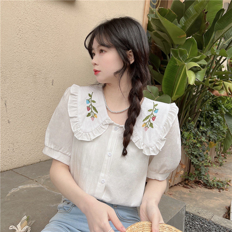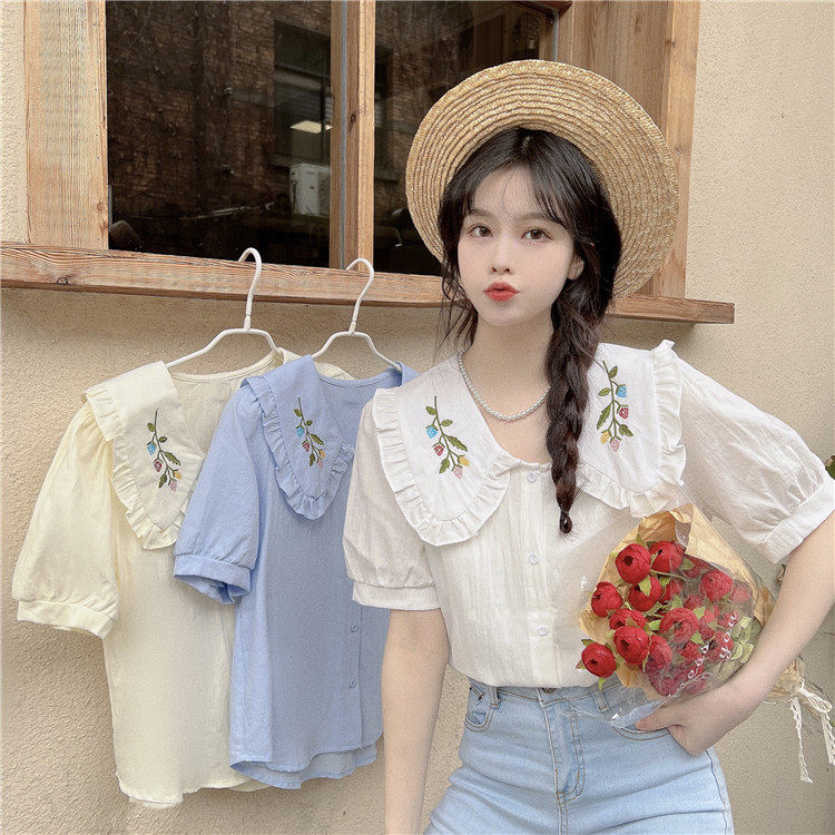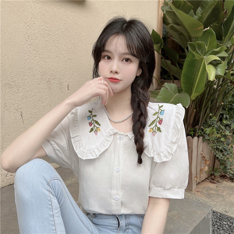 RM8563#夏装新款娃娃领短袖衬衫女设计感小众上衣女