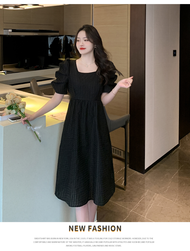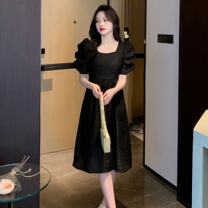 RM8647#夏季上新装编织纱裙显瘦法式方领系带泡泡袖连衣裙