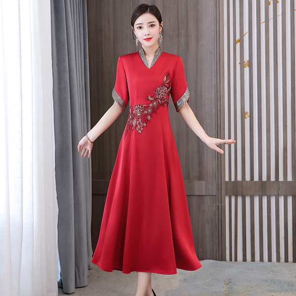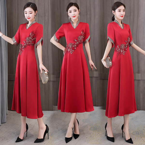 RM8832#婚礼妈妈礼服女2023新款中长款高贵优雅气质时尚喜婆婆婚宴连衣裙