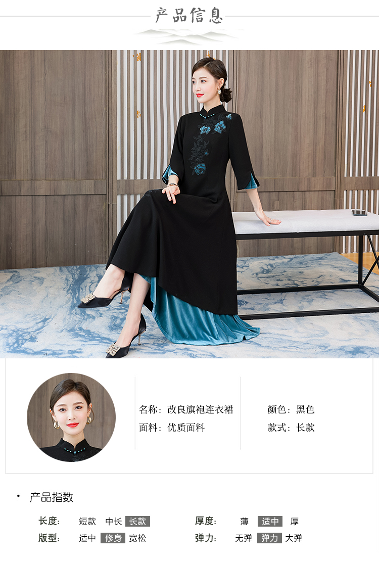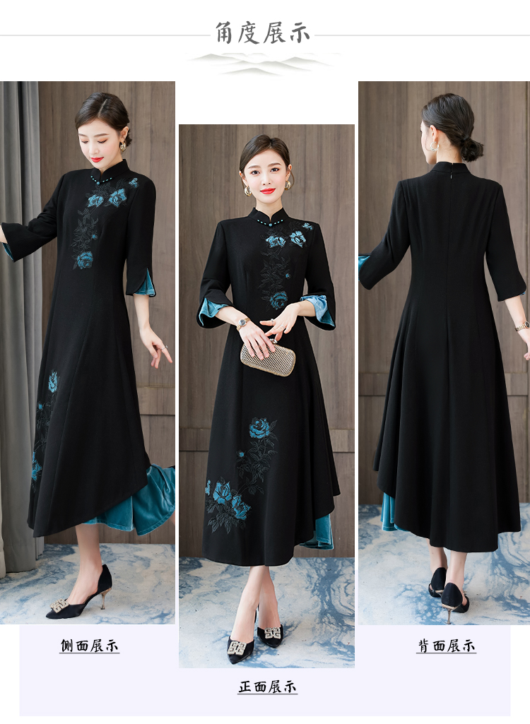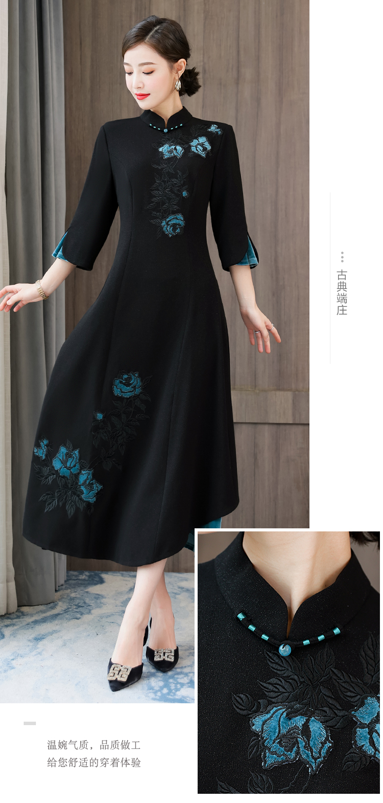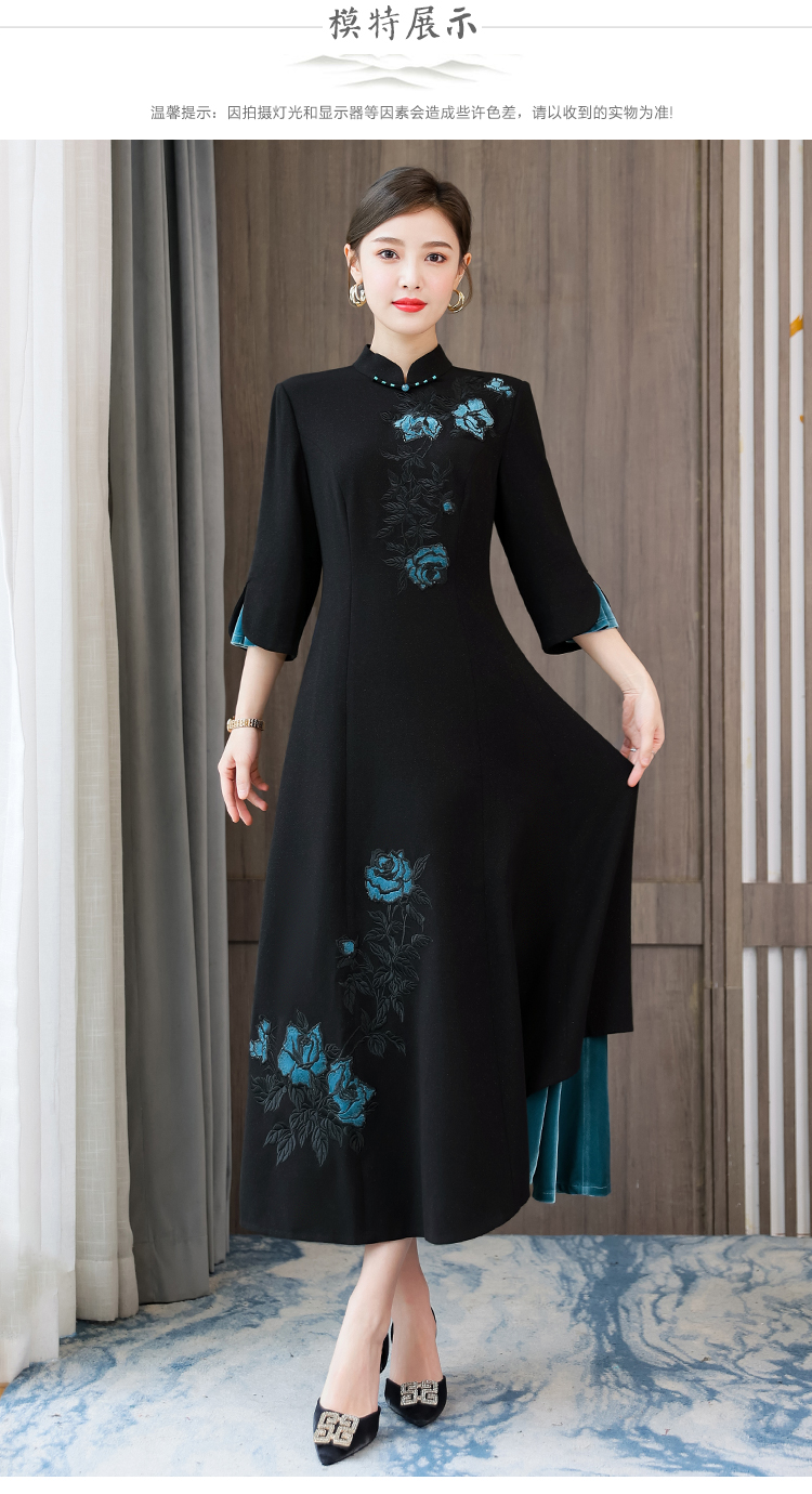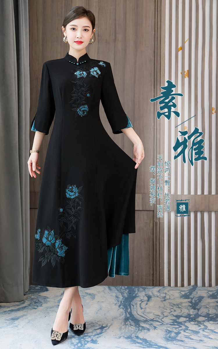 RM8841#高贵优雅妈妈装改良旗袍裙新品中式绣花拼接礼服长款连衣裙
