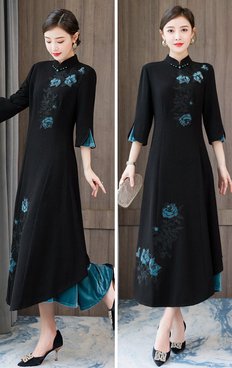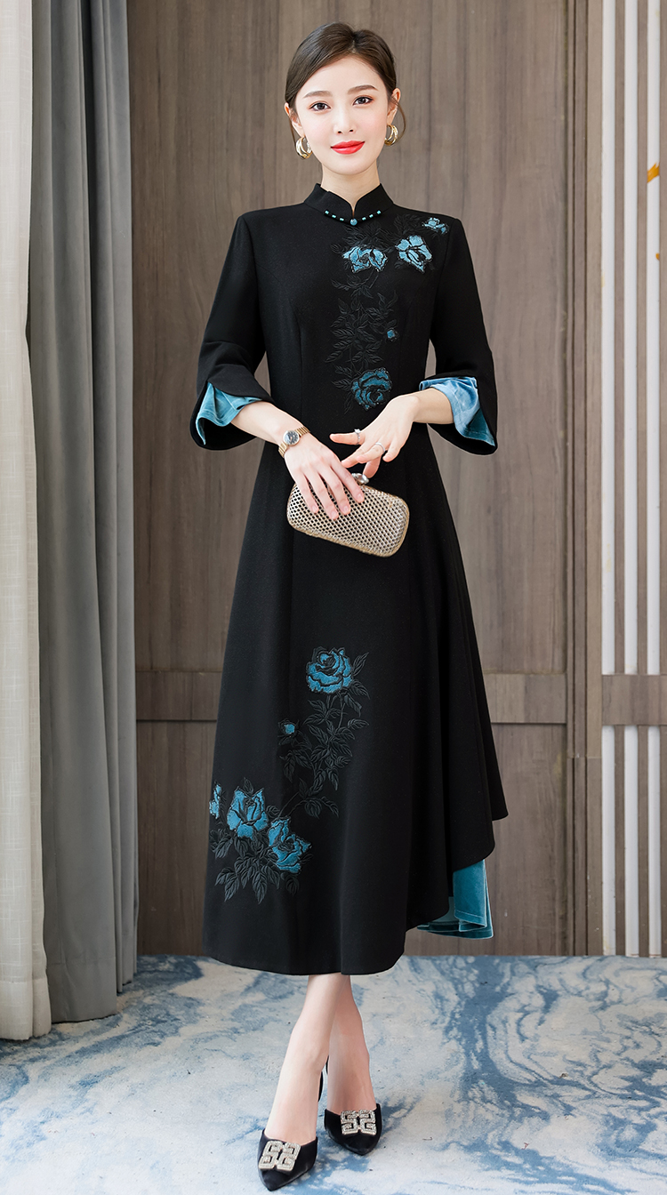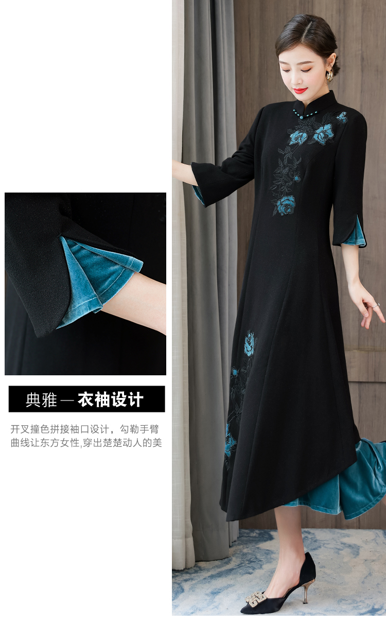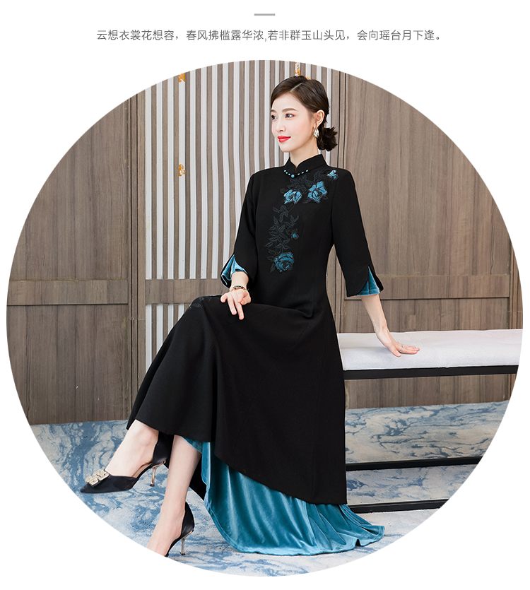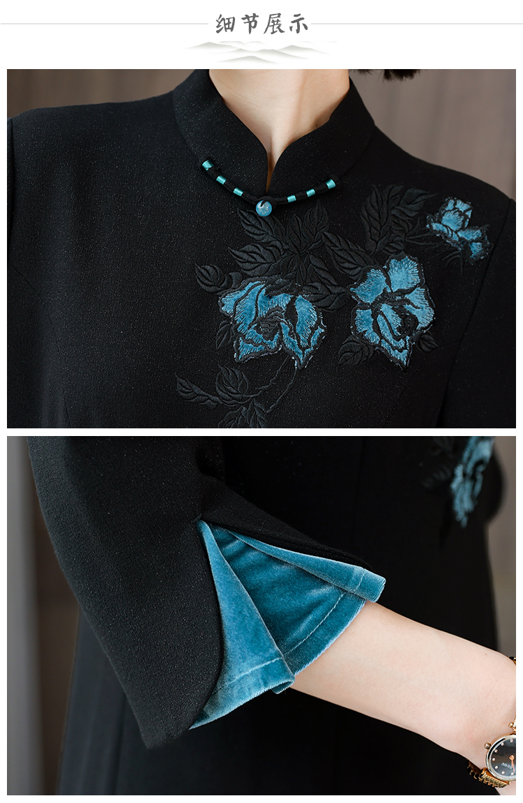 RM8841#高贵优雅妈妈装改良旗袍裙新品中式绣花拼接礼服长款连衣裙