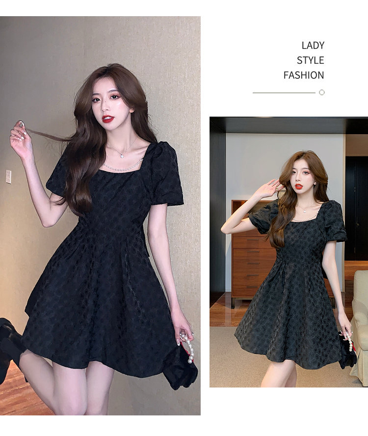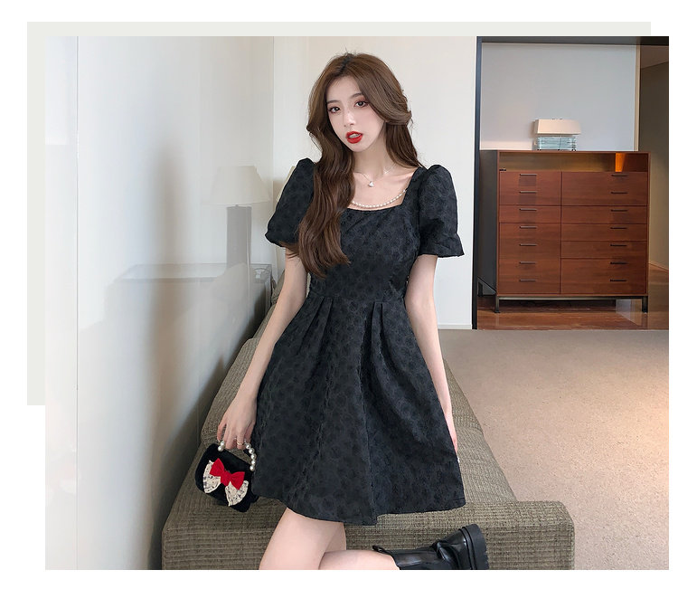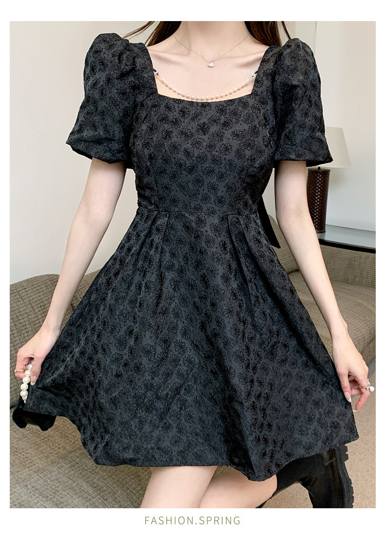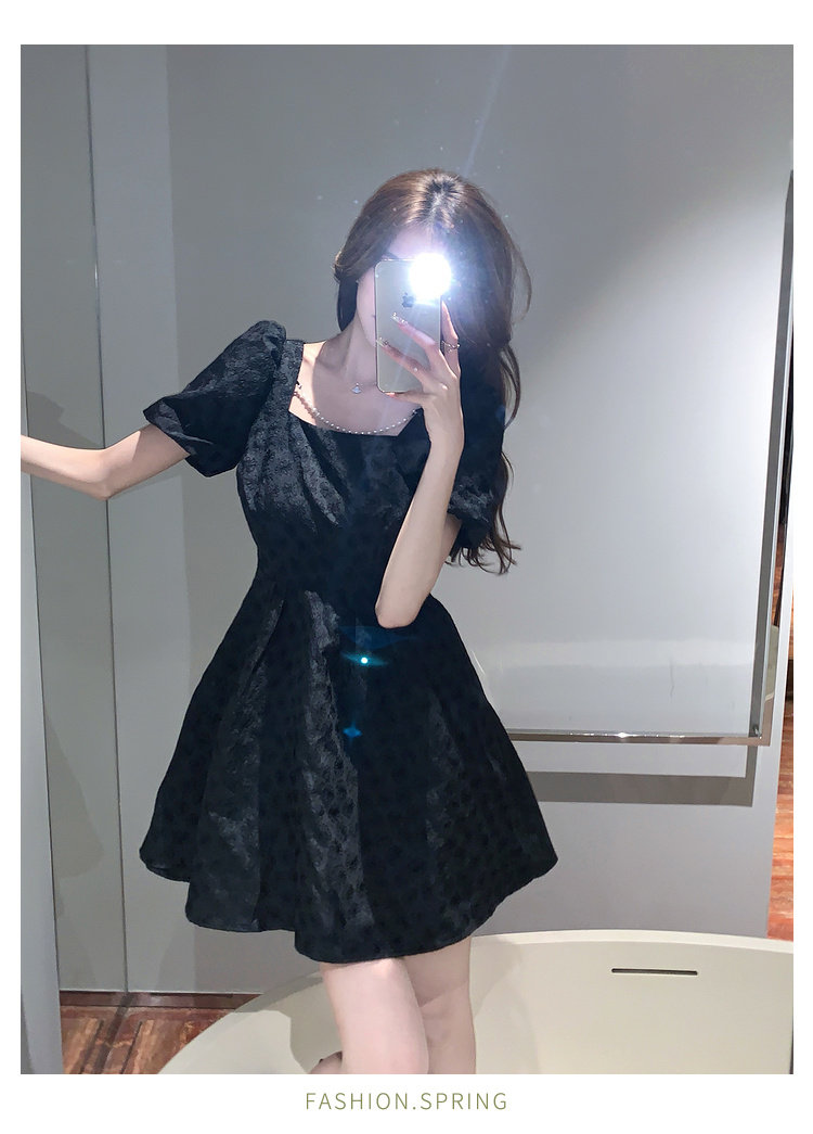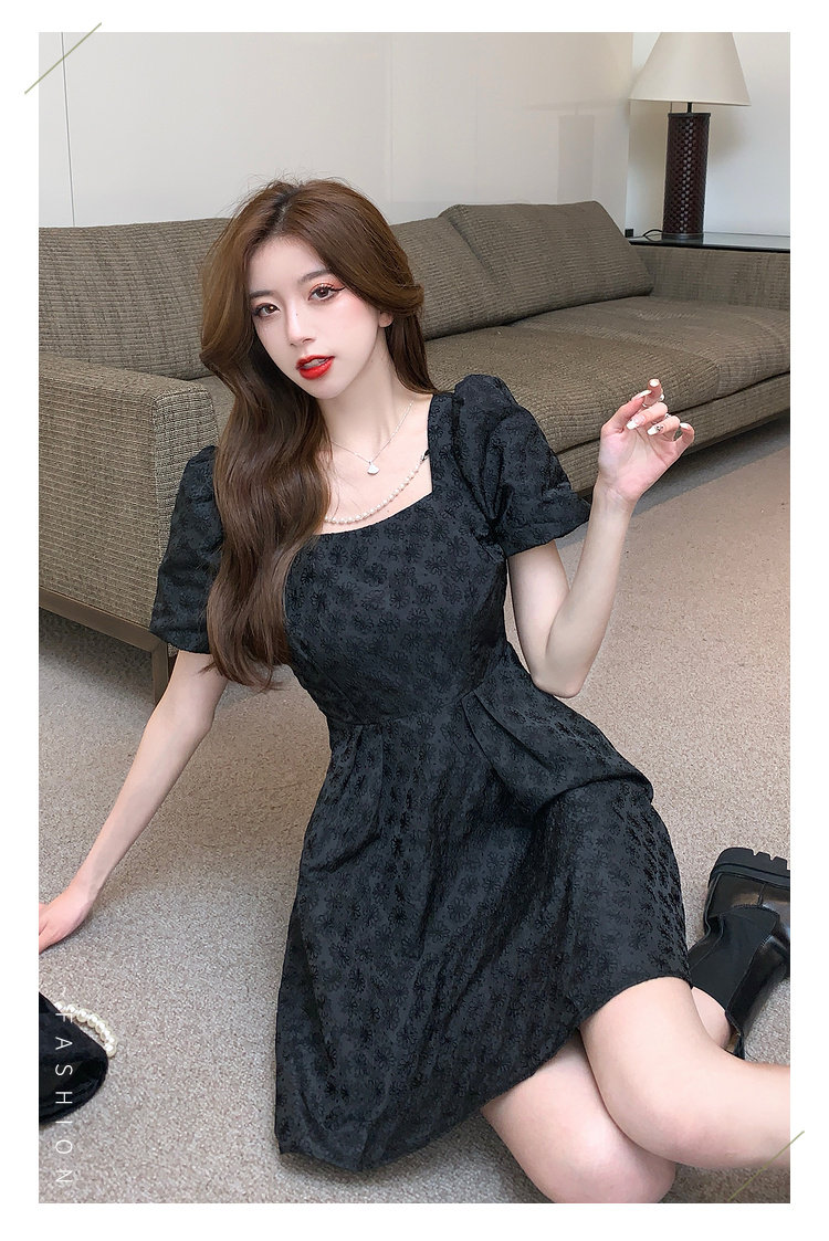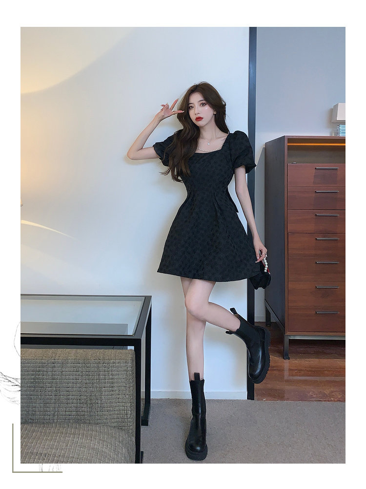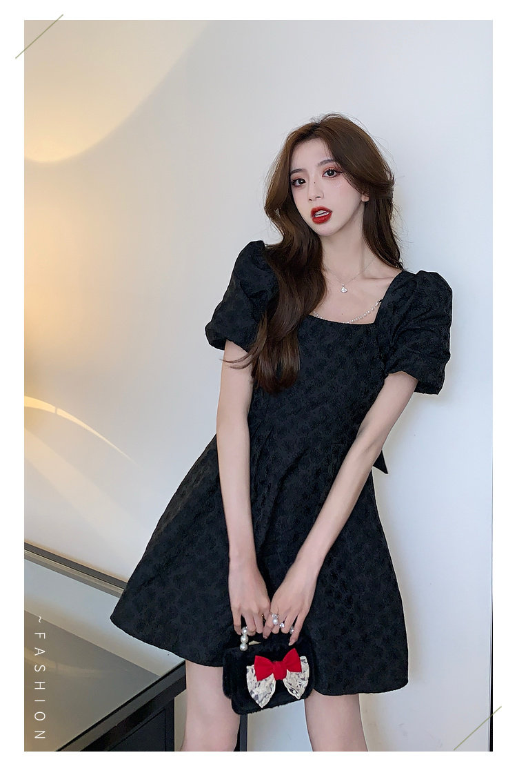 RM8860#夏季网红新款复古方领泡泡袖小黑裙设计感高腰显瘦