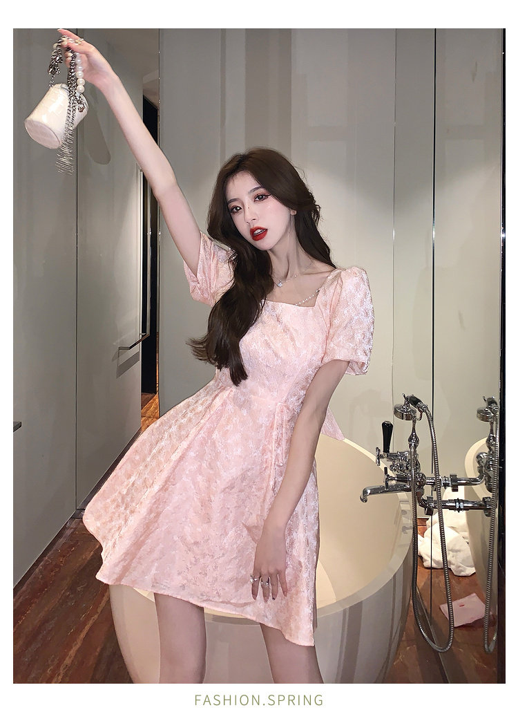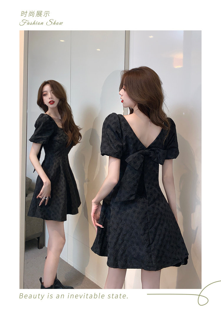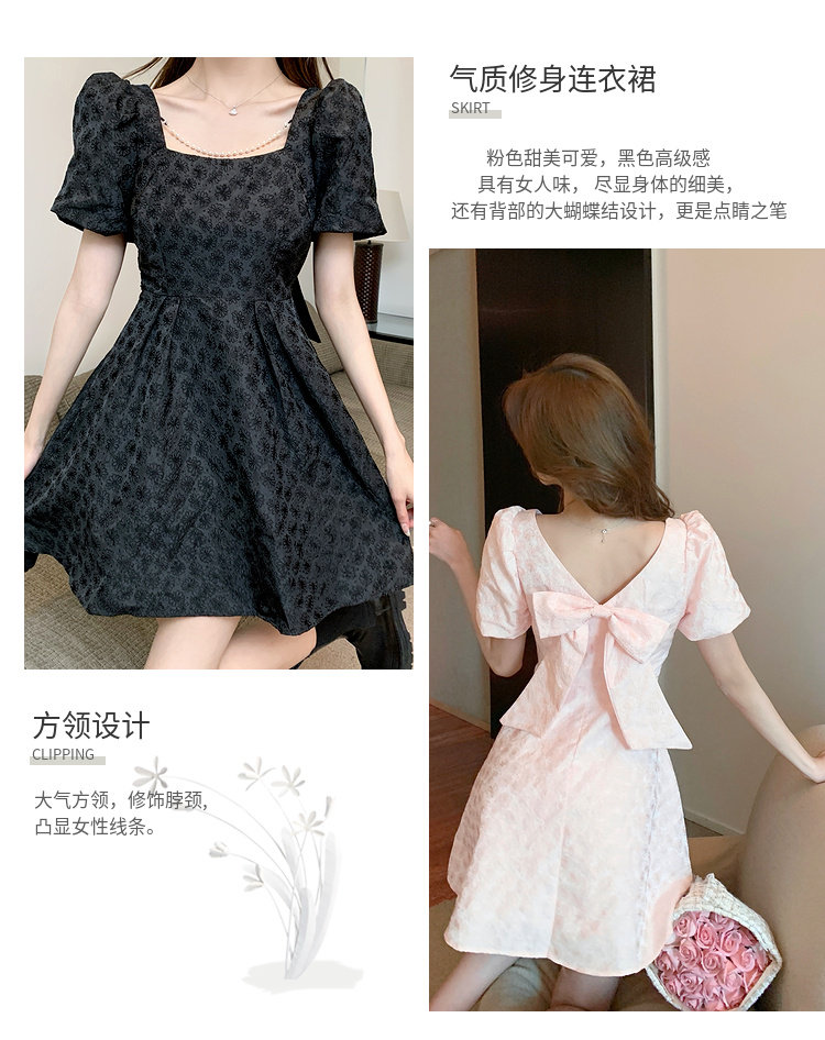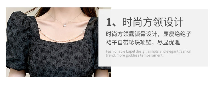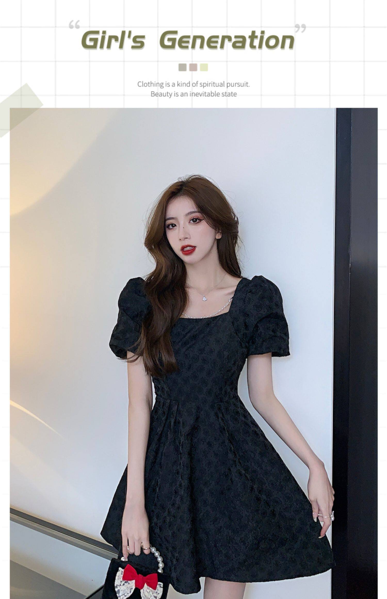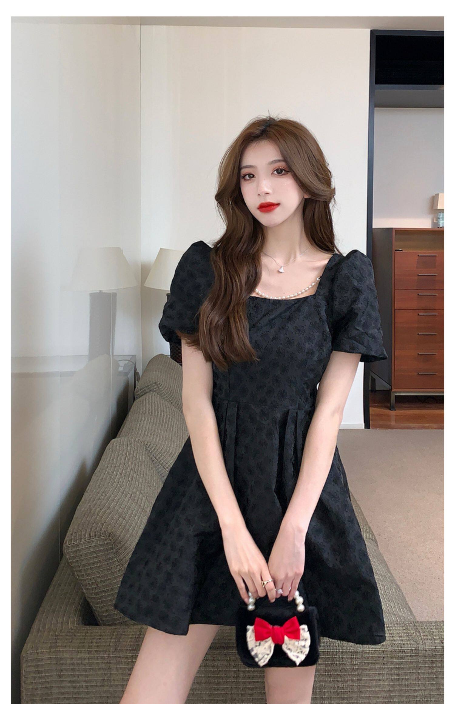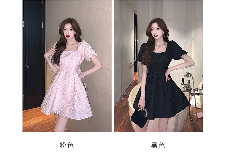 RM8860#夏季网红新款复古方领泡泡袖小黑裙设计感高腰显瘦