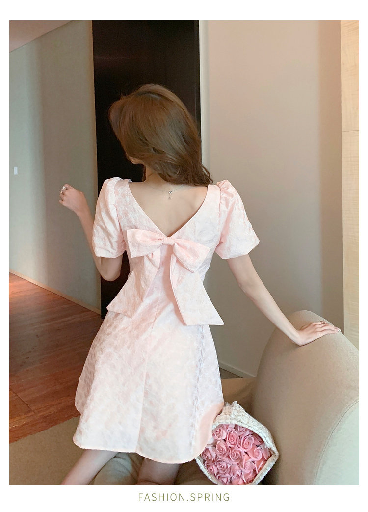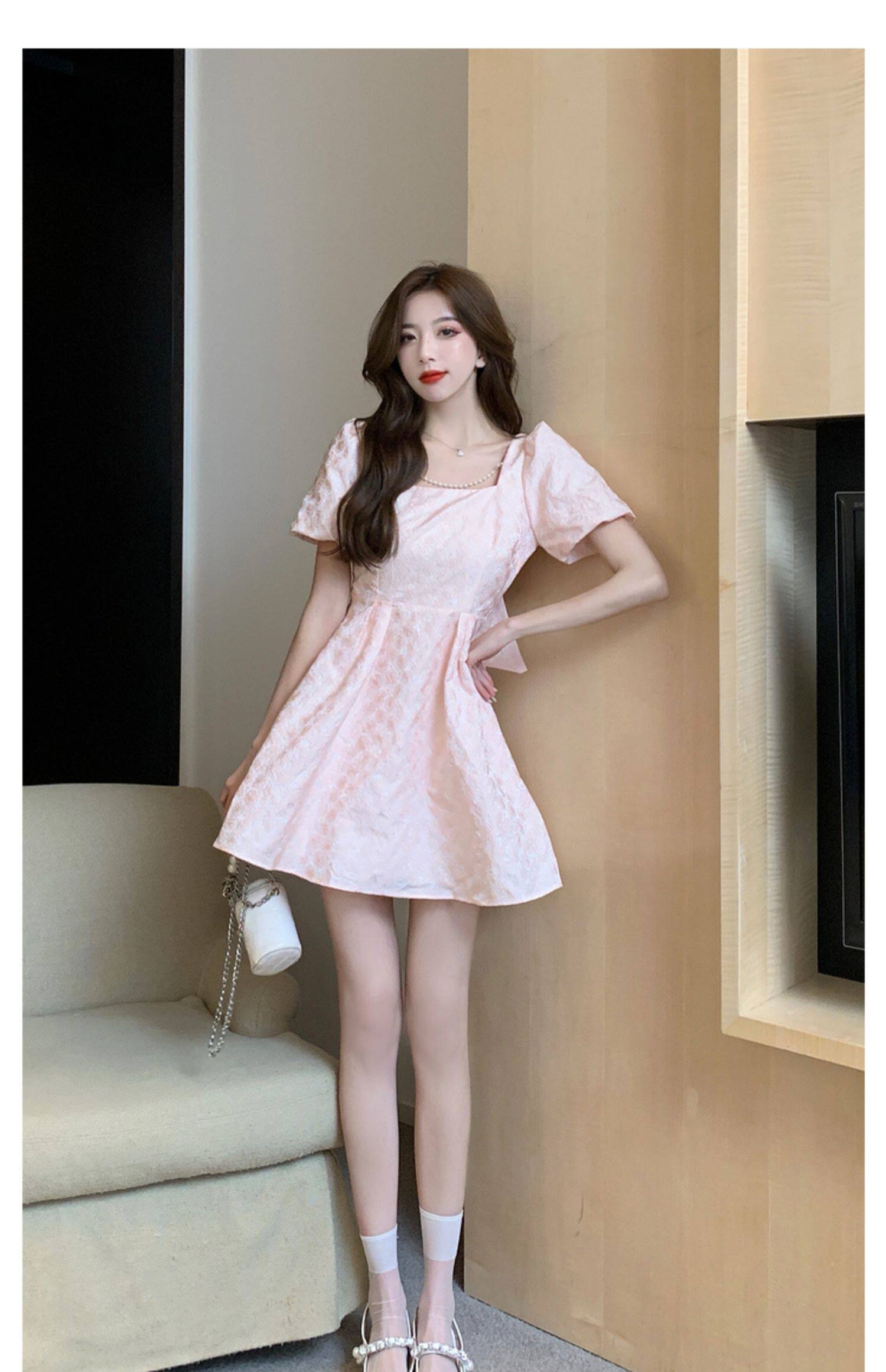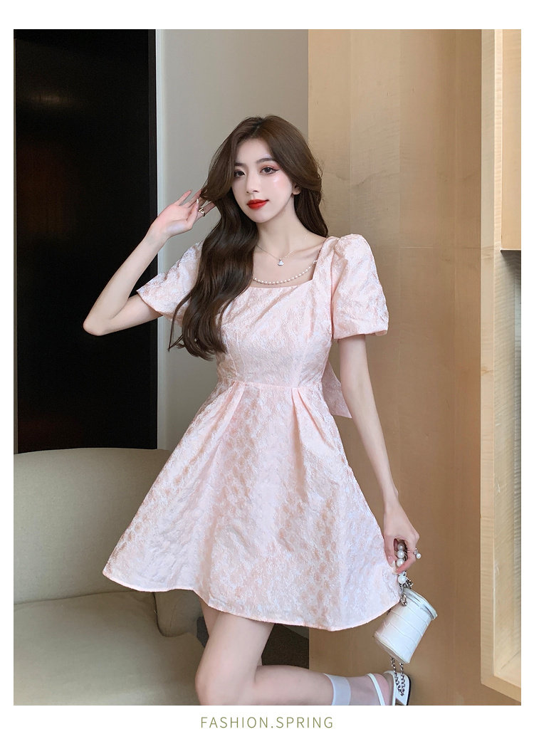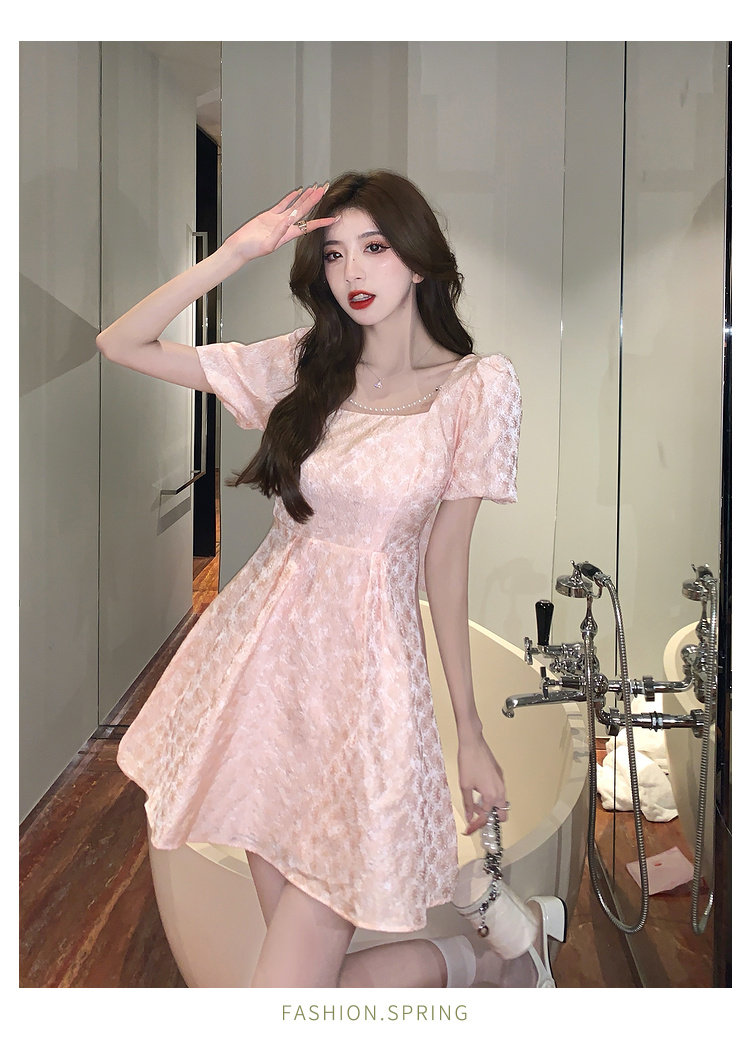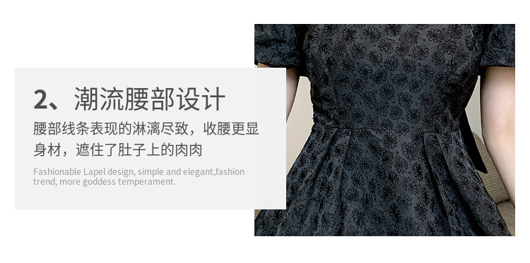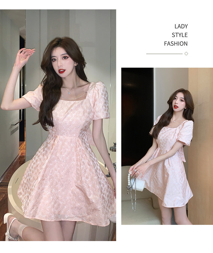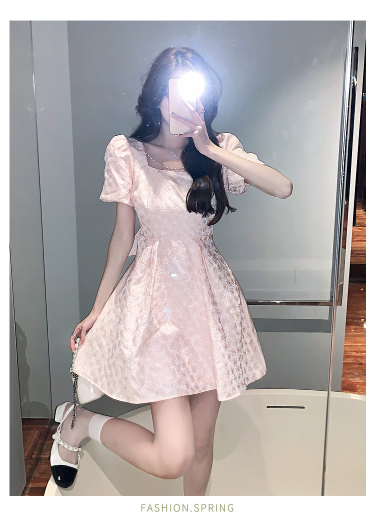 RM8860#夏季网红新款复古方领泡泡袖小黑裙设计感高腰显瘦