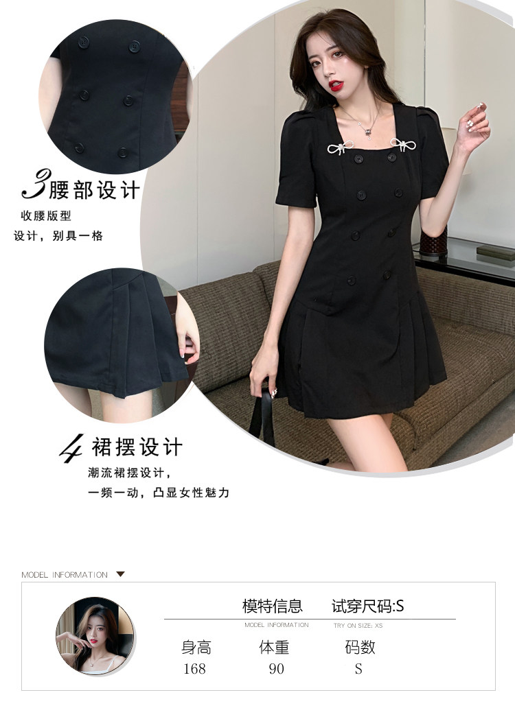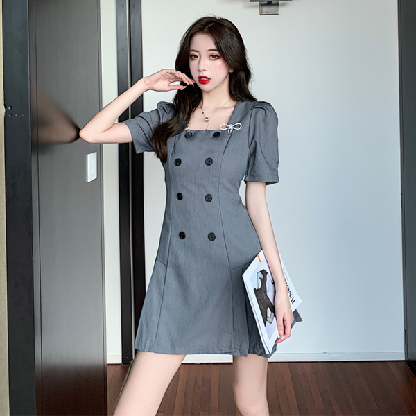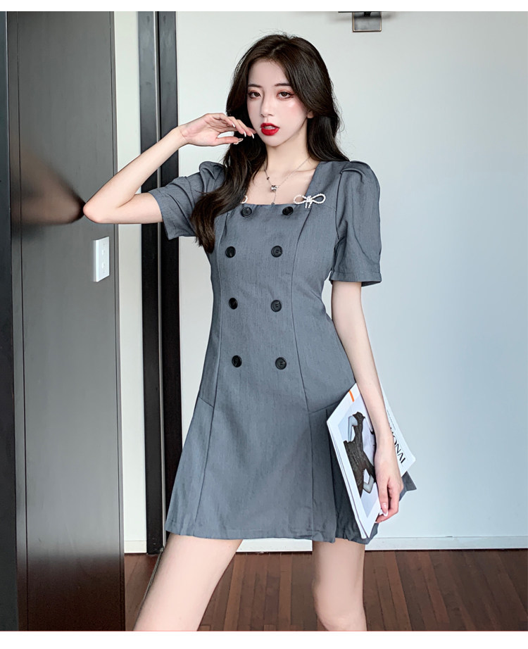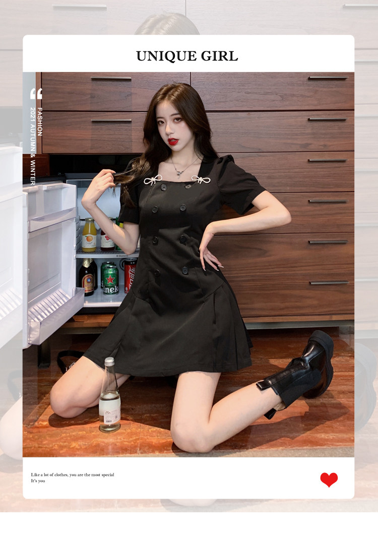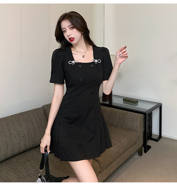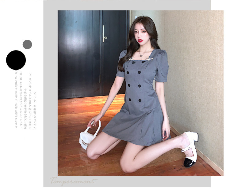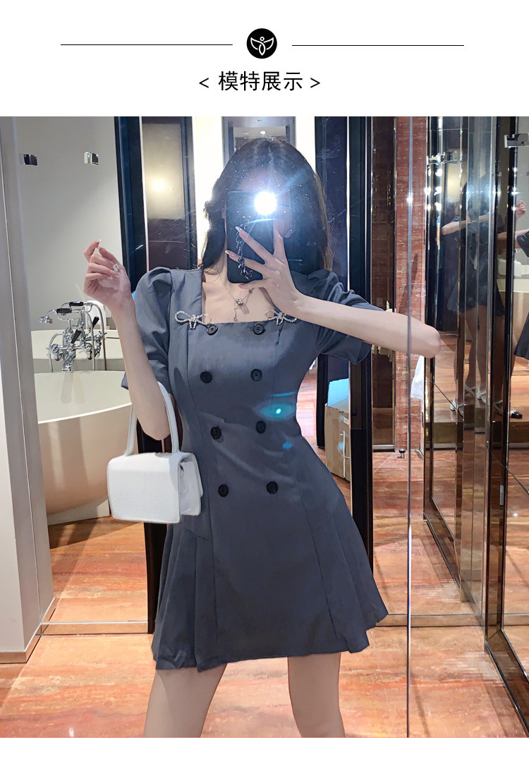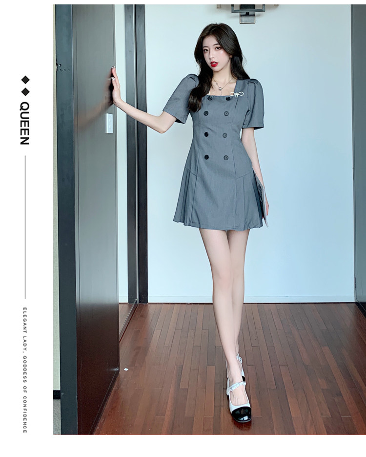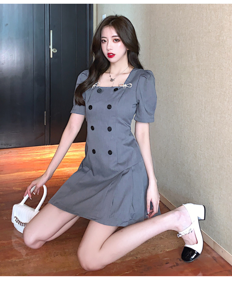 RM8865#港味网红炸街法式桔梗设计感双排扣修身显瘦气质连衣裙