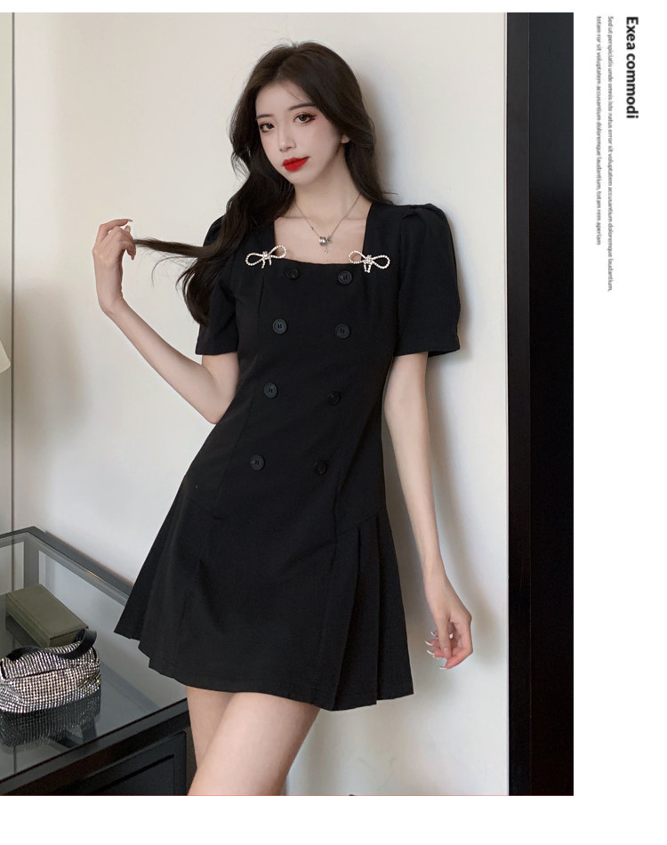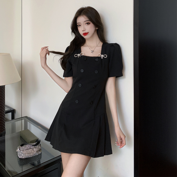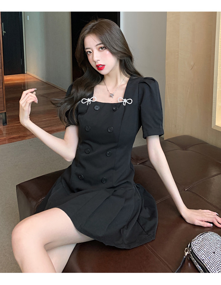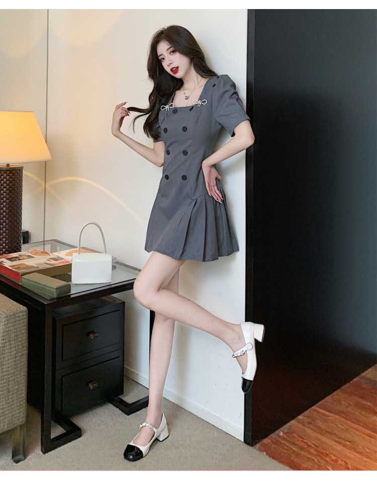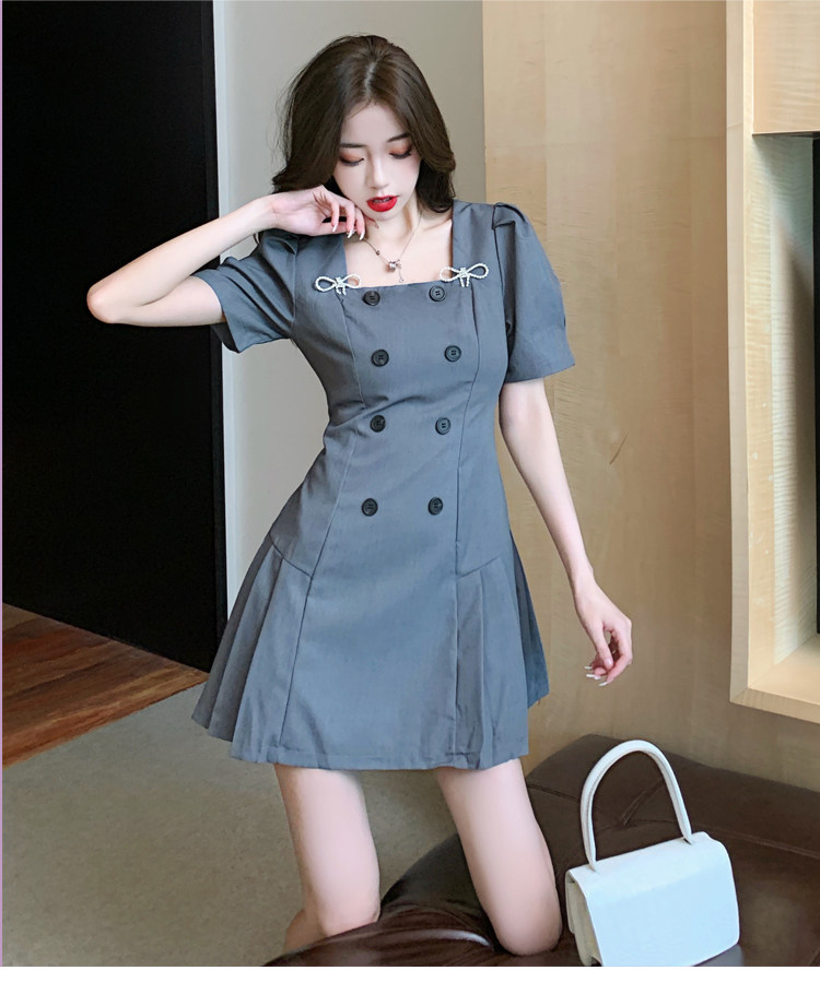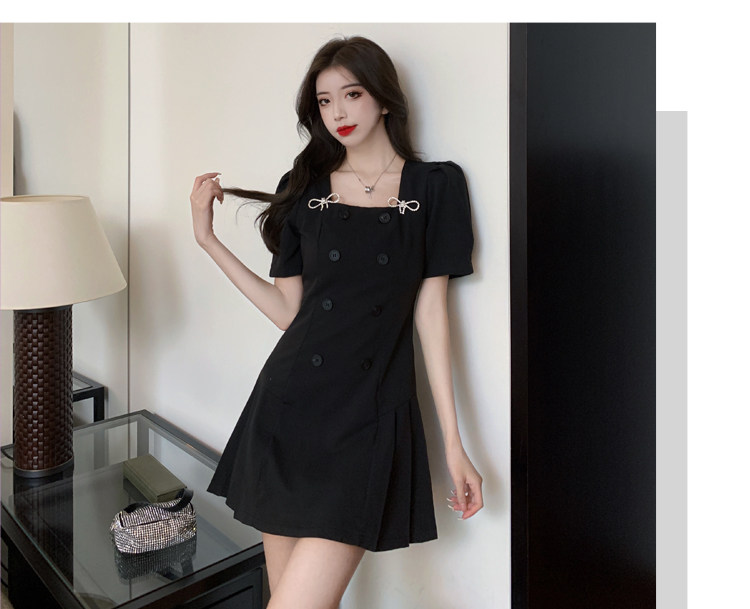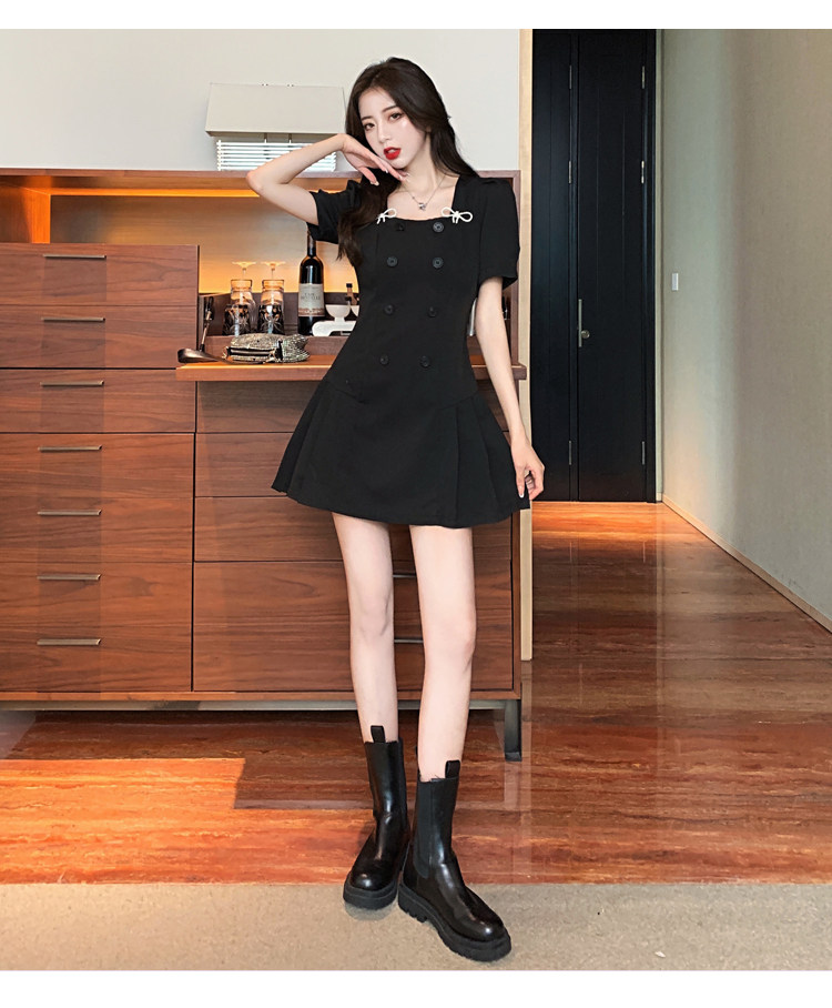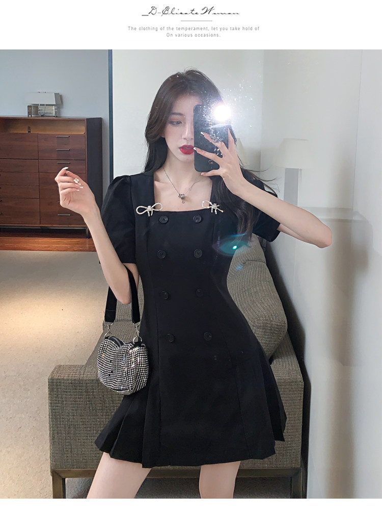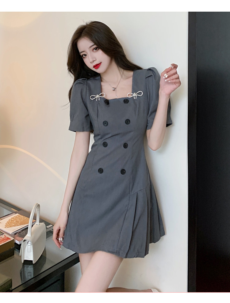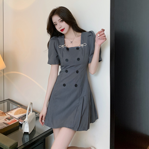RM8865#港味网红炸街法式桔梗设计感双排扣修身显瘦气质连衣裙