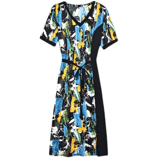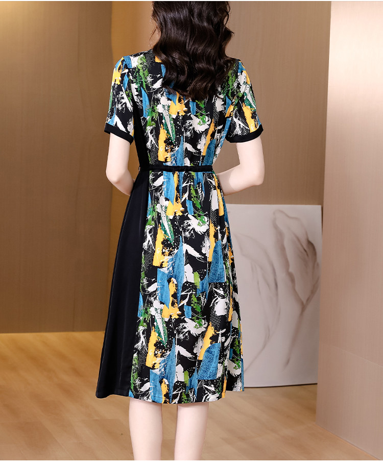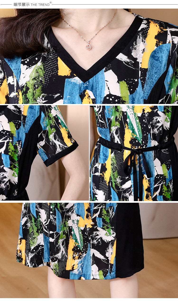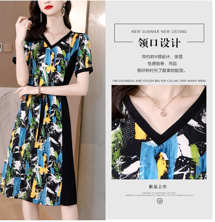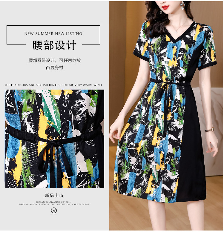 RM22468#显瘦气质夏季收腰裙子2023年新款时尚V领雪纺拼接收腰显瘦...