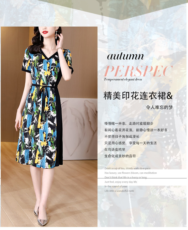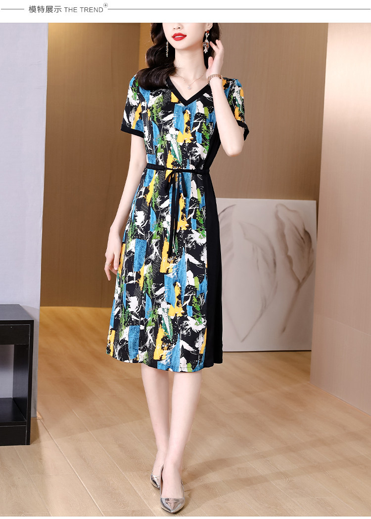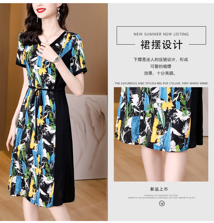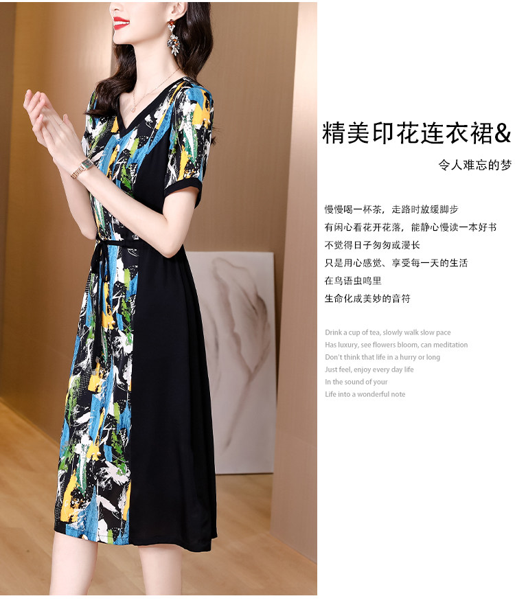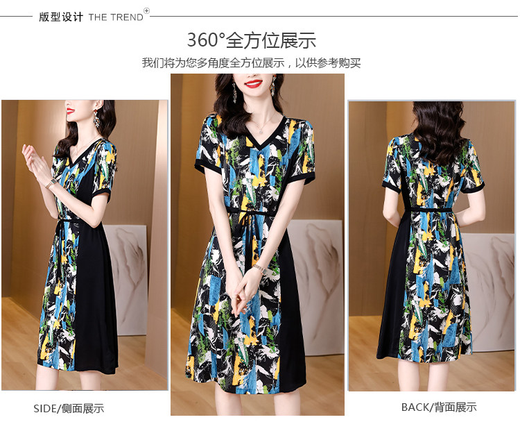 RM8916#高端桑蚕丝中长款连衣裙女2023夏新款拼接时尚洋气妈妈裙子